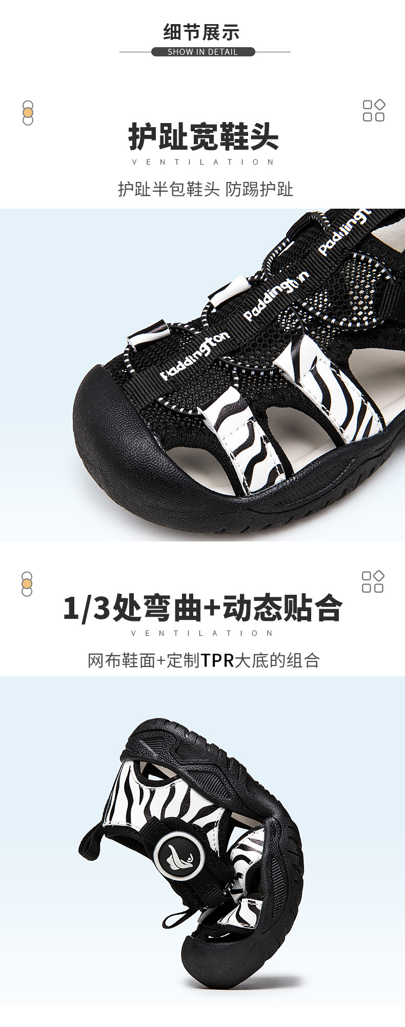 패딩턴 베어 어린이 샌들 여름 소년과 소녀 Baotou 할로우 통기성 미끄럼 방지 아기 신발 야외 해변 신발스토어 가기