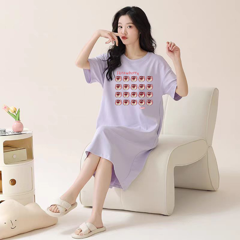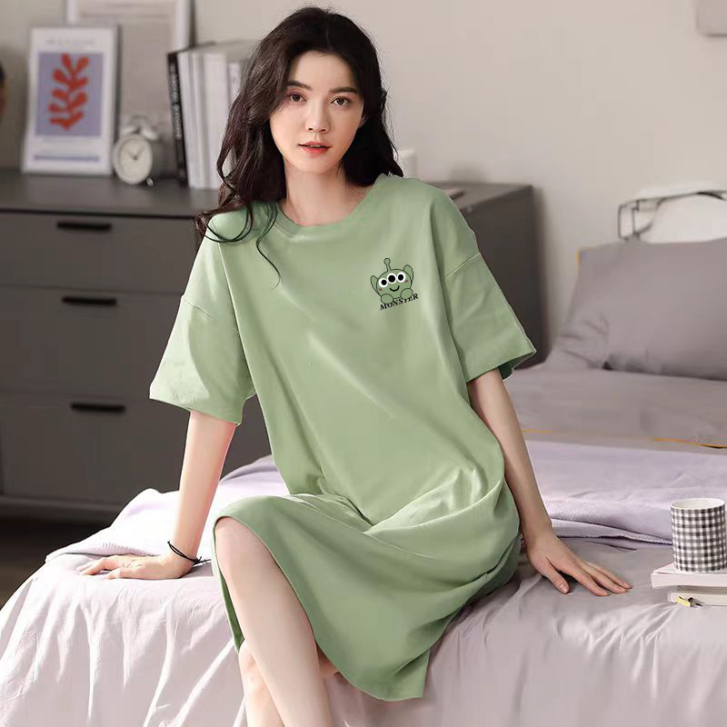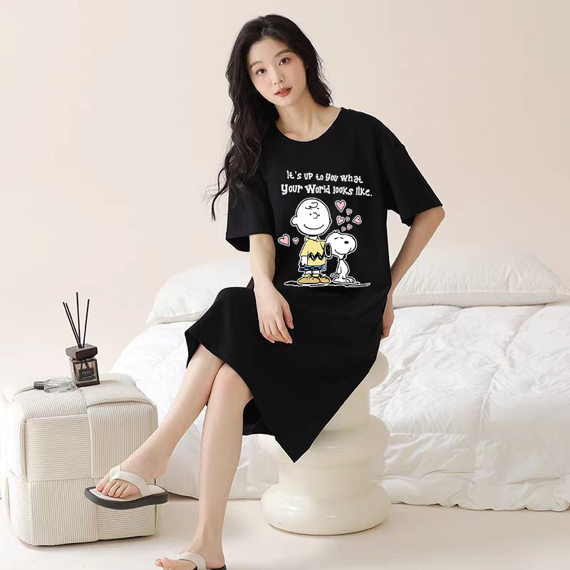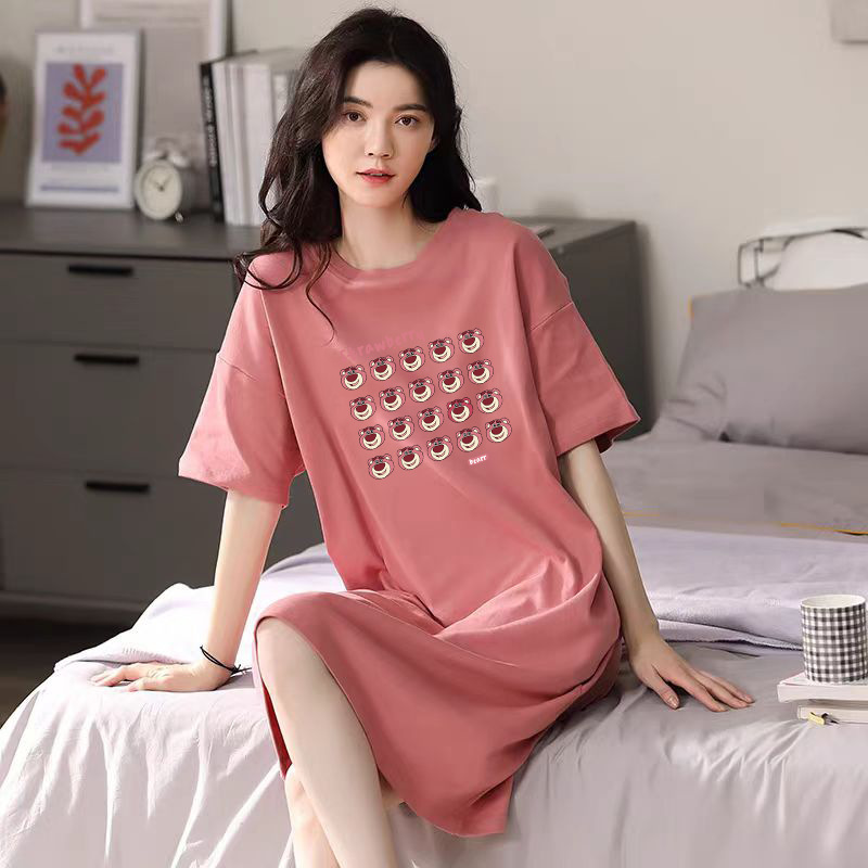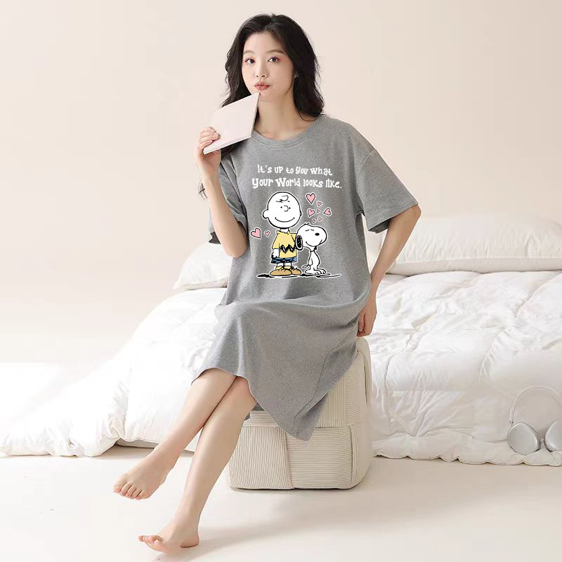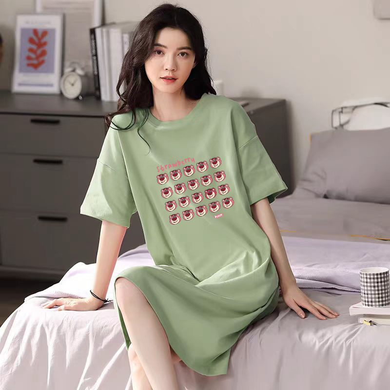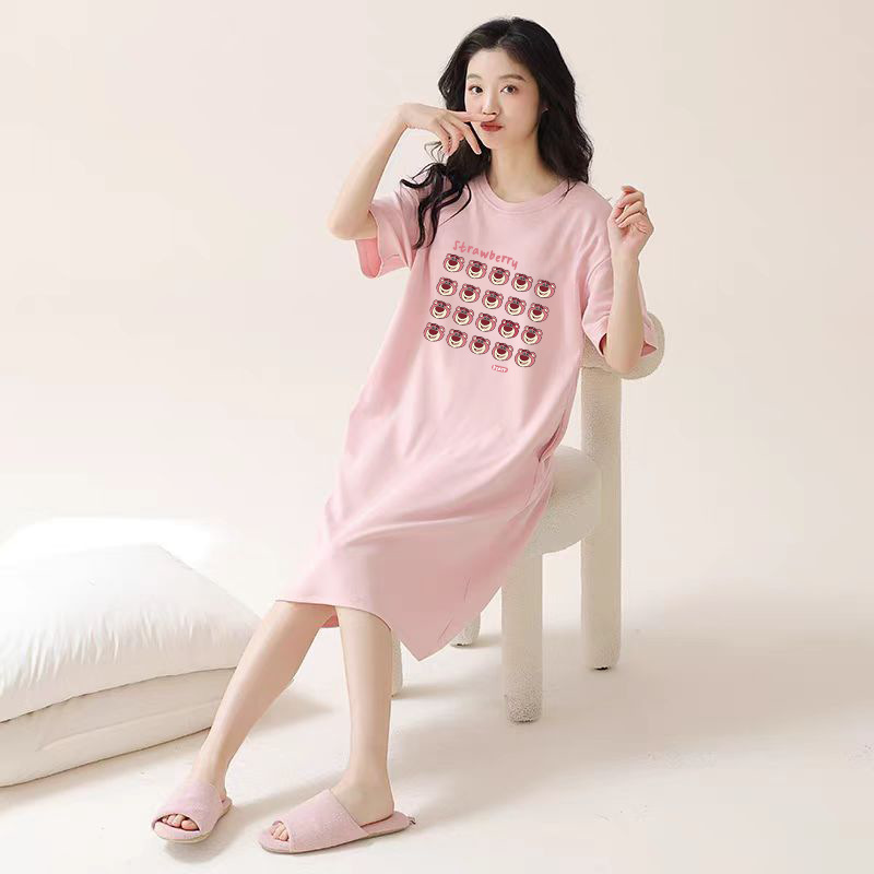 여성을위한 여름 잠옷 반팔 얇은 귀여운 봄, 여름 느슨한 만화 프린트 잠옷 홈웨어 대형 2025 새로운 스타일스토어 가기