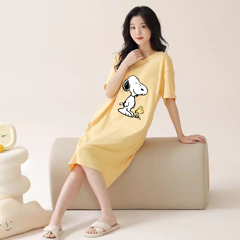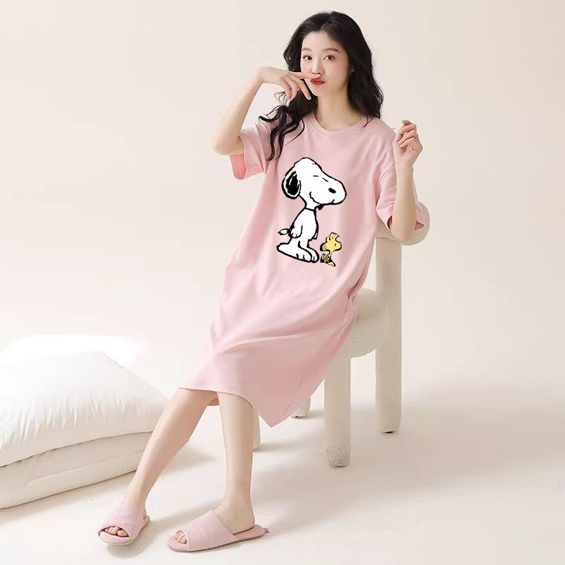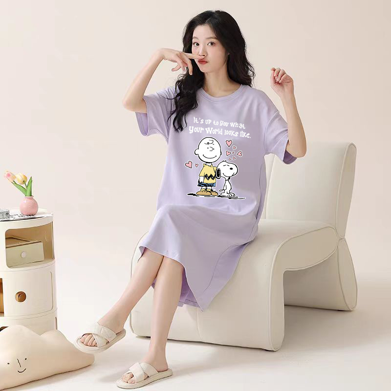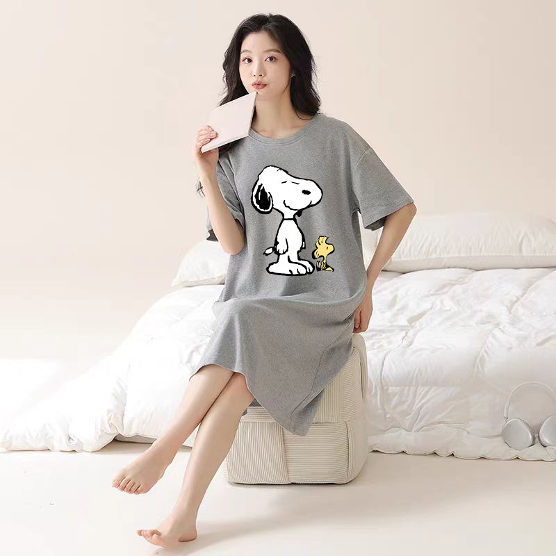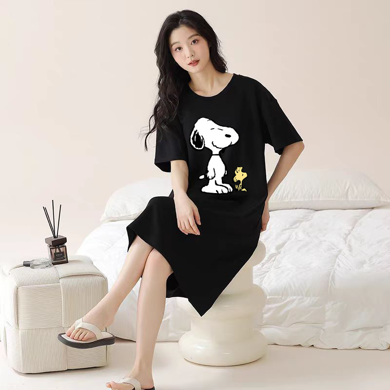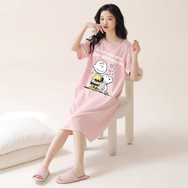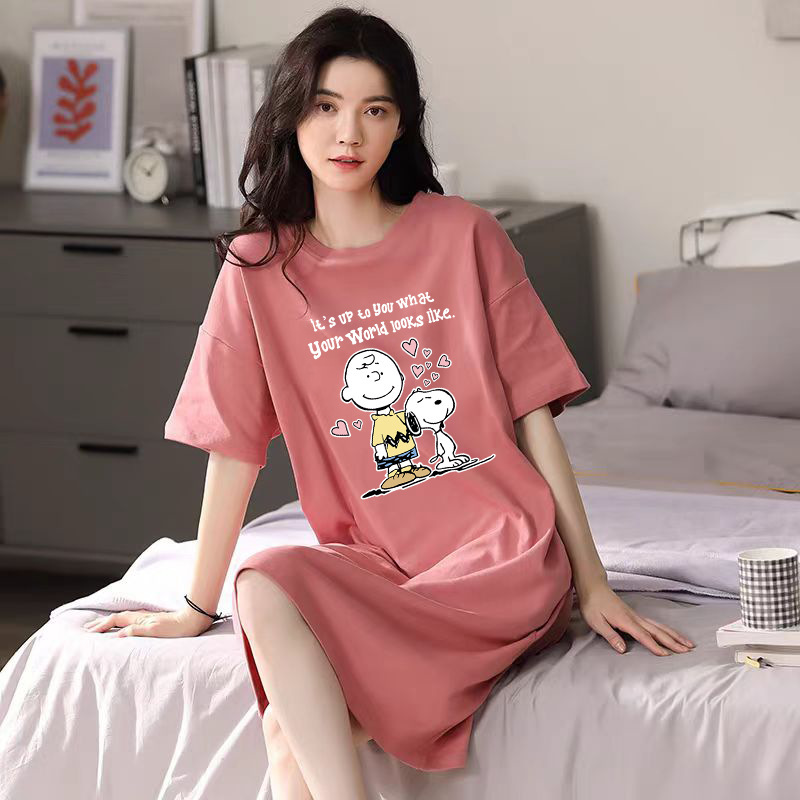 여성을위한 여름 잠옷 반팔 얇은 귀여운 봄, 여름 느슨한 만화 프린트 잠옷 홈웨어 대형 2025 새로운 스타일스토어 가기
