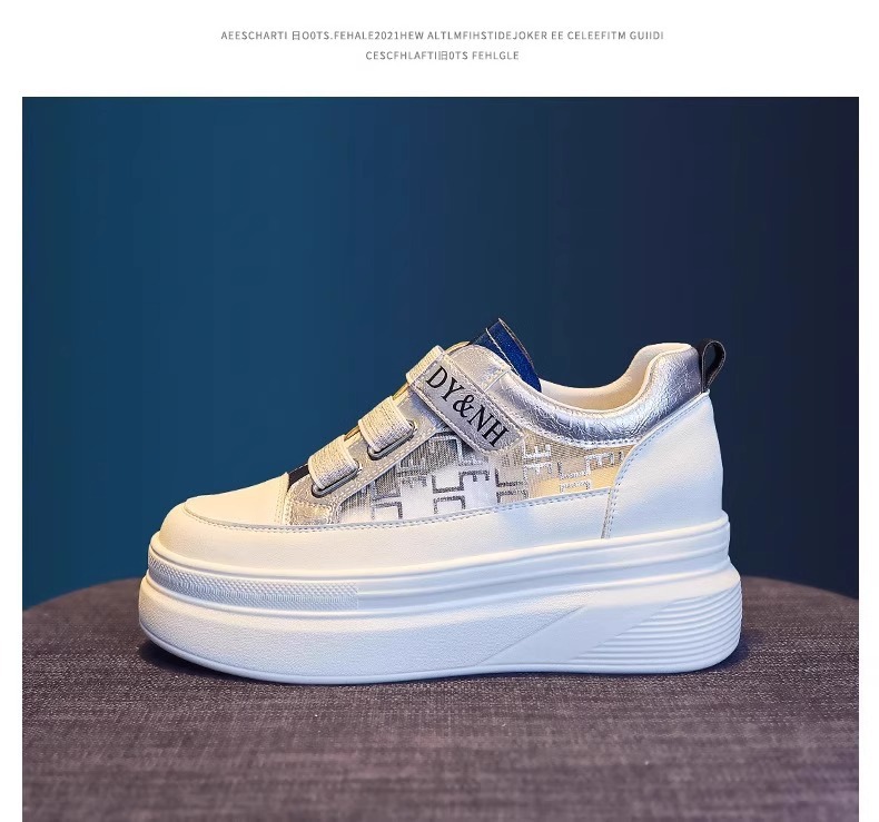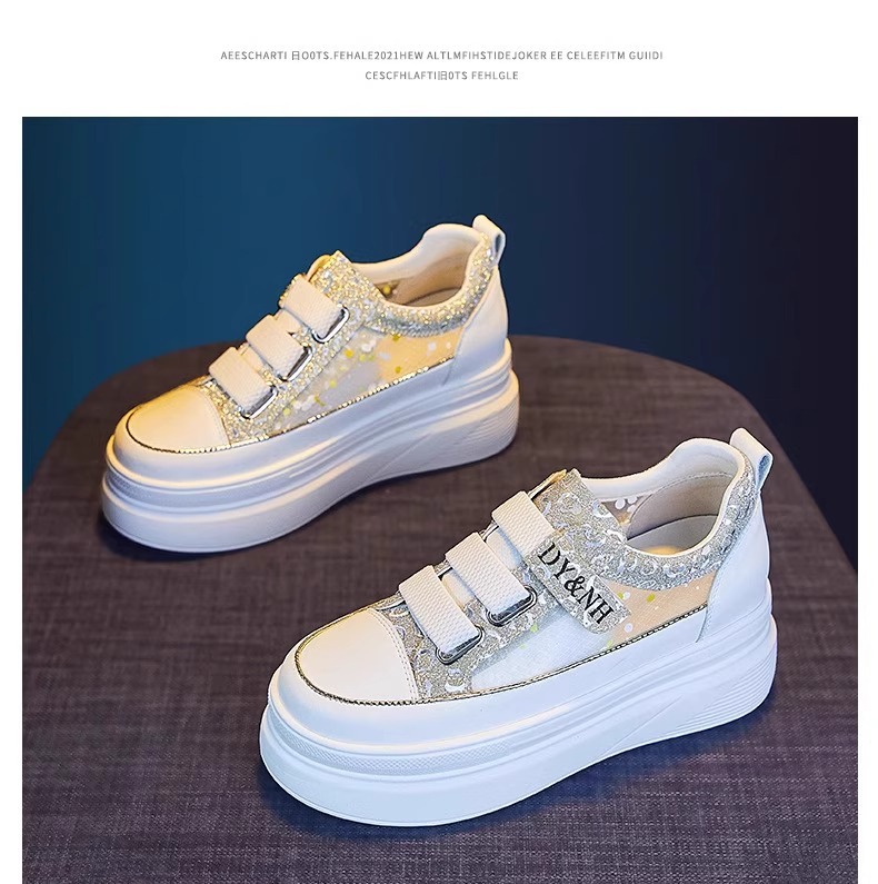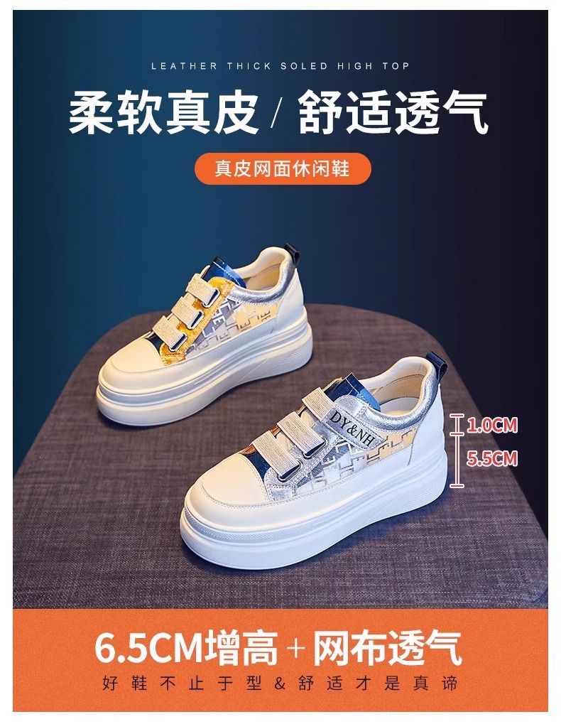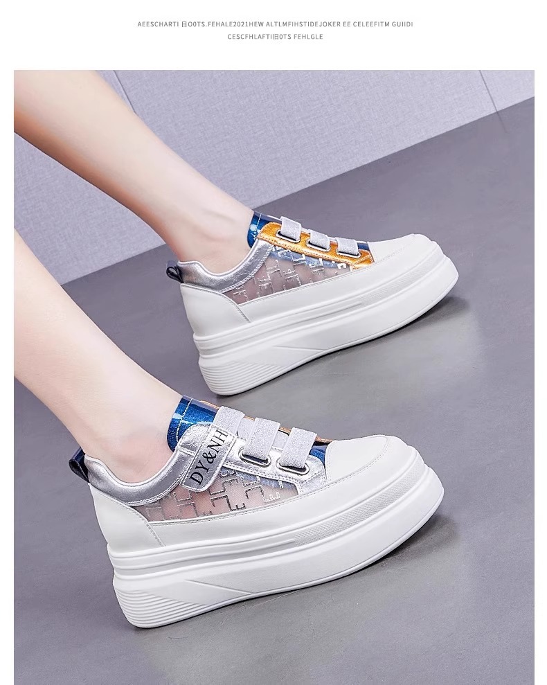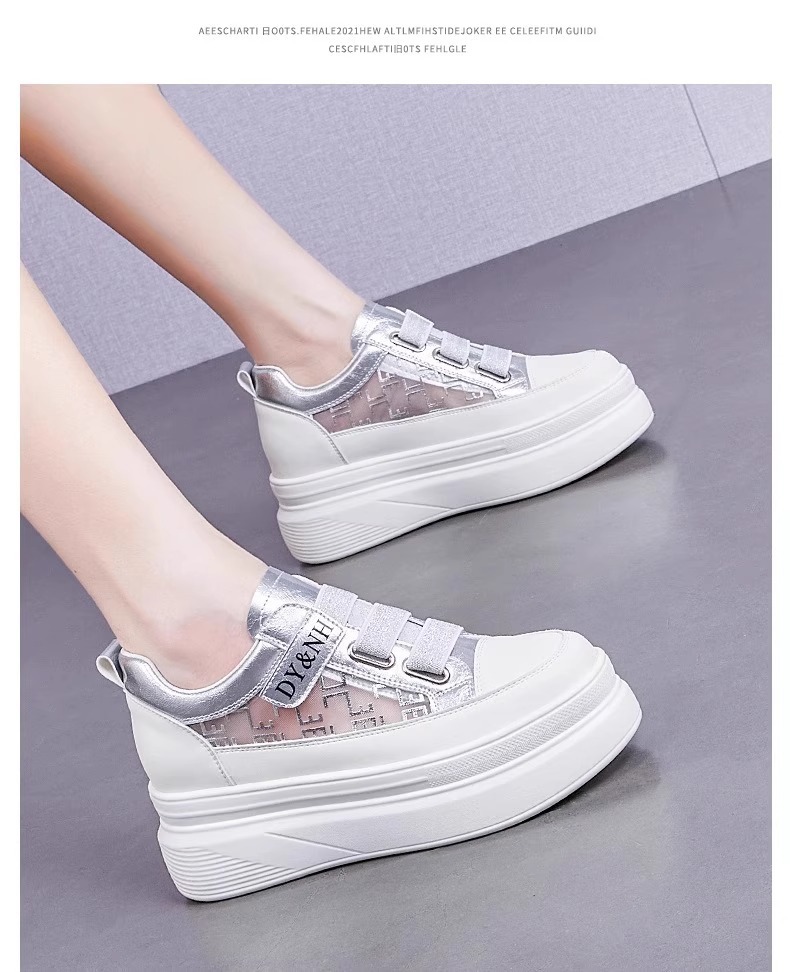 여성을위한 플랫폼 두꺼운 밑창 흰색 신발 2025 여름 새로운 스타일 벨크로 통기성 메쉬 다목적 캐주얼 내부 높이 증가 여성 신발스토어 가기