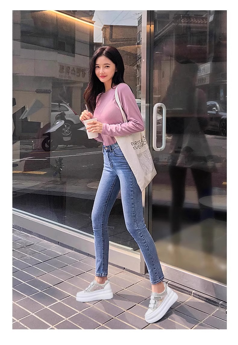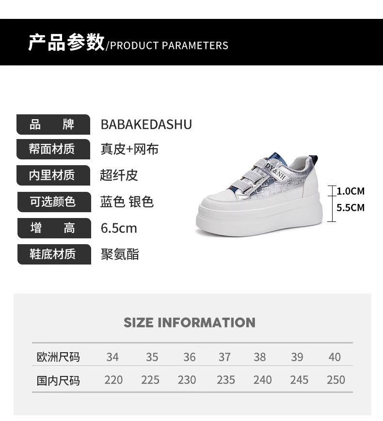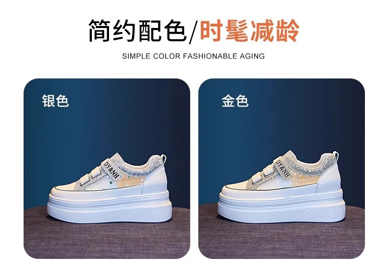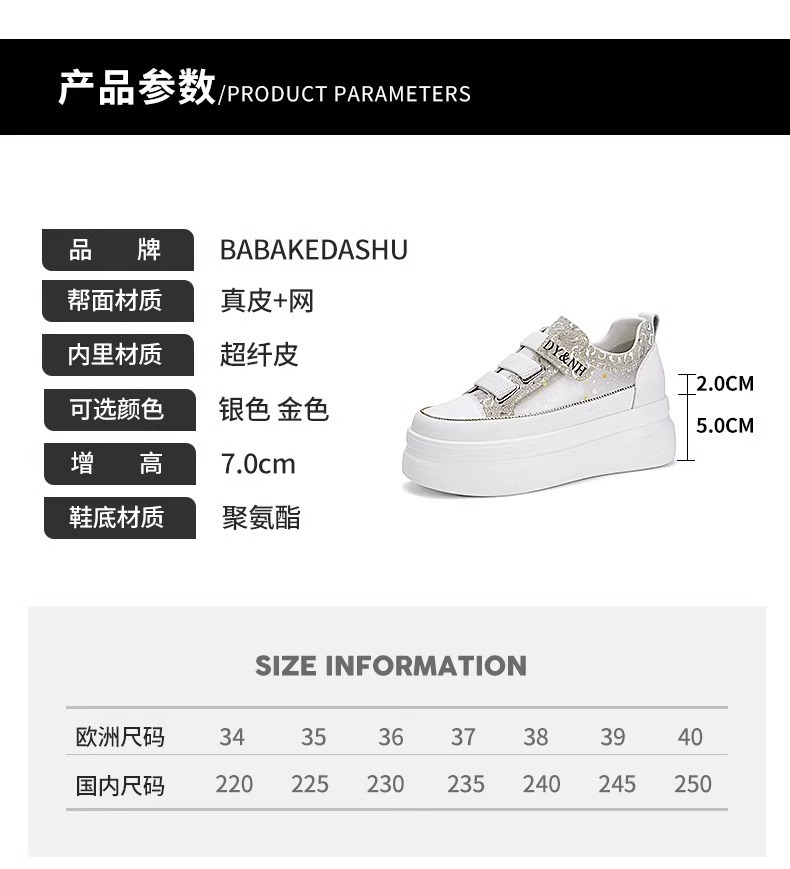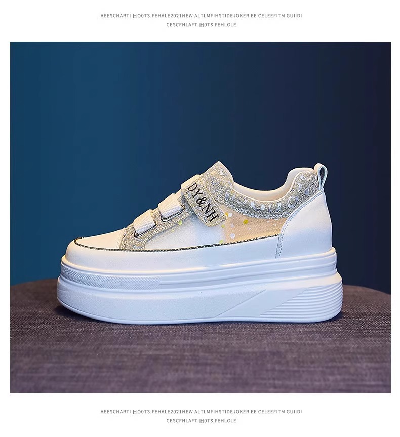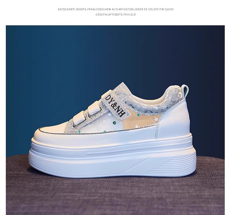 여성을위한 플랫폼 두꺼운 밑창 흰색 신발 2025 여름 새로운 스타일 벨크로 통기성 메쉬 다목적 캐주얼 내부 높이 증가 여성 신발스토어 가기