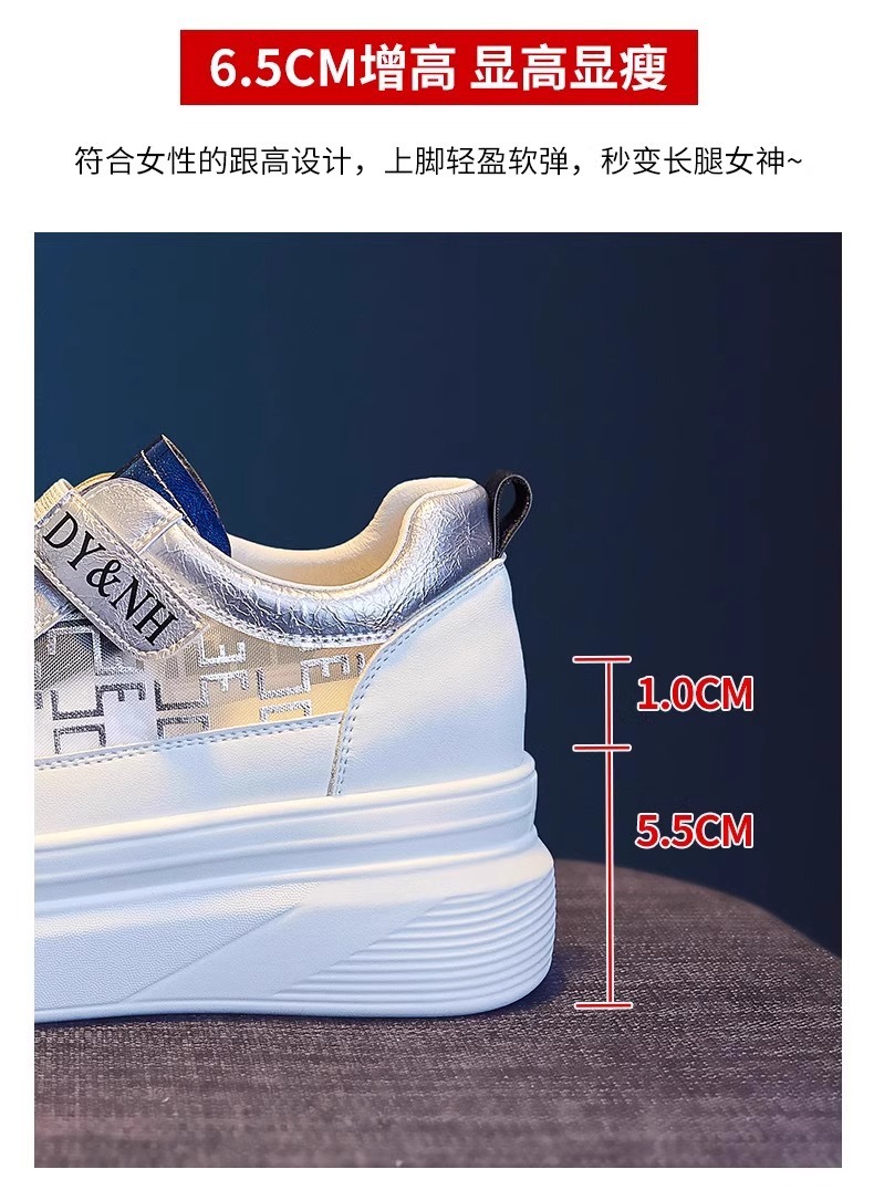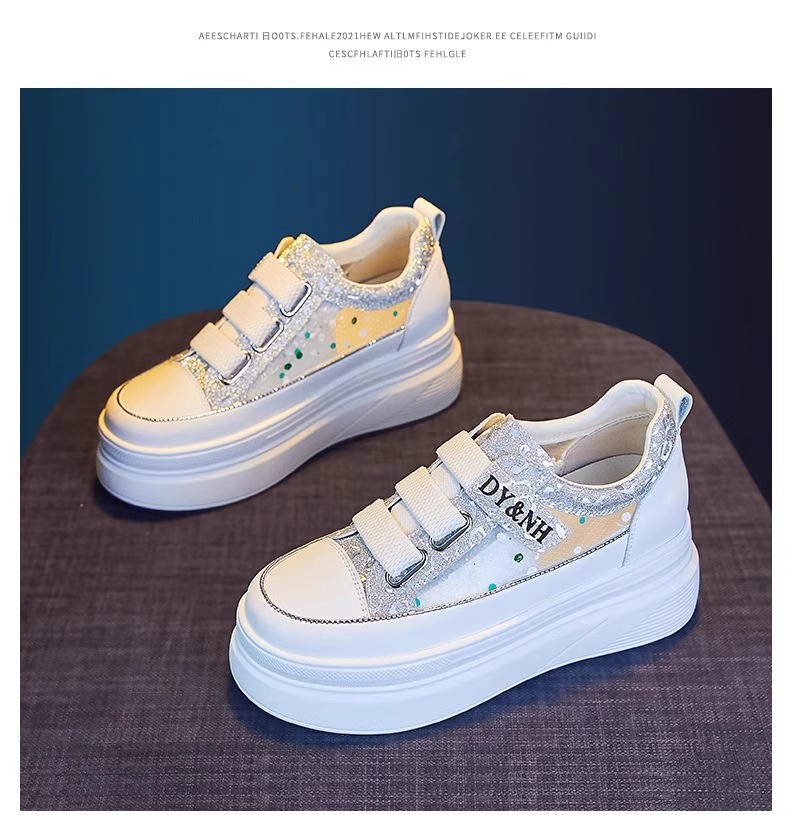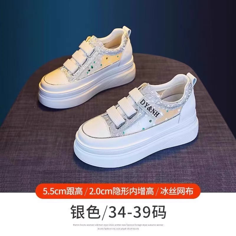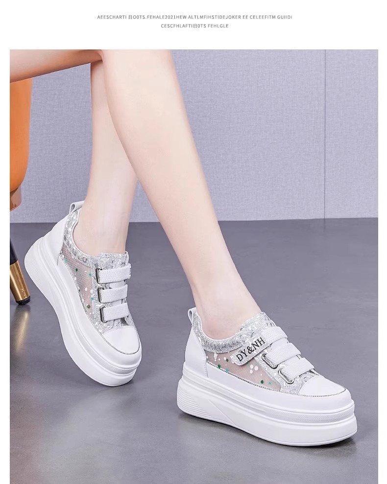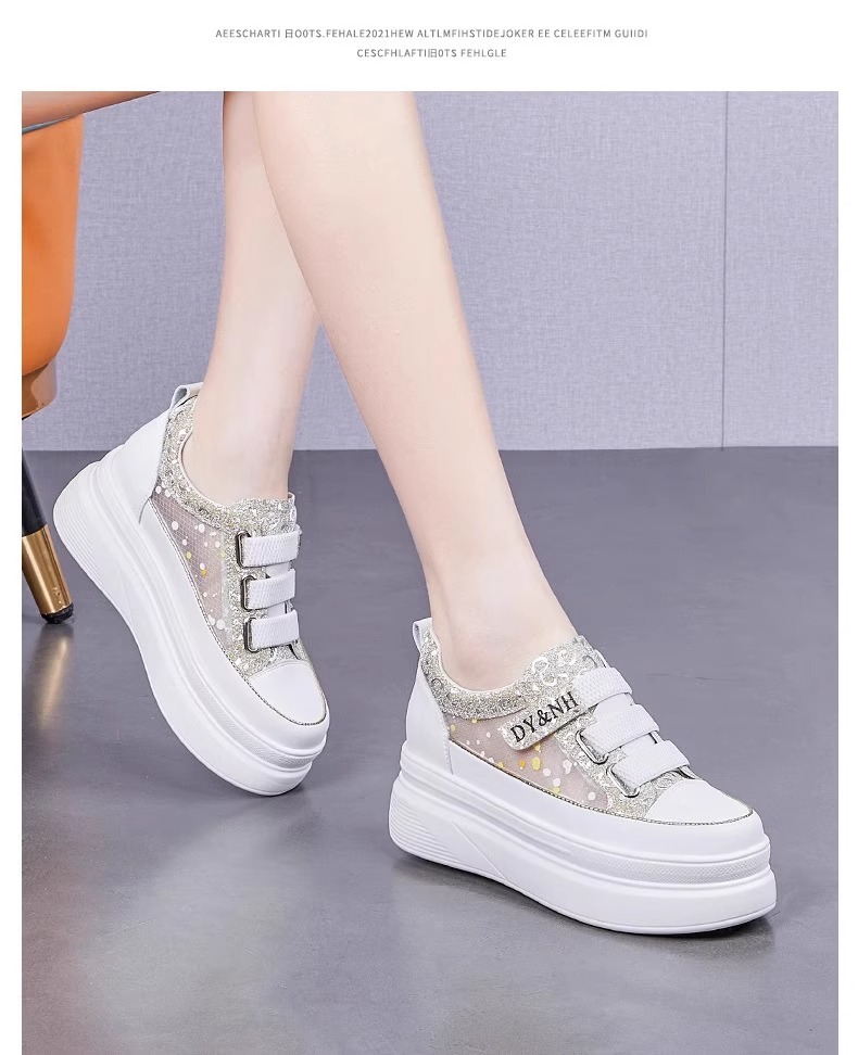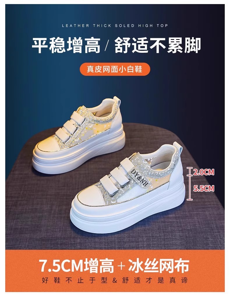 여성을위한 플랫폼 두꺼운 밑창 흰색 신발 2025 여름 새로운 스타일 벨크로 통기성 메쉬 다목적 캐주얼 내부 높이 증가 여성 신발