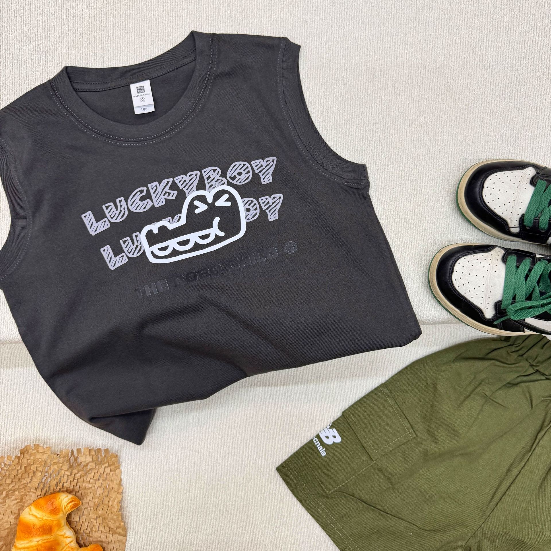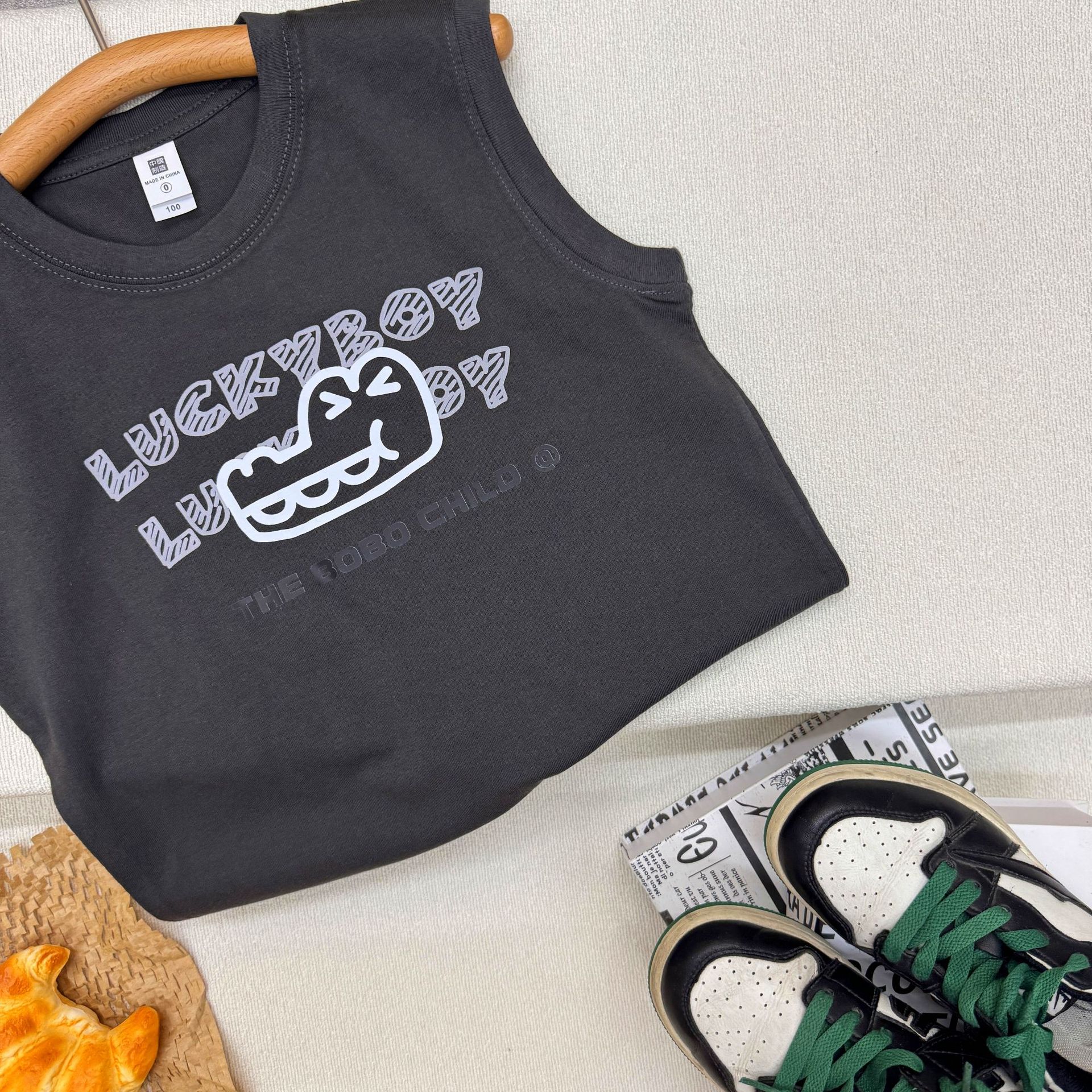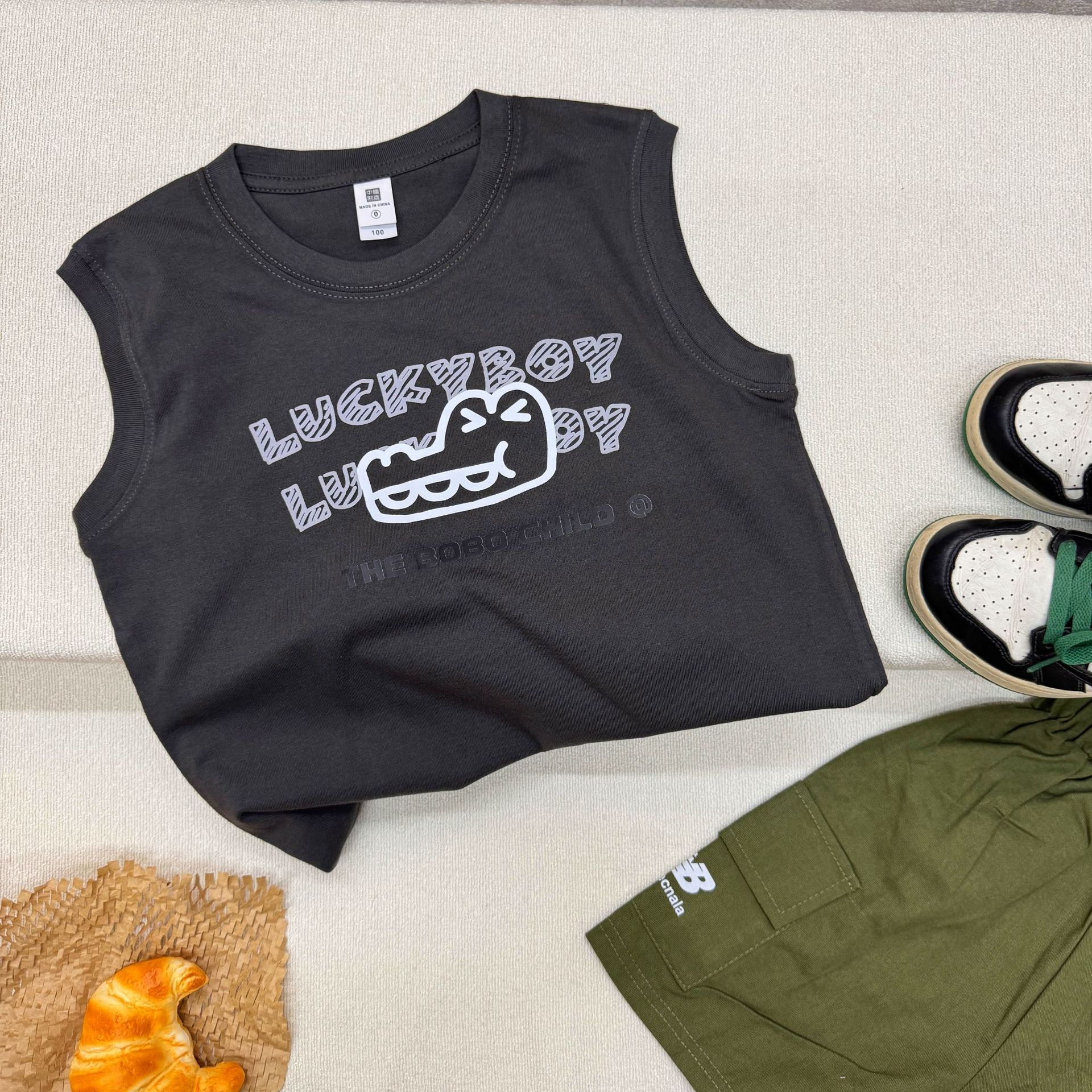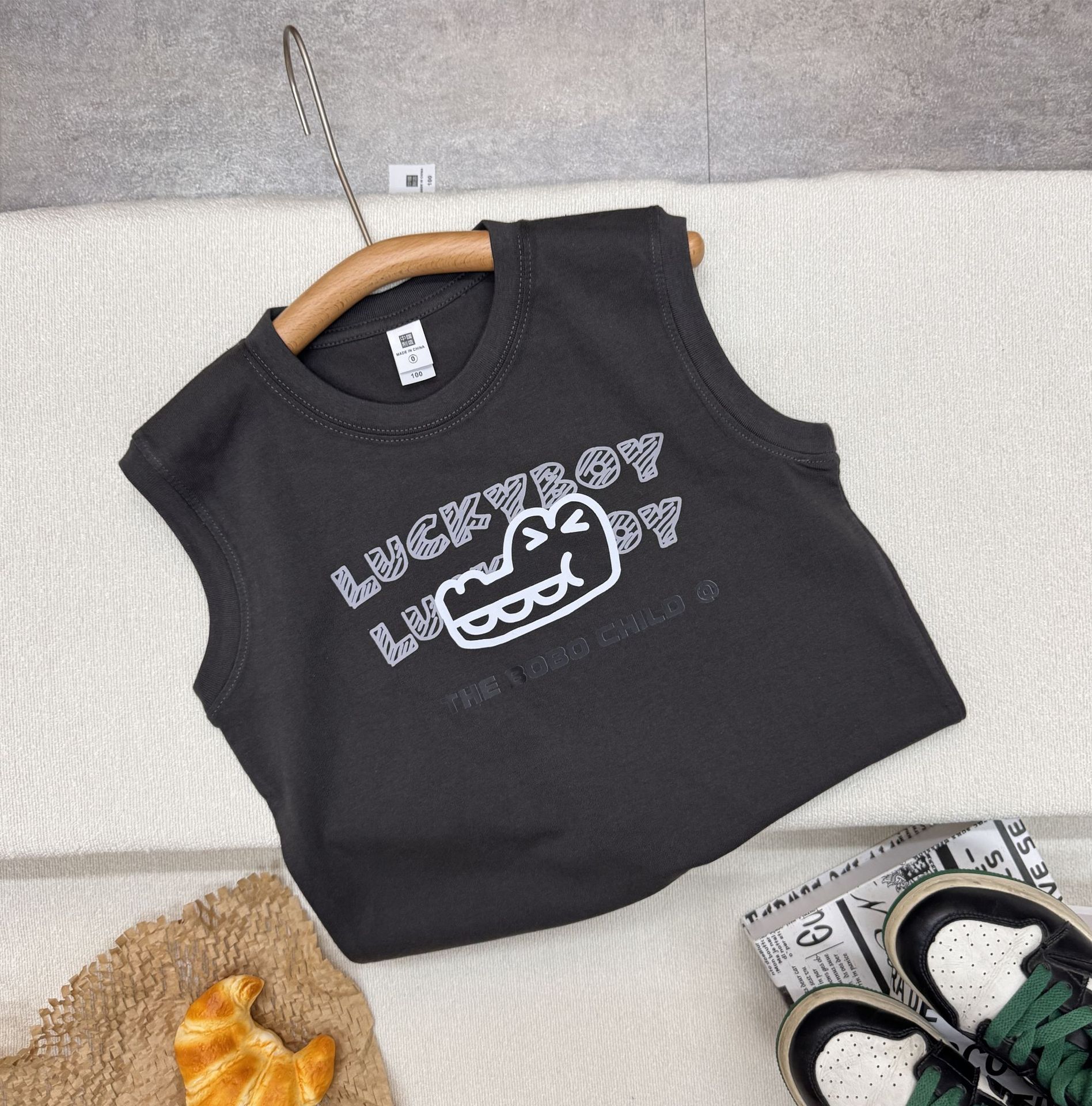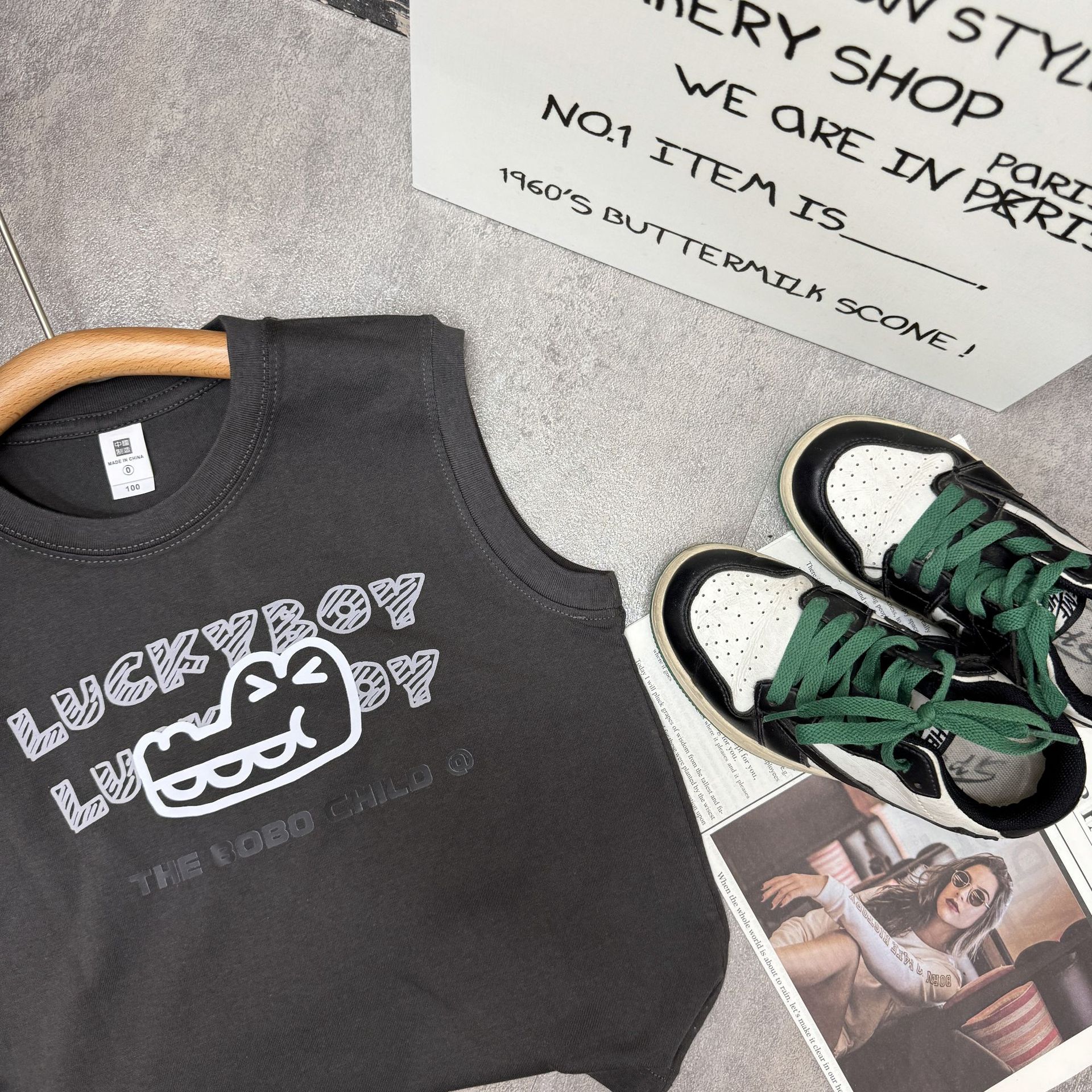 어린이 조끼 여름 신제품 소년 악어 느슨한 민소매 부모-자식 스포츠 조끼 소년 순수 코튼 민소매 탑