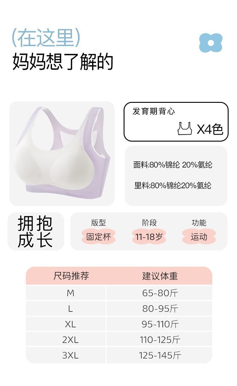 발달기 중학생을 위한 인기 속옷, 심리스 아이스 실크 브라, 고등학생 여학생 스포츠 조끼, 여름 얇은스토어 가기