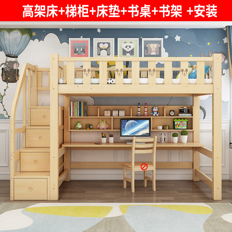책상이 있는 소스형 이층침대, 원목 다기능 조합침대, 어린이용 이층침대, 이층침대, 사다리, 수납장, 이층침대