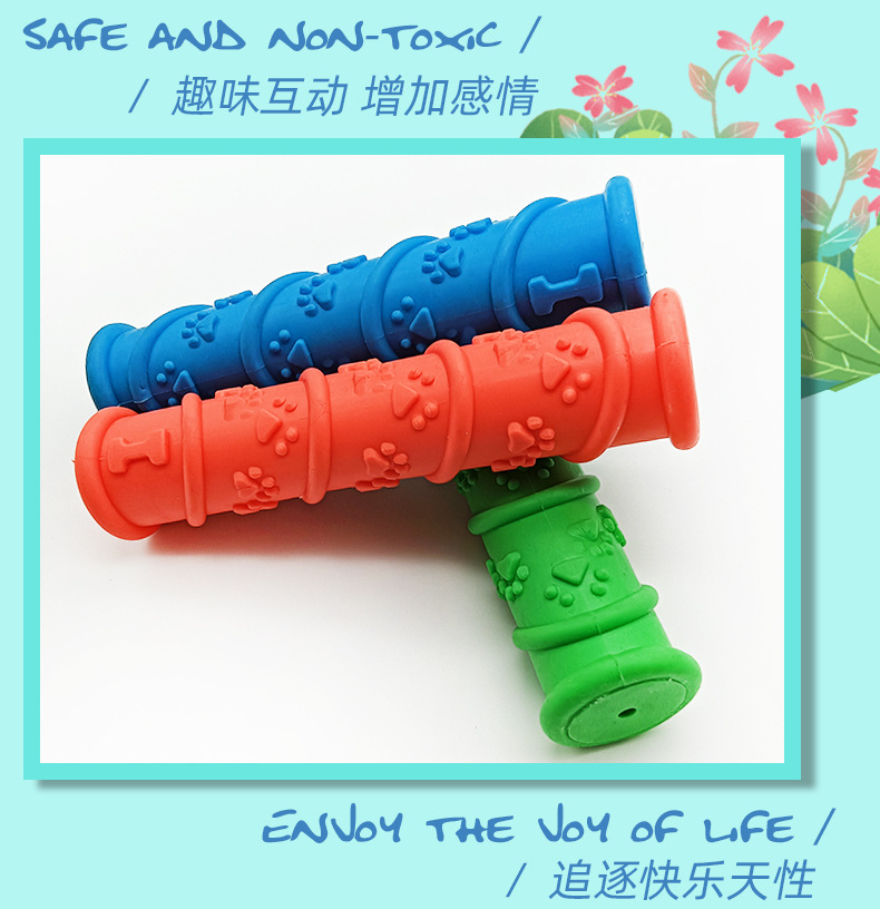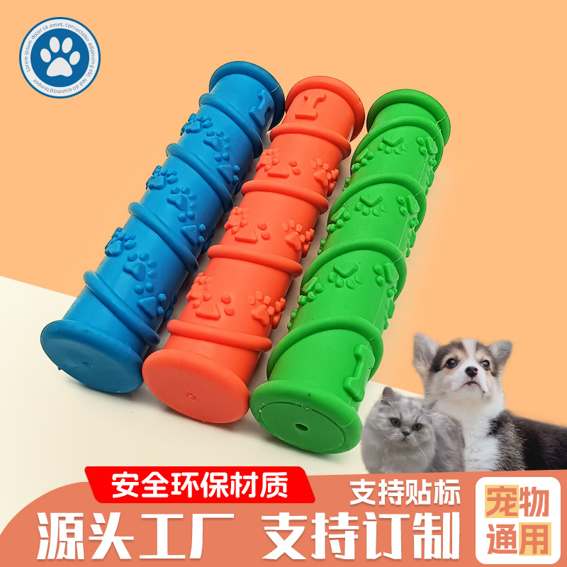 애완견의 긴 오목하고 볼록한 발자국이 있는 어금니 스틱은 소리를 내고 집에서 놀 수 있는 강아지 대화형 안전 장난감입니다.