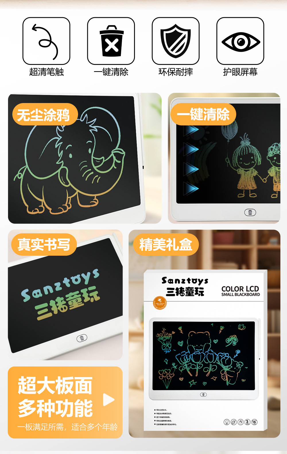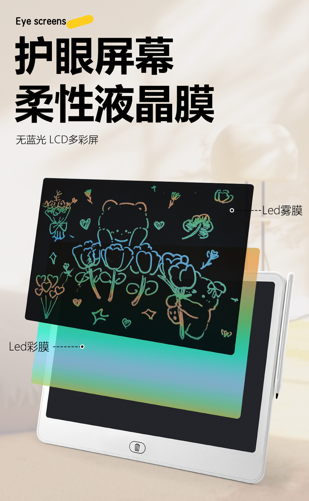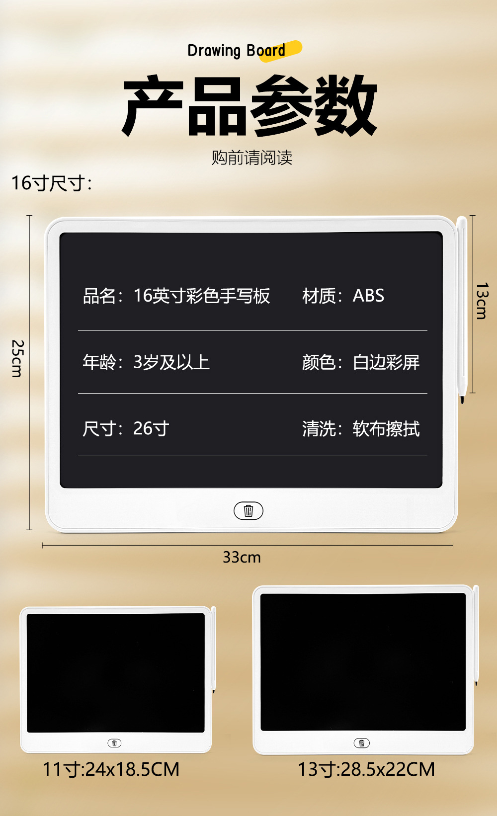 11/13/ 16inch LCD 쓰기 태블릿 어린이 낙서 보드 드로잉 패드 칠판 초대형 스크린 LED 눈 보호 블루 라이트 없음