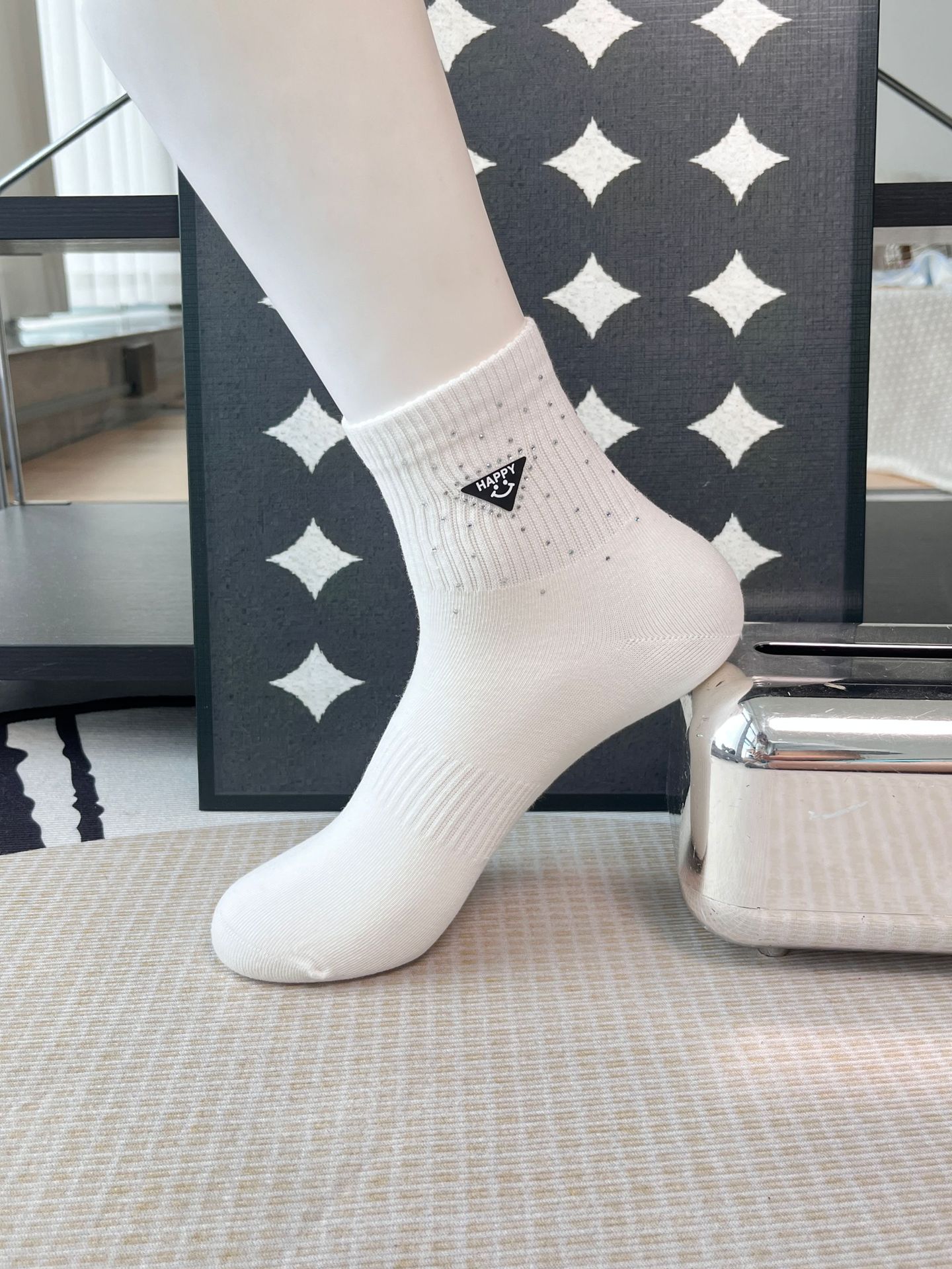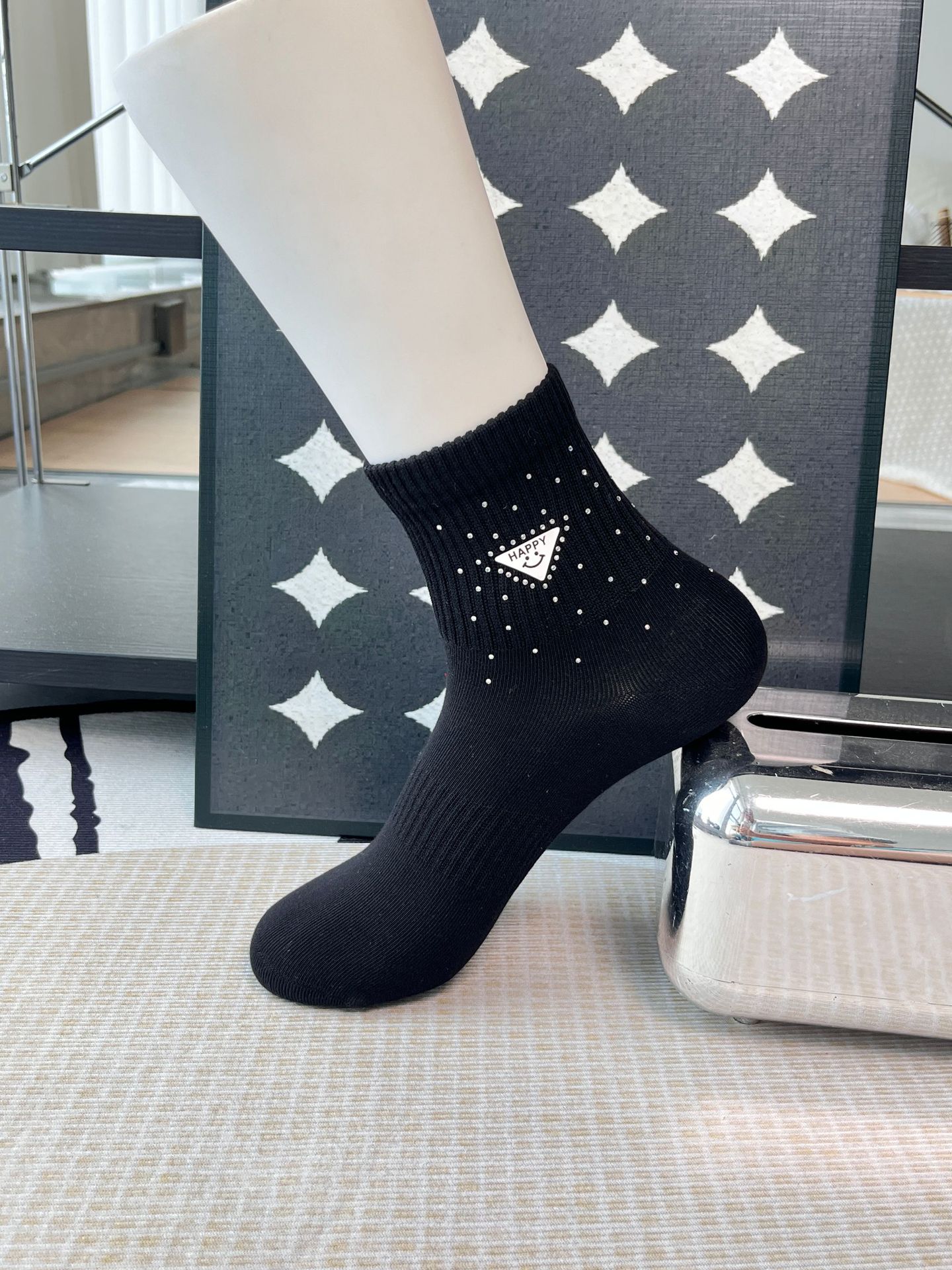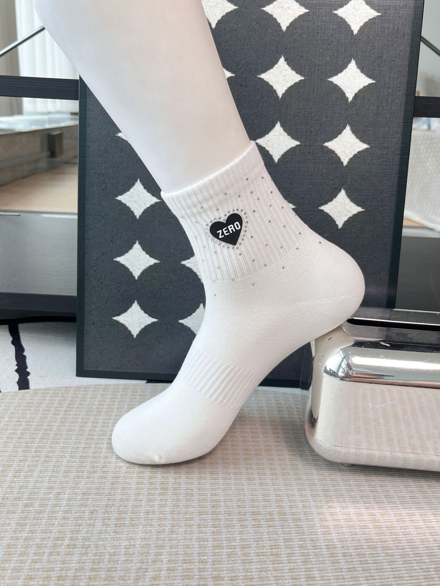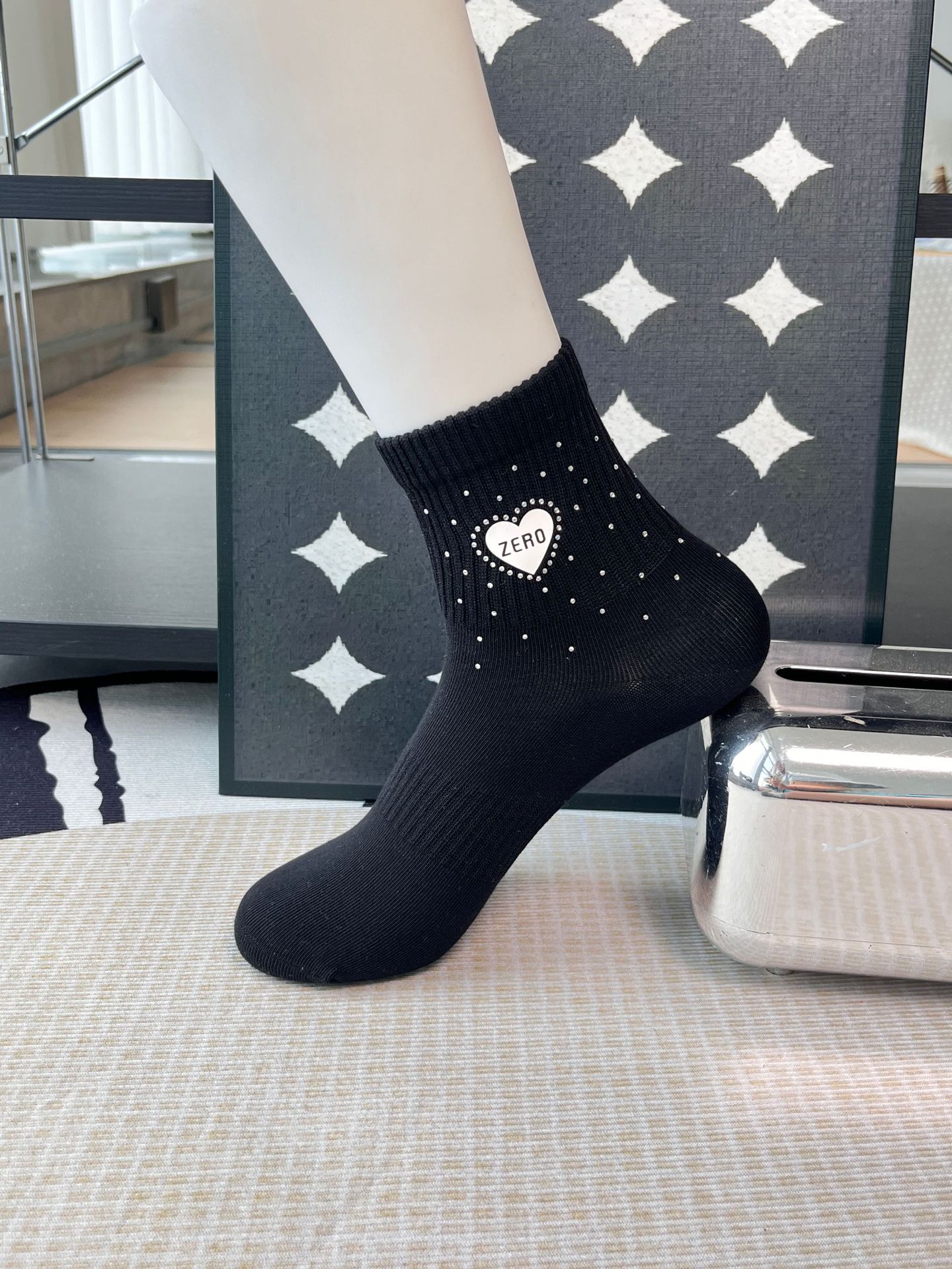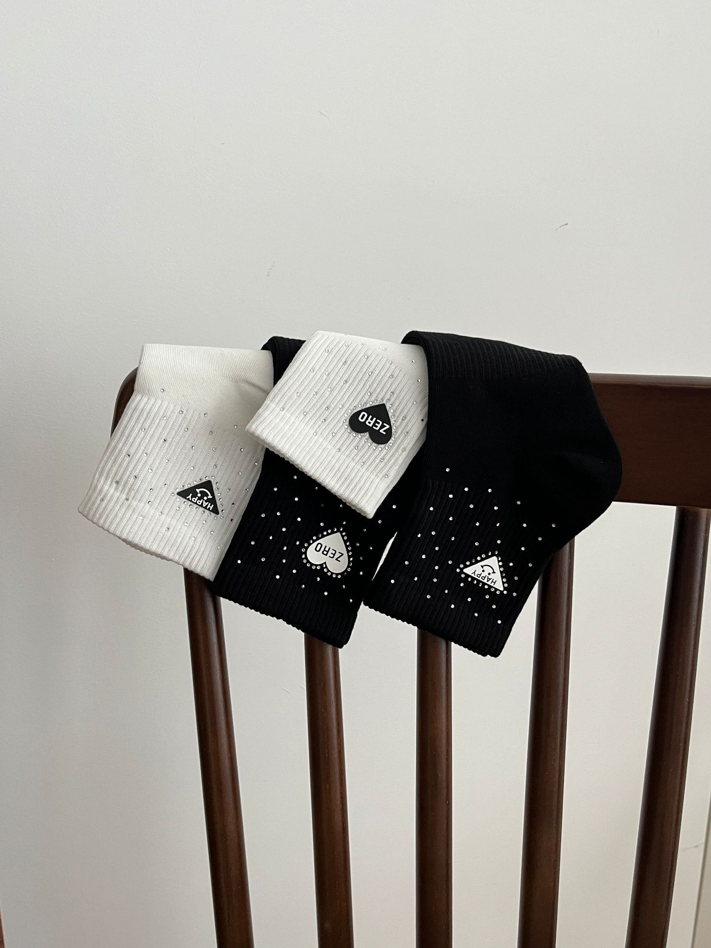 여성용 양말 2025 봄/여름 반짝이는 다이아몬드 장식 양말 인스타 트렌드 다용도 블랙/화이트 면 소재 숲풍 중목 양말 인스타 스타일