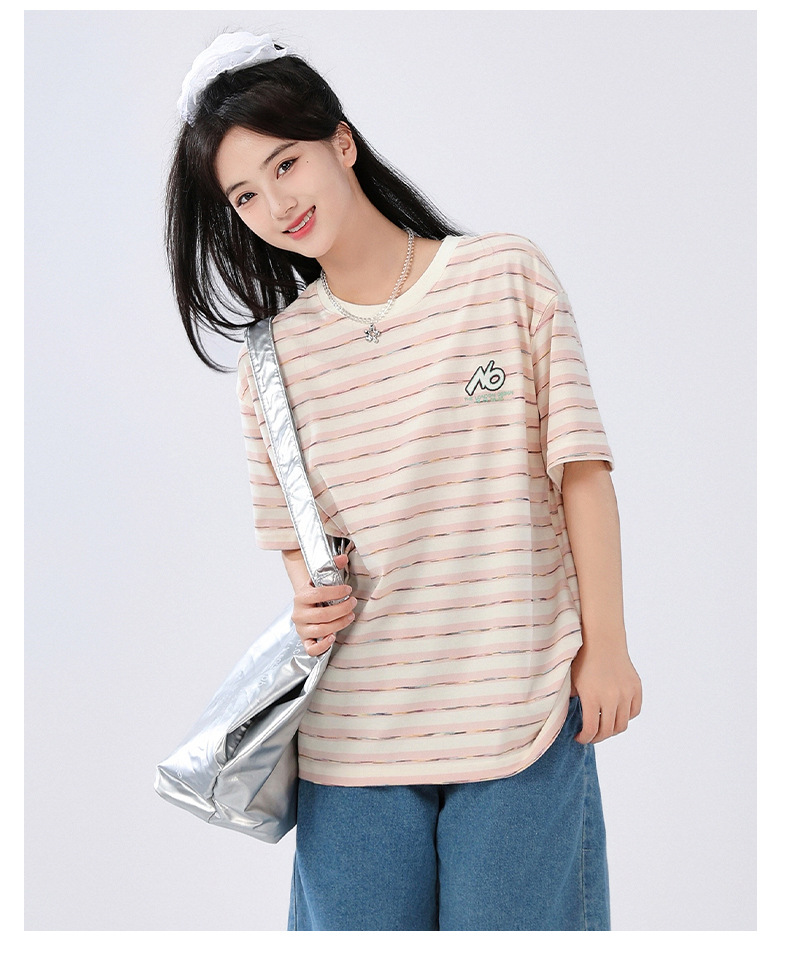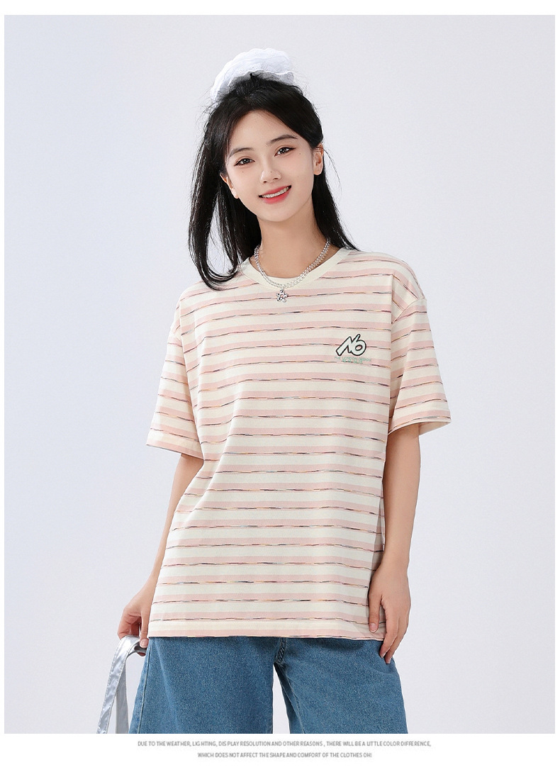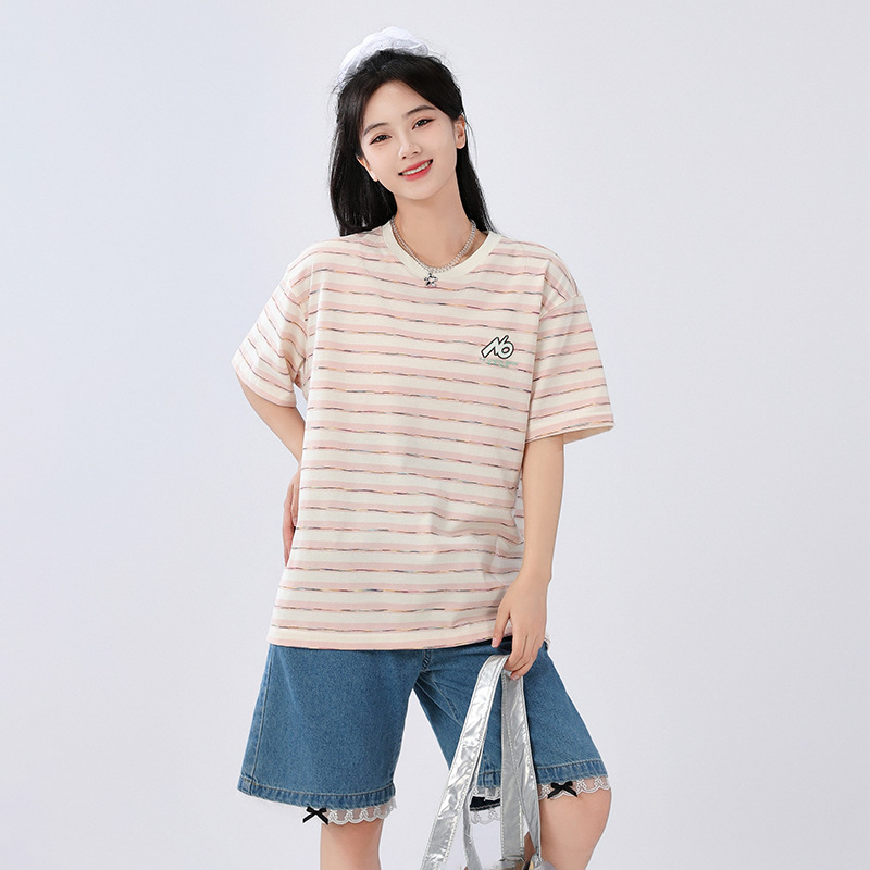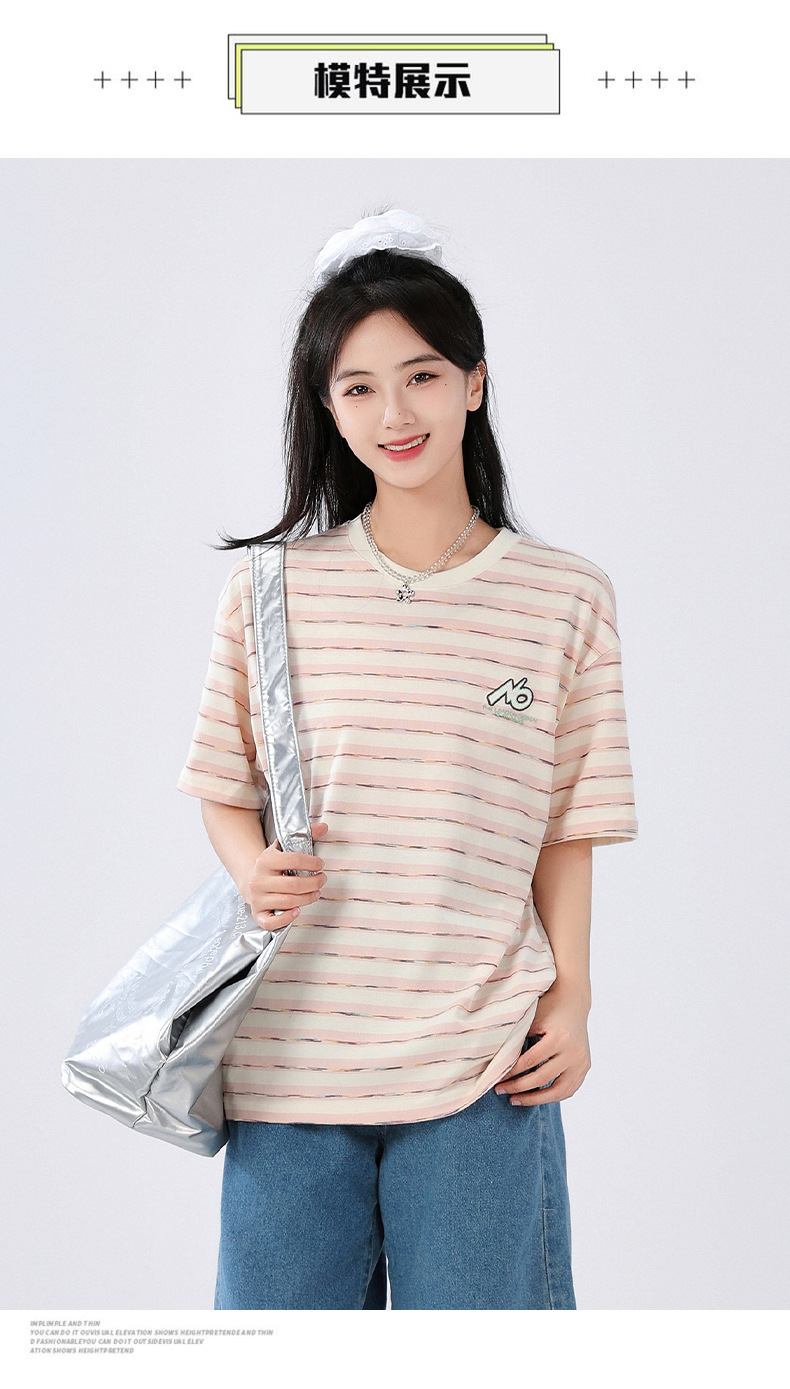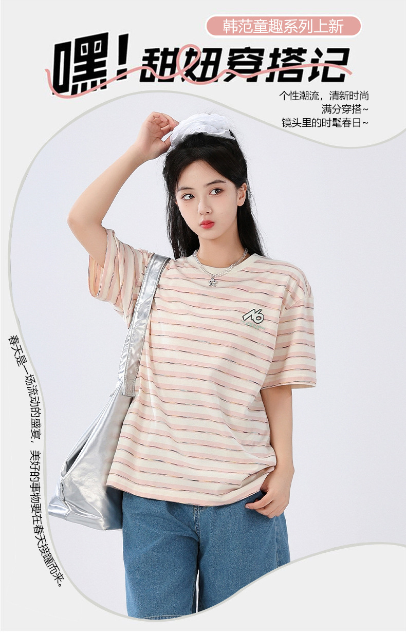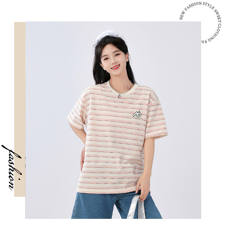 중학생 여학생 반소매 티셔츠 여름착용 큰아이 느슨한 플러스 사이즈 줄무늬 반소매 학생 면상 10 대스토어 가기