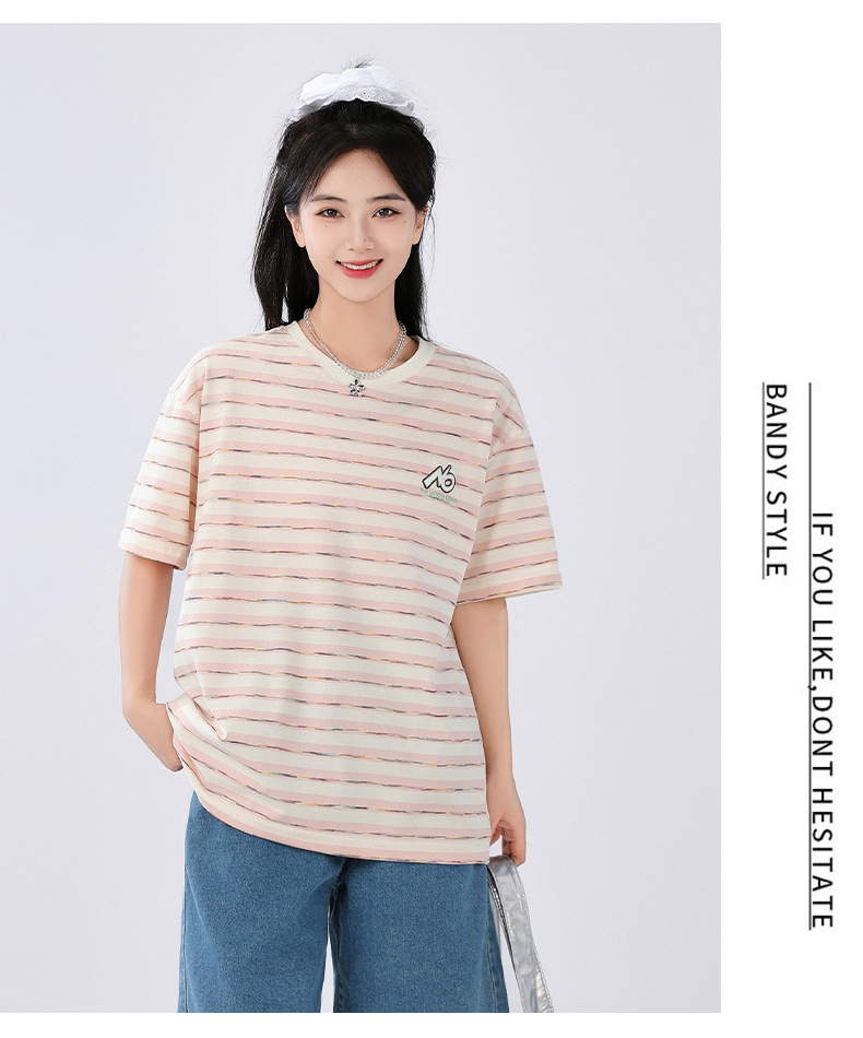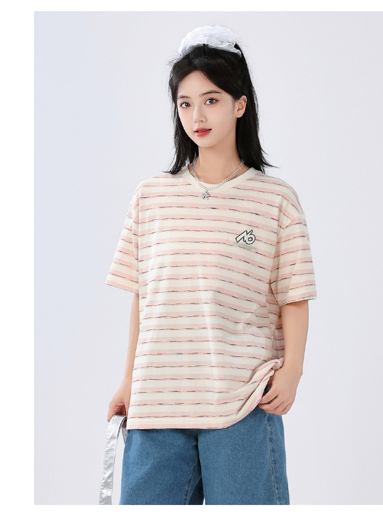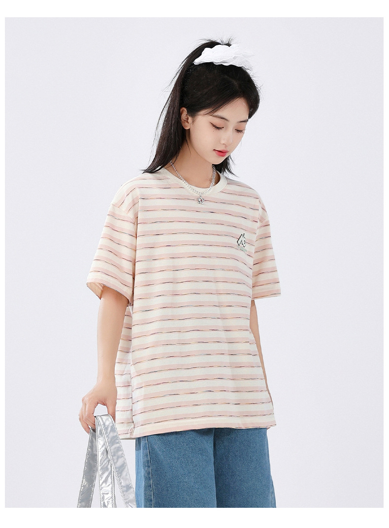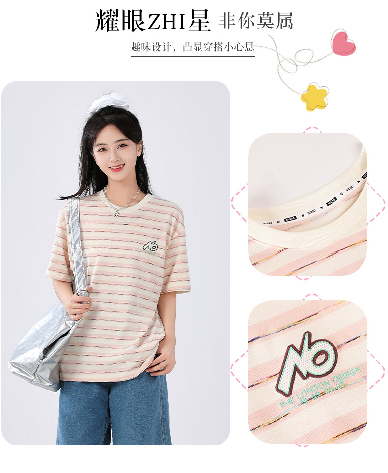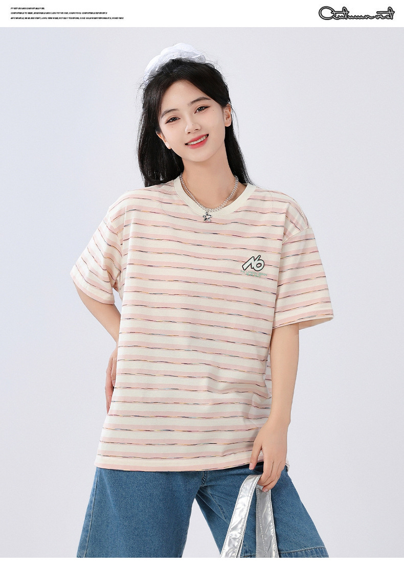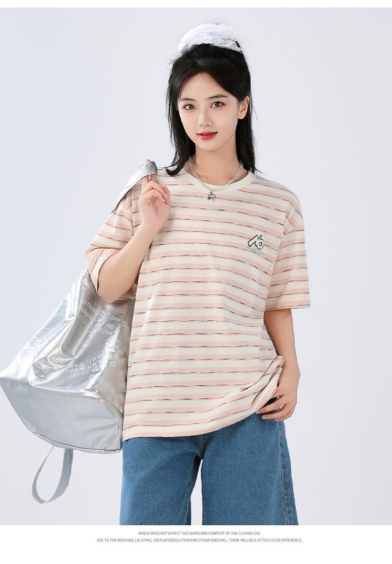 중학생 여학생 반소매 티셔츠 여름착용 큰아이 느슨한 플러스 사이즈 줄무늬 반소매 학생 면상 10 대스토어 가기