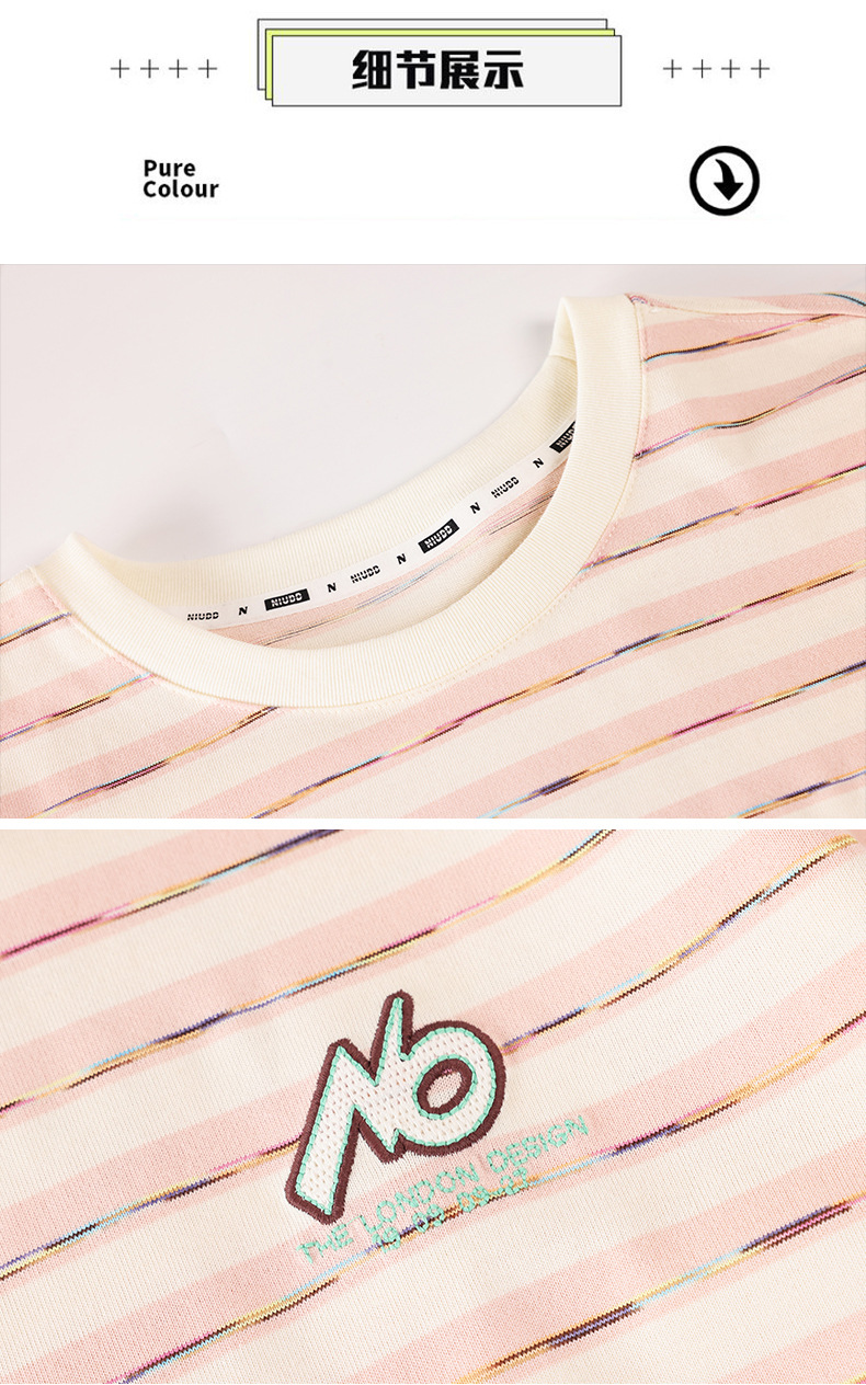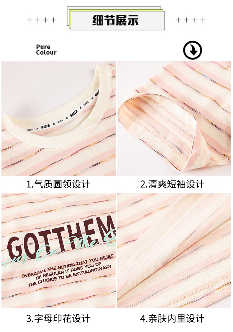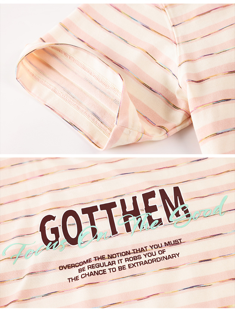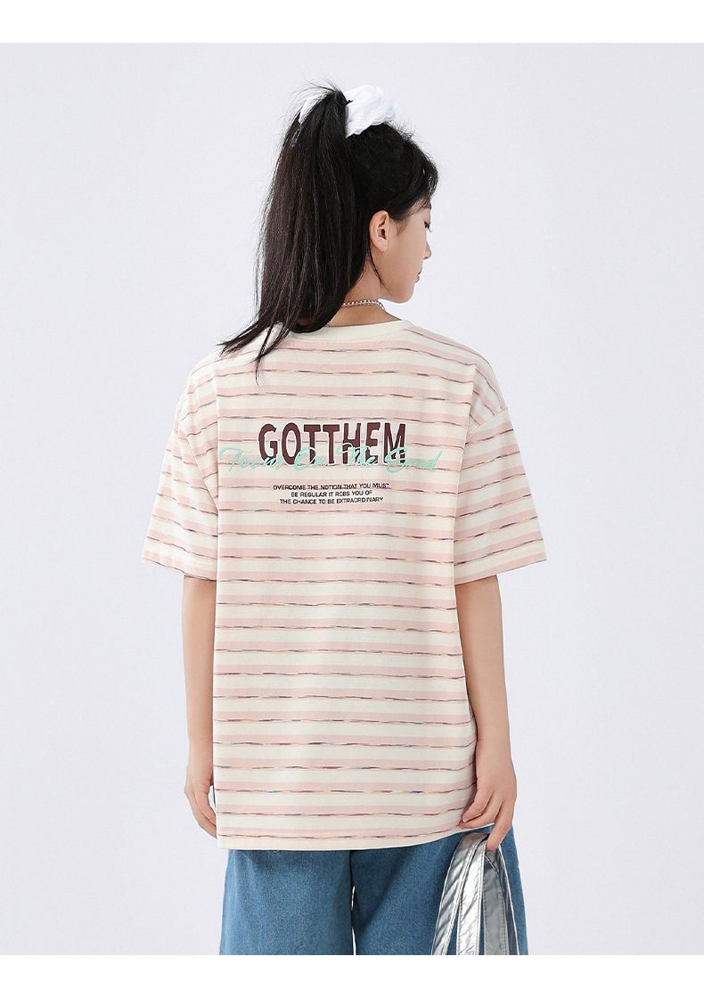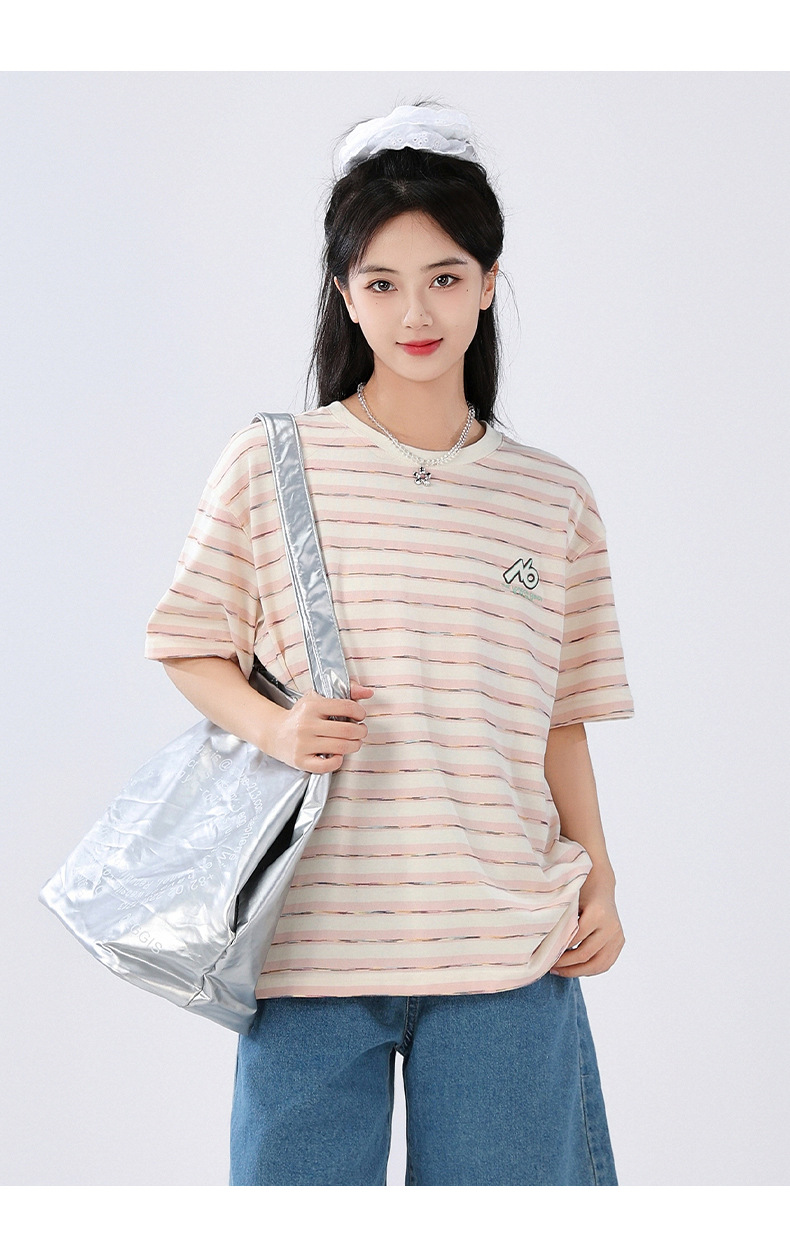 중학생 여학생 반소매 티셔츠 여름착용 큰아이 느슨한 플러스 사이즈 줄무늬 반소매 학생 면상 10 대스토어 가기