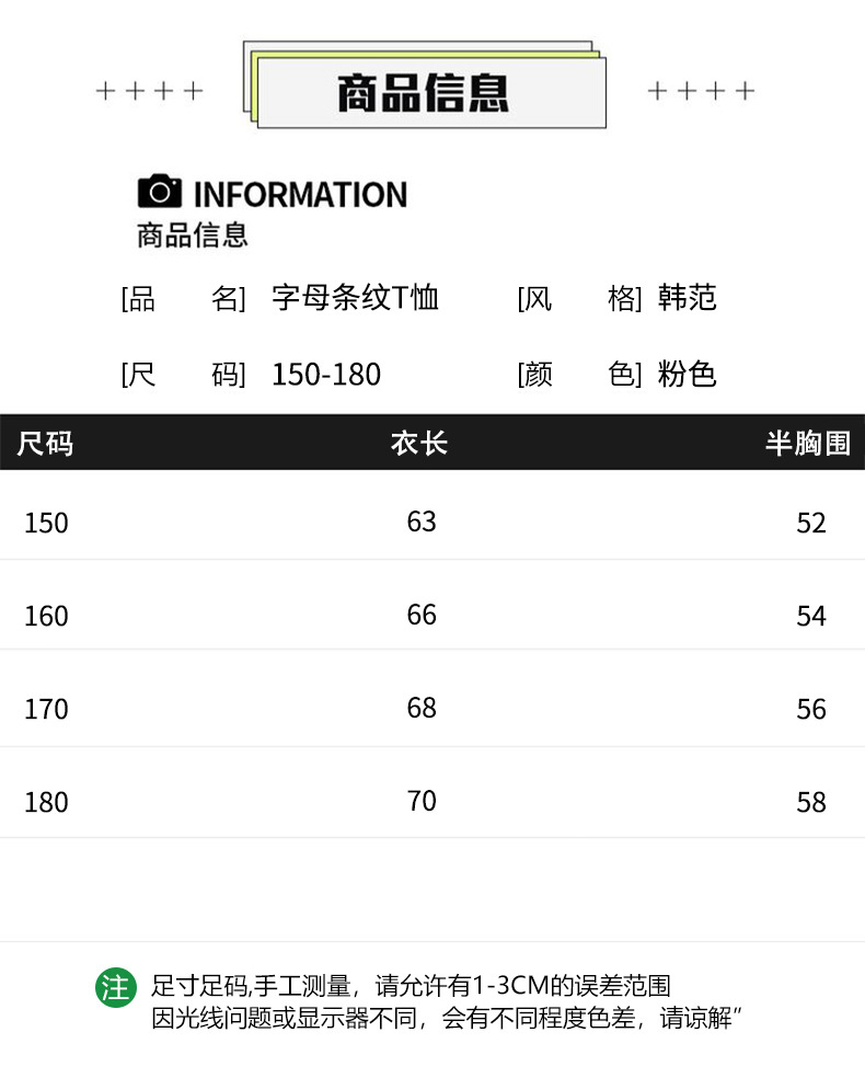 중학생 여학생 반소매 티셔츠 여름착용 큰아이 느슨한 플러스 사이즈 줄무늬 반소매 학생 면상 10 대