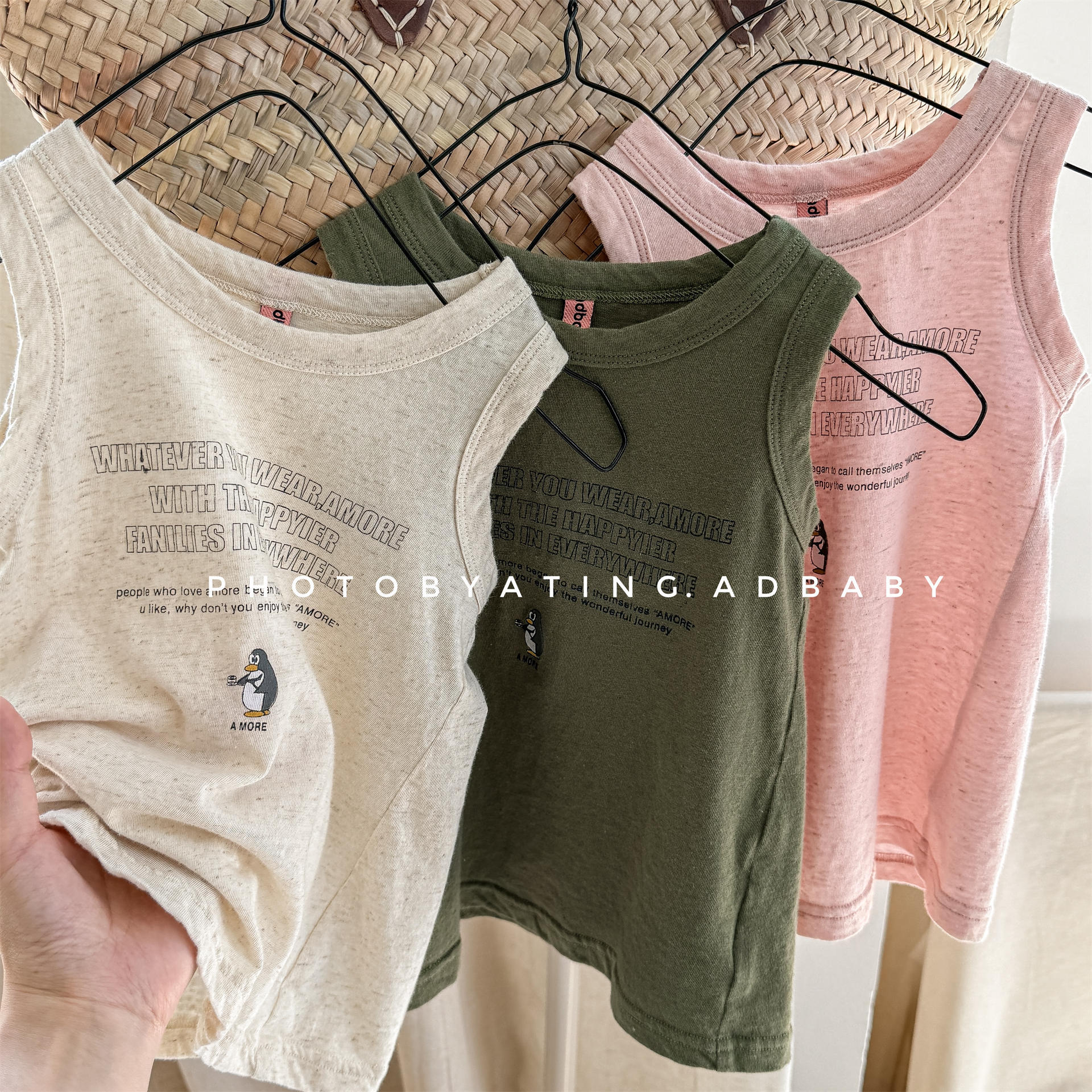 2026 호주 직리 아동복 아동용 한국 스타일 민소매 티셔츠 조끼 여아 여름옷 남아 베이스 레이어 티셔츠 6289