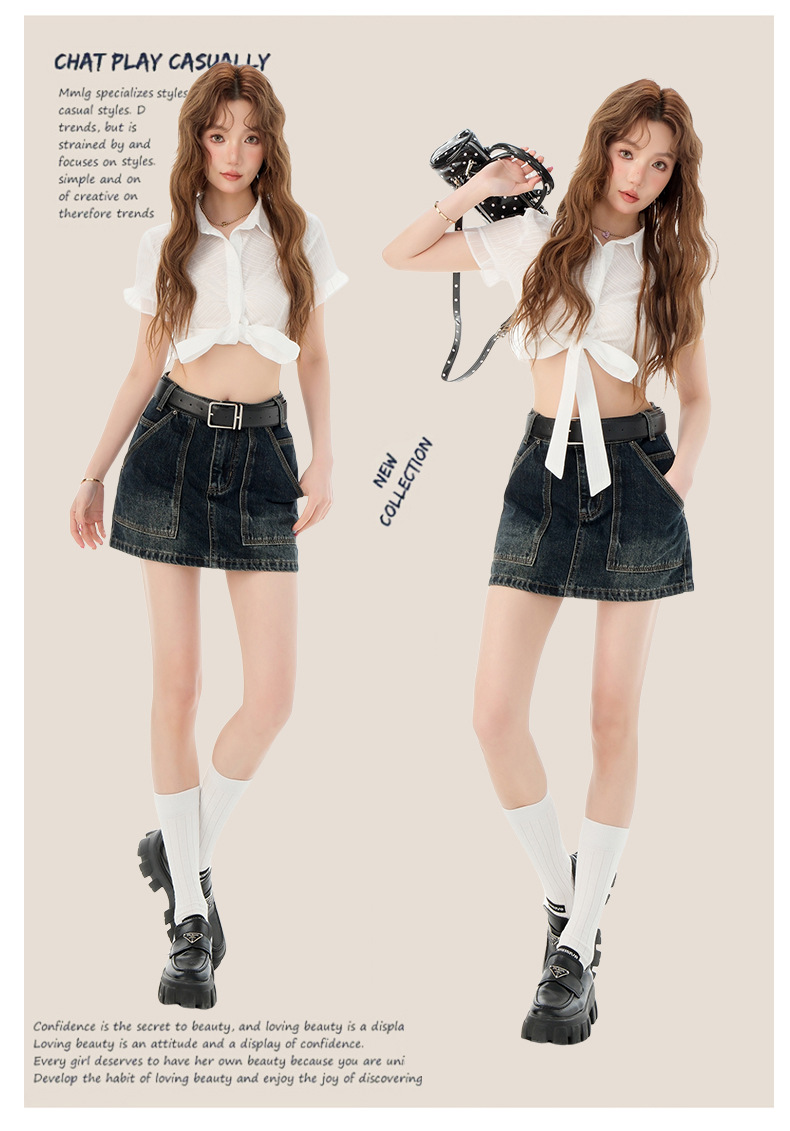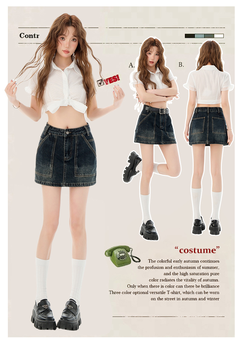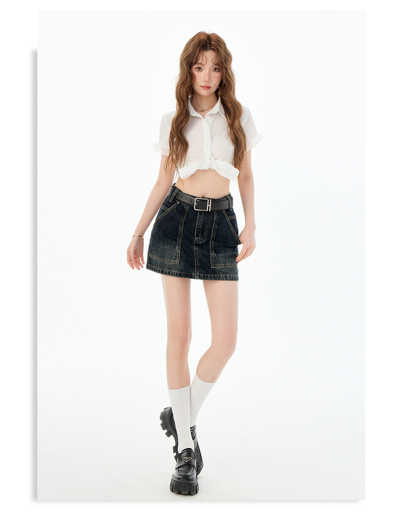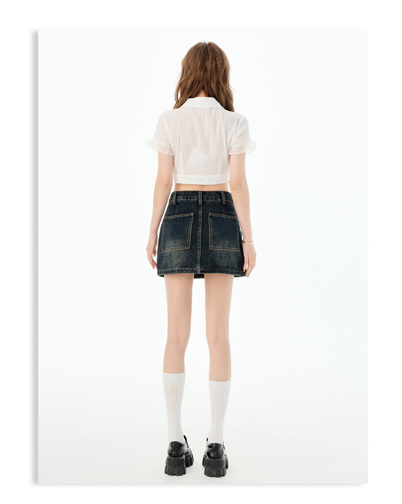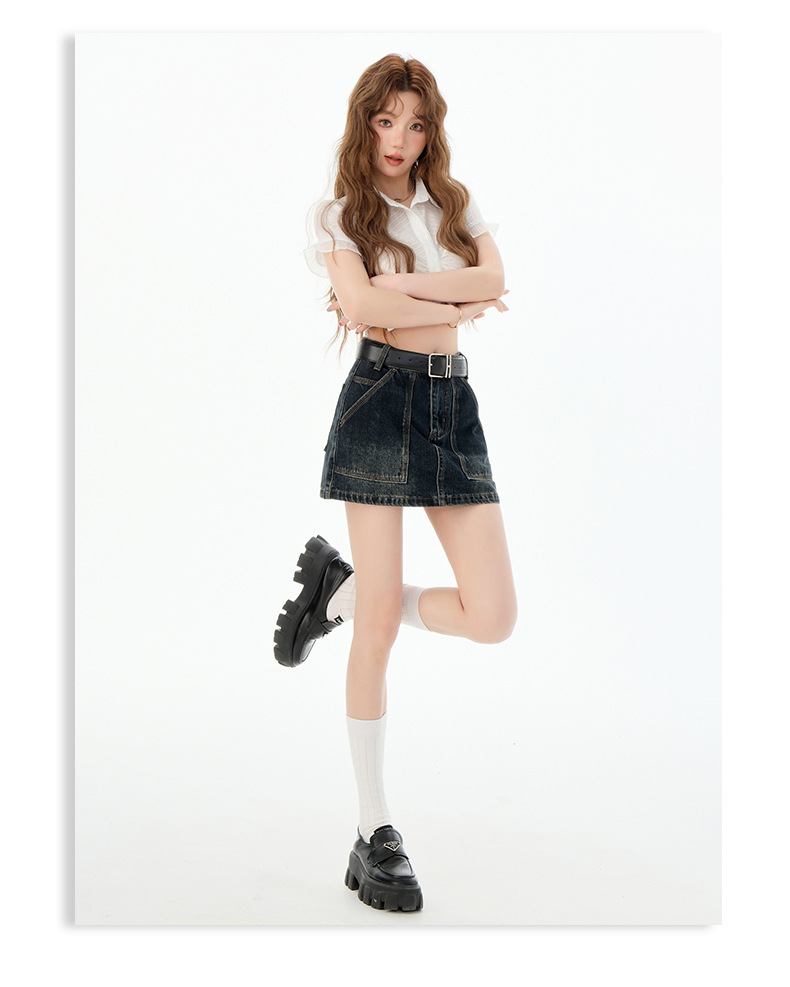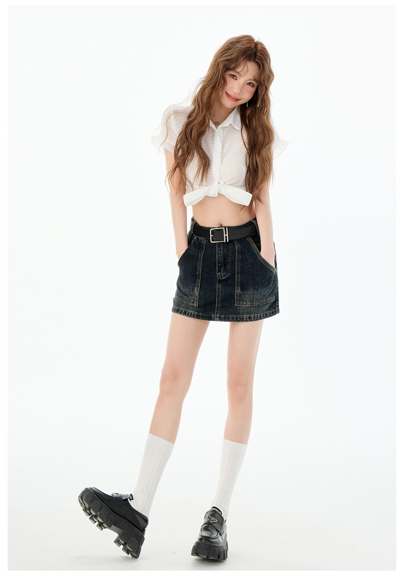 여성을위한 블루 그레이 데님 스커트 2025 여름 새로운 하이 웨이스트 슬리밍 다목적 노출 방지 핫 소녀 미니 스커트
