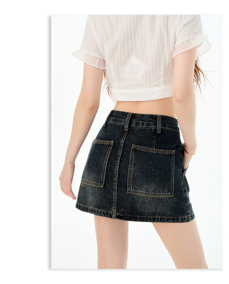 여성을위한 블루 그레이 데님 스커트 2025 여름 새로운 하이 웨이스트 슬리밍 다목적 노출 방지 핫 소녀 미니 스커트스토어 가기