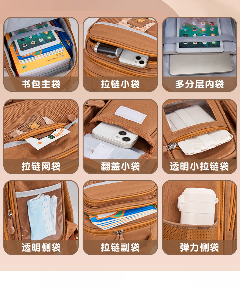 소년과 소녀를위한 새로운 Kapibala 초등학교 가방 대용량 1-3-6 학년 어린이 배낭 도매스토어 가기