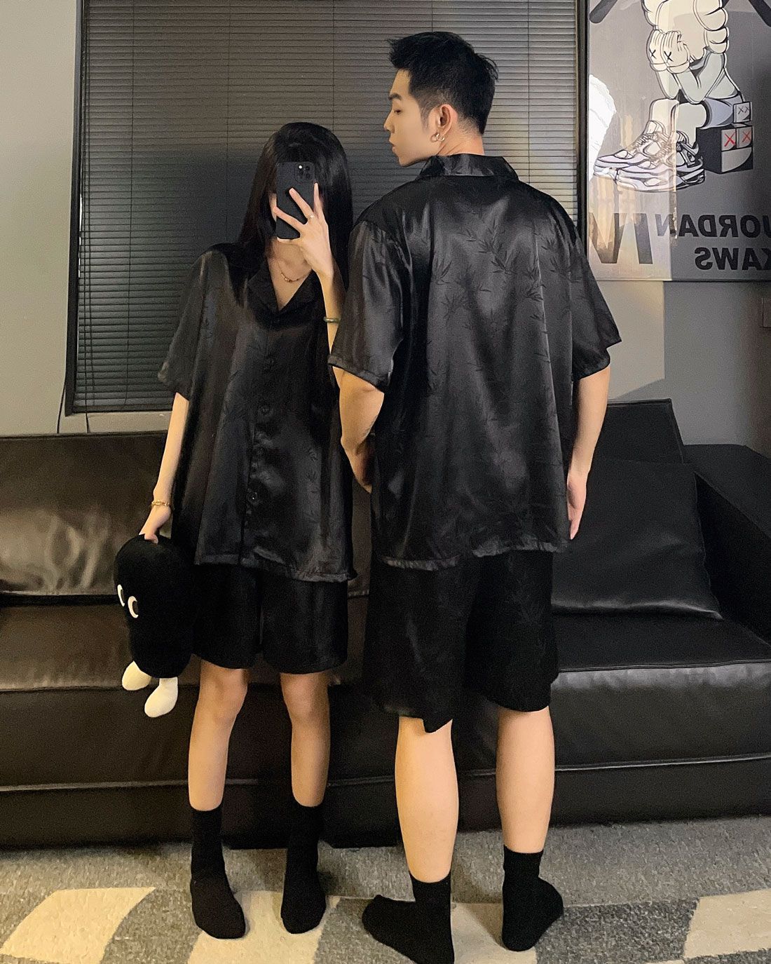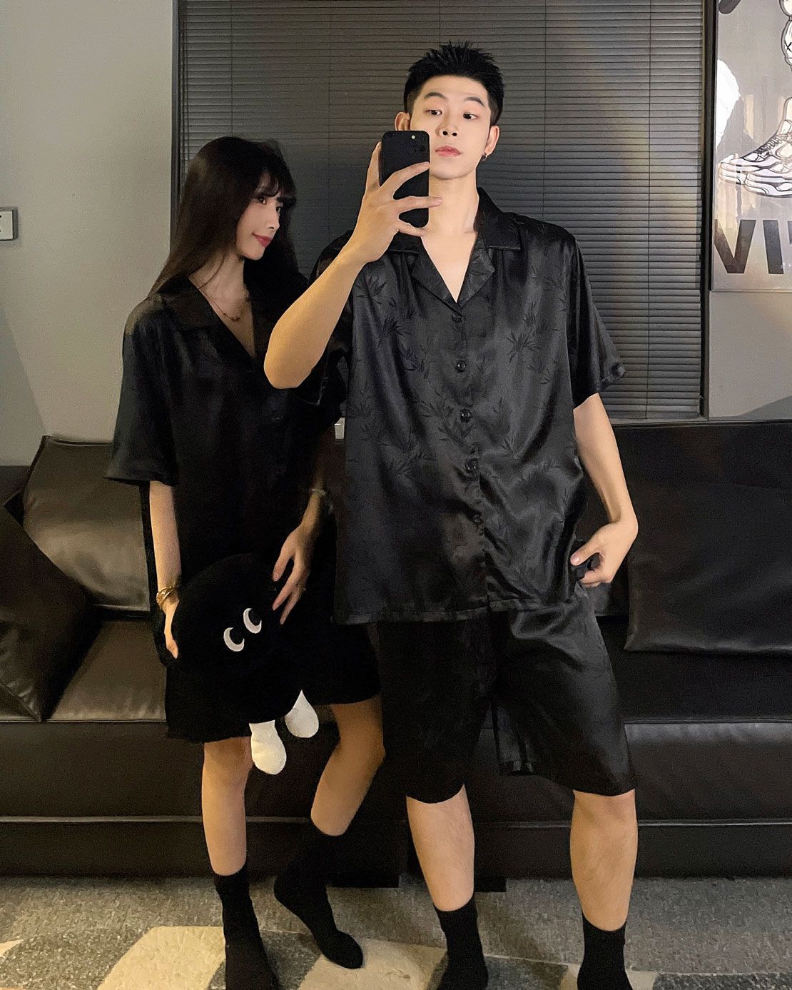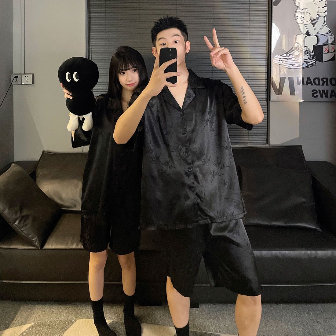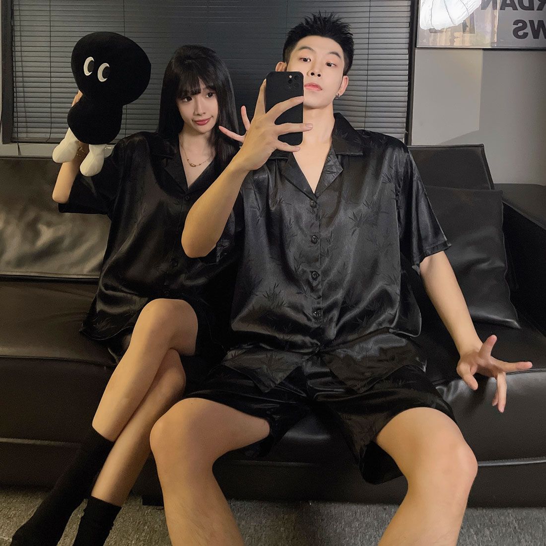 여성을위한 커플 잠옷 여름 얇은 반팔 반바지 얼음 실크 하이 엔드 청소년 남성 여름 홈웨어 세트
