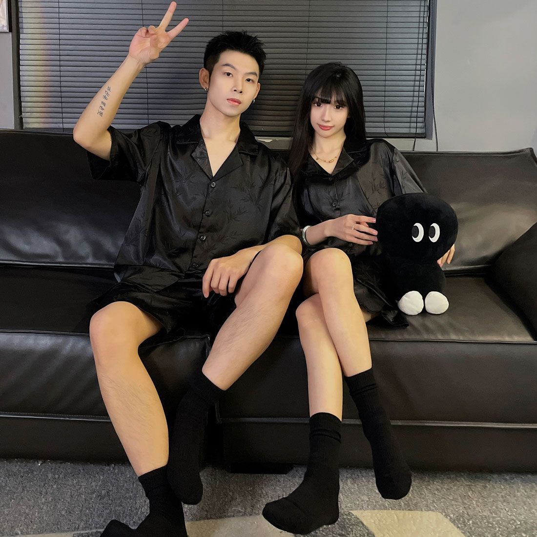 여성을위한 커플 잠옷 여름 얇은 반팔 반바지 얼음 실크 하이 엔드 청소년 남성 여름 홈웨어 세트스토어 가기