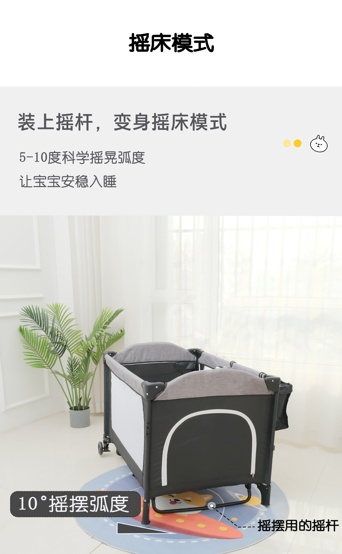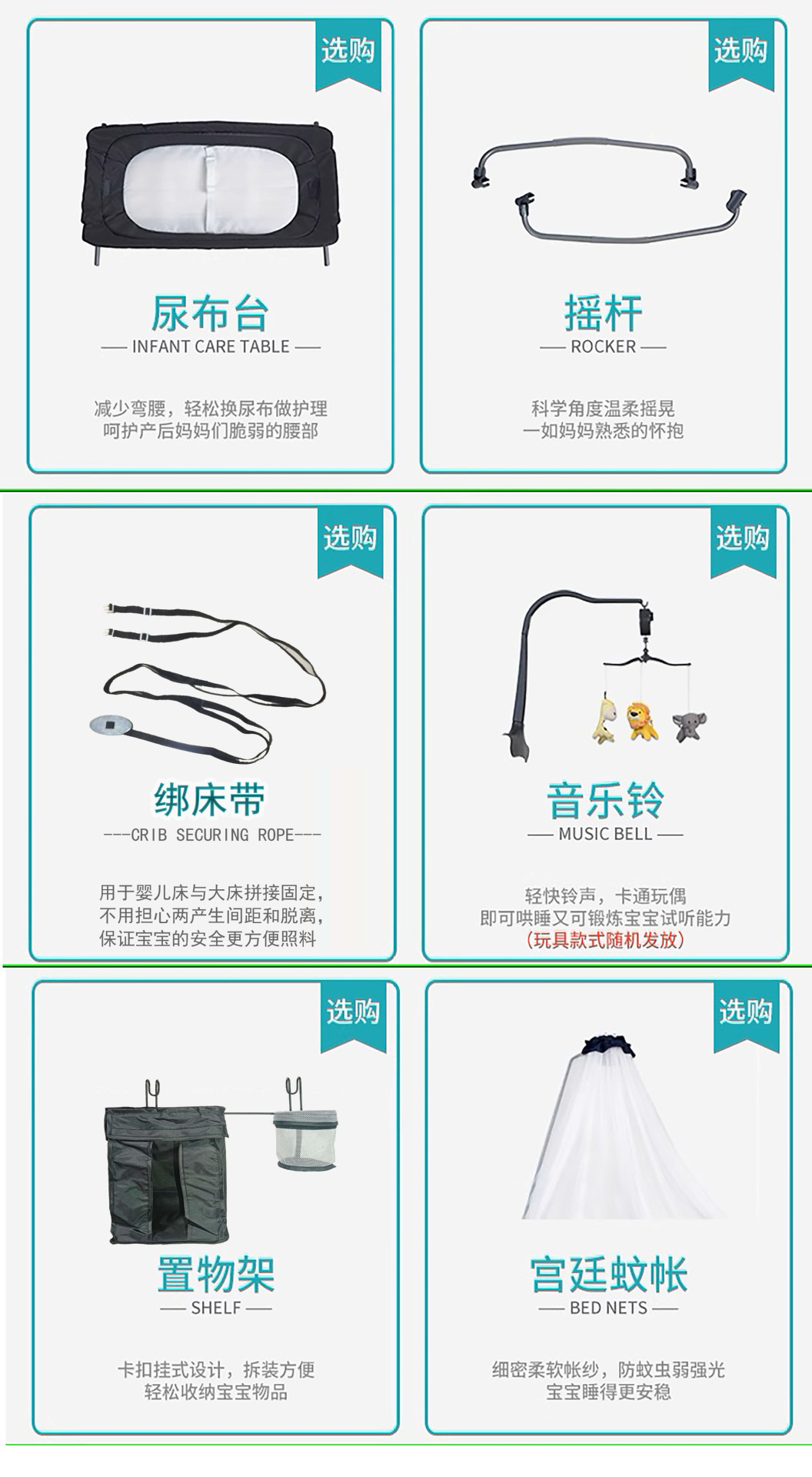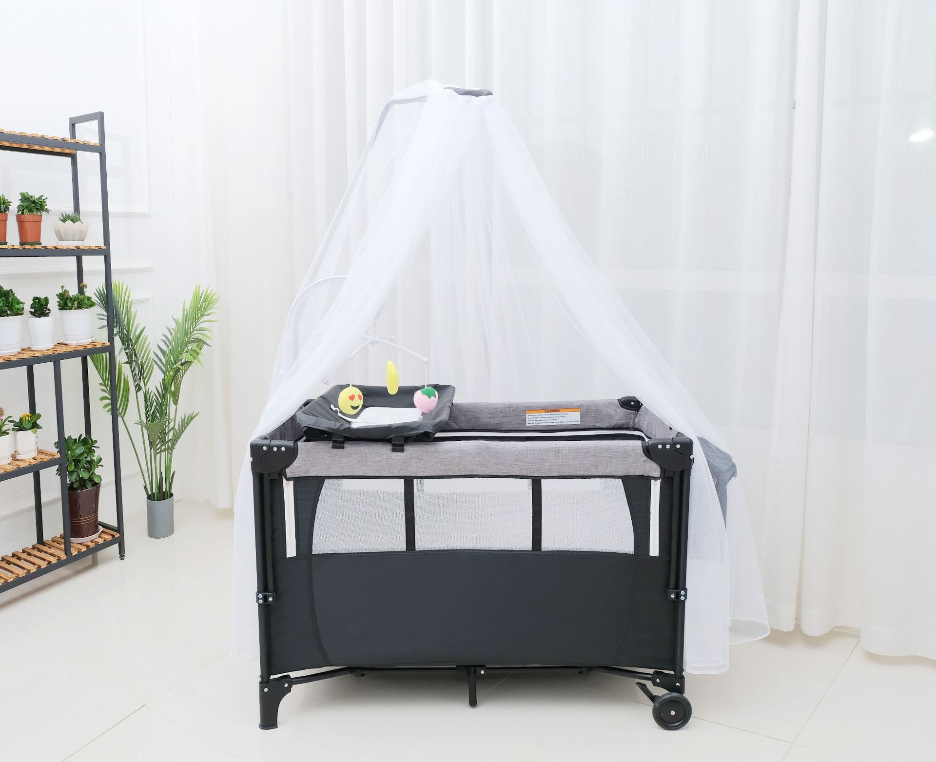 • 럭셔리 사륜 유니버셜 모리스 그레이 [핸드백 + 침대판 + 기저귀교환대 + 수납선반 + 로커 + 침대벨트 + 장난감걸이 + 모기장] 완비