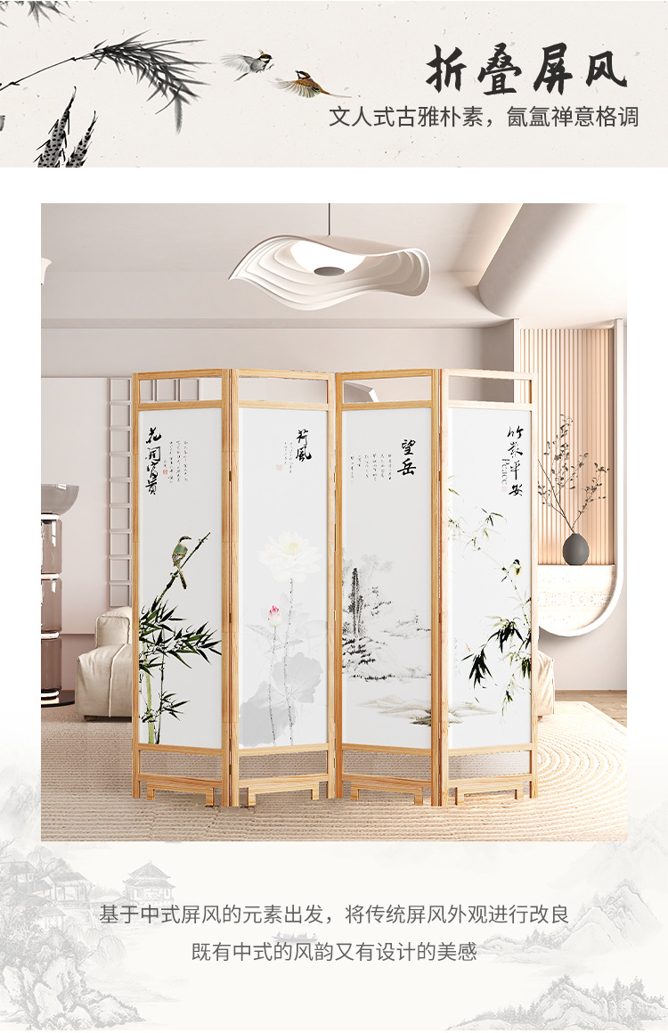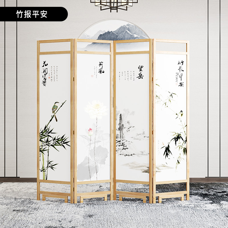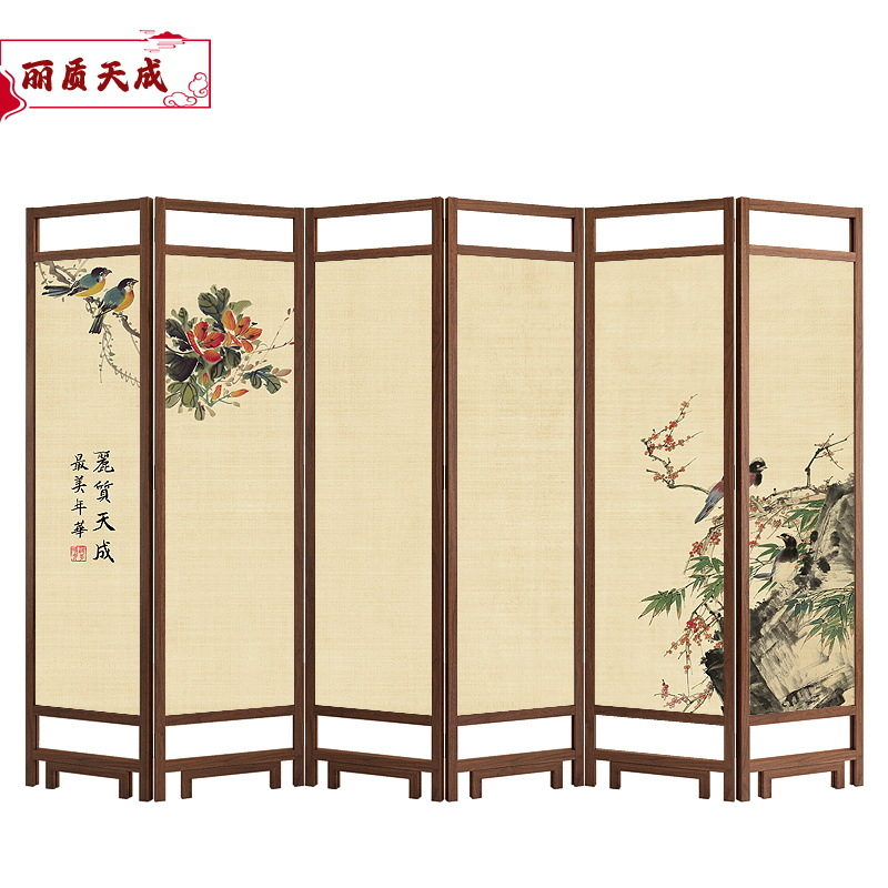 중국 스타일 단단한 나무 스크린 파티션 벽 사무실 접이식 모바일 호텔 홈 거실 마스킹 입구 문 소프트