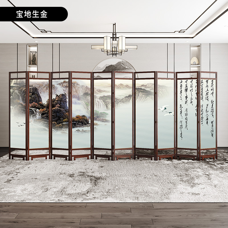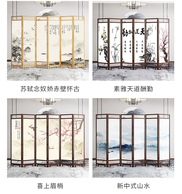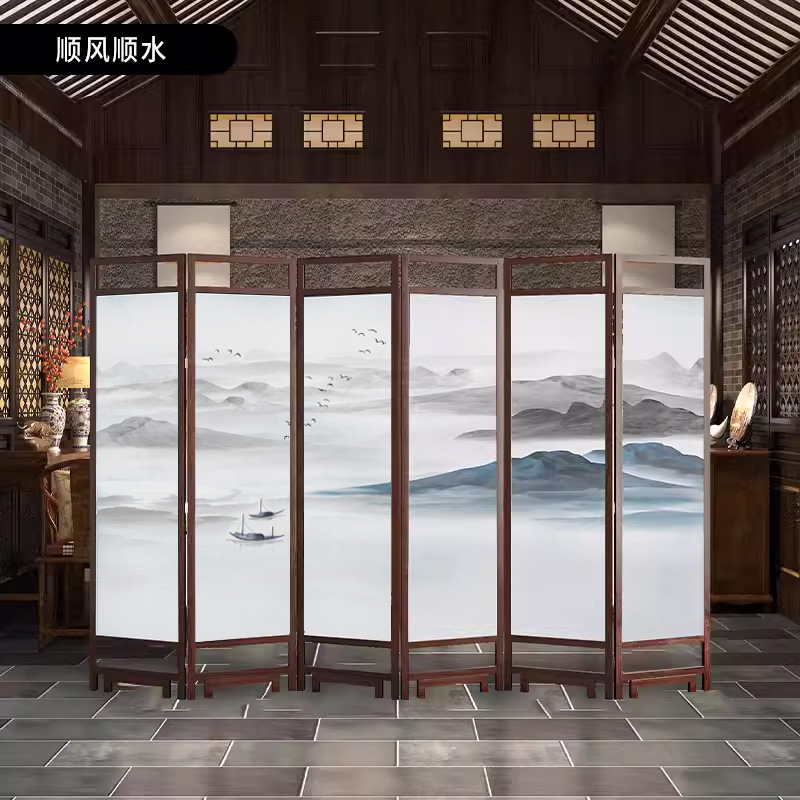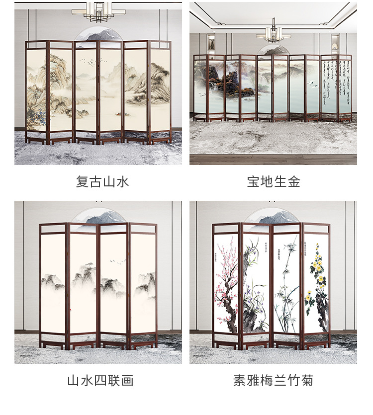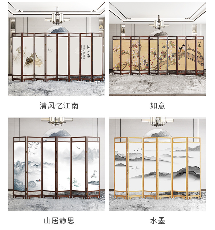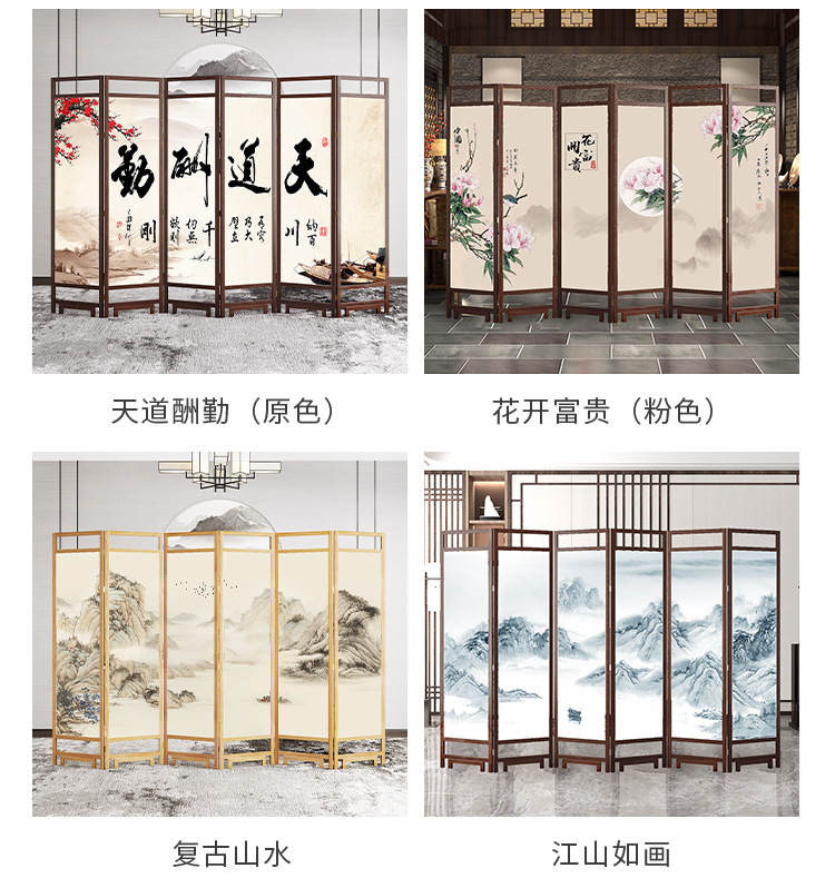 중국 스타일 단단한 나무 스크린 파티션 벽 사무실 접이식 모바일 호텔 홈 거실 마스킹 입구 문 소프트스토어 가기