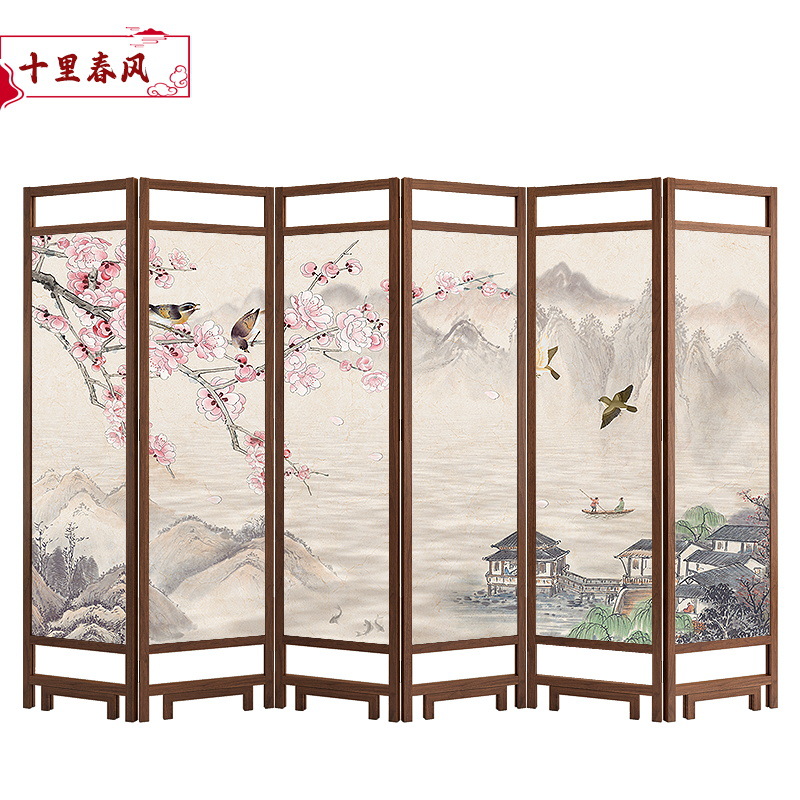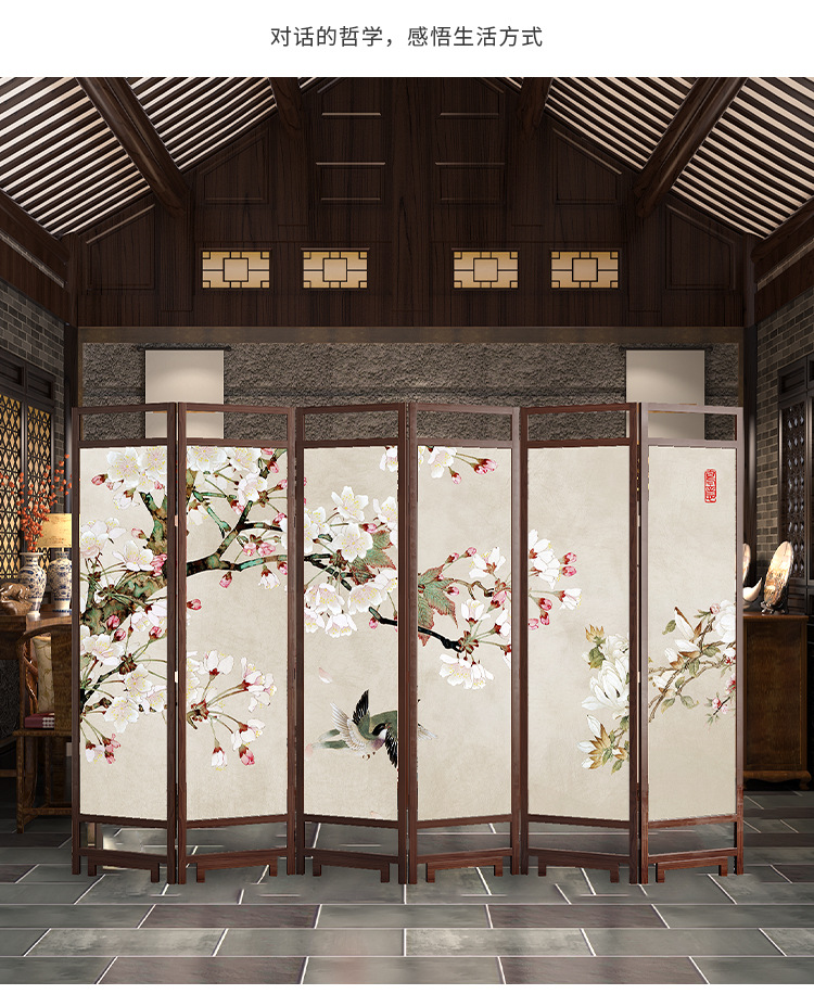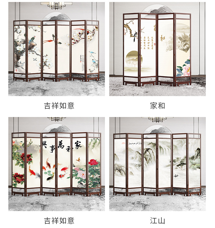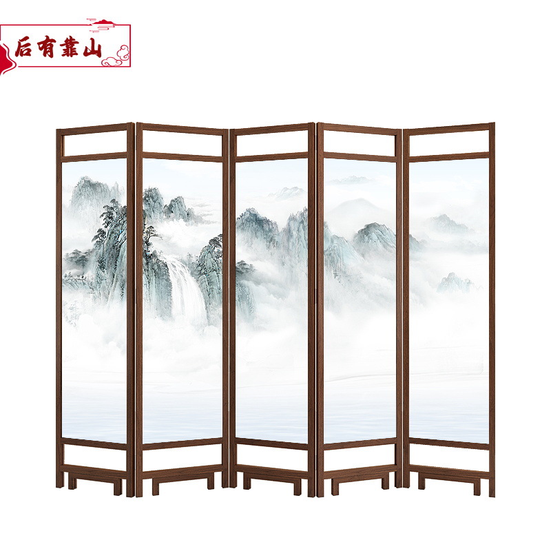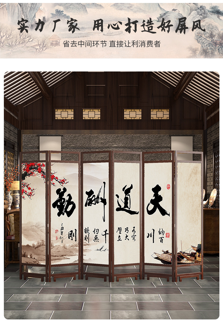 중국 스타일 단단한 나무 스크린 파티션 벽 사무실 접이식 모바일 호텔 홈 거실 마스킹 입구 문 소프트스토어 가기