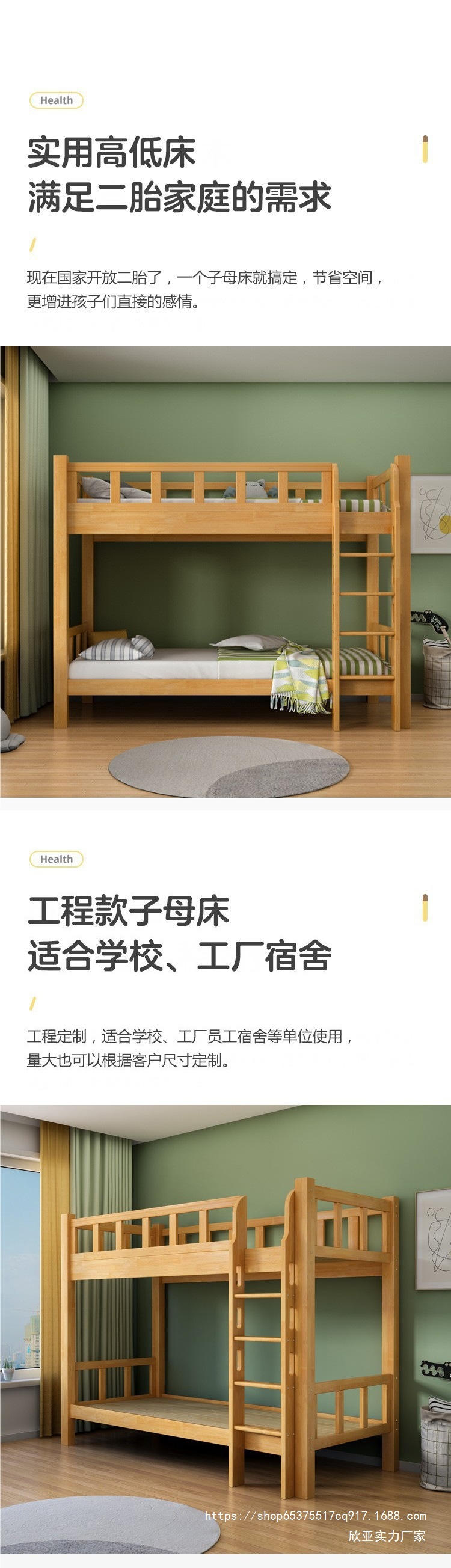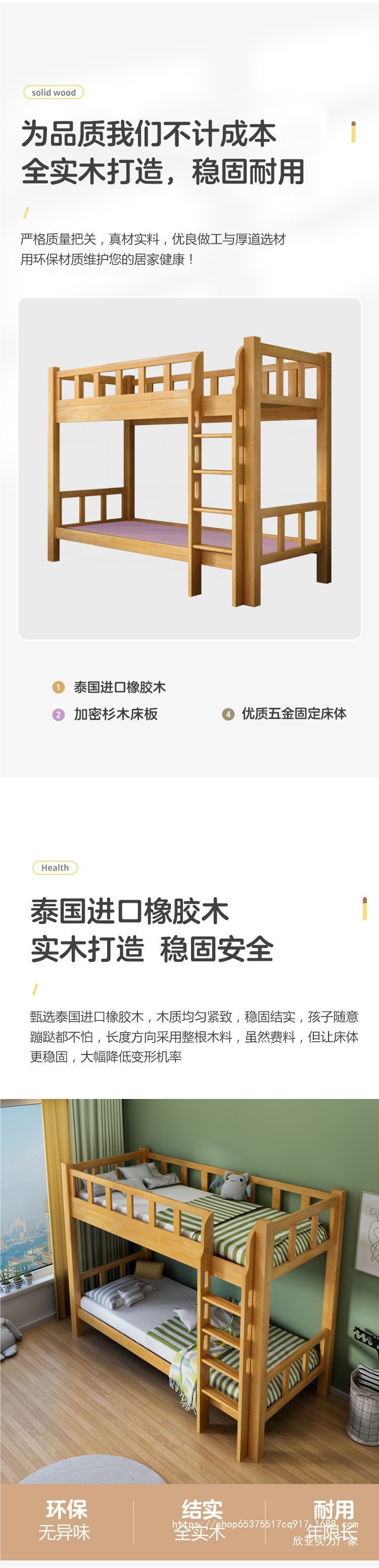 • 이층 침대 + 5CM 갈색 매트리스*2