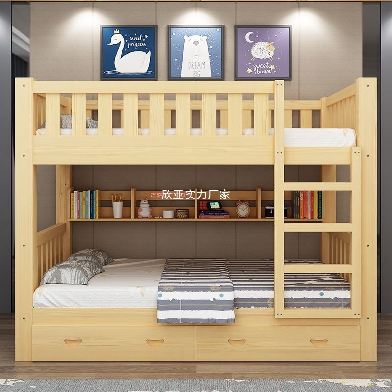이층 침대 에스컬레이터 침대 높낮이 침대 전체 원목 이층 다기능 어린이 이층 침대 더블 침대 옷장 일체형스토어 가기