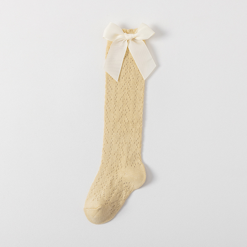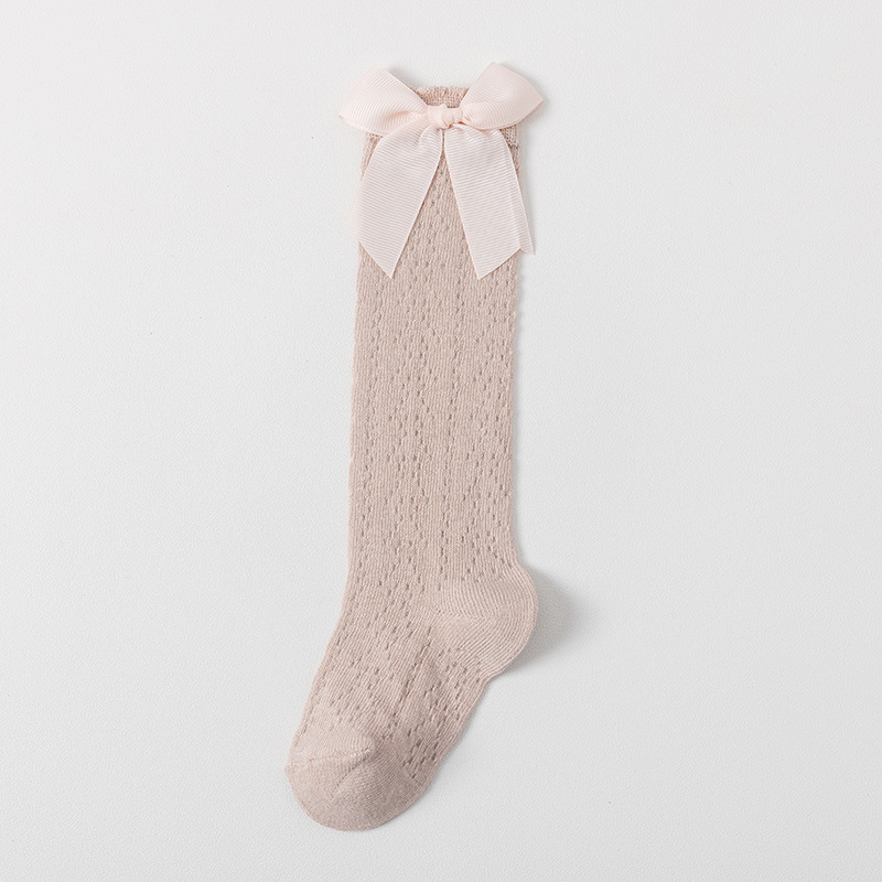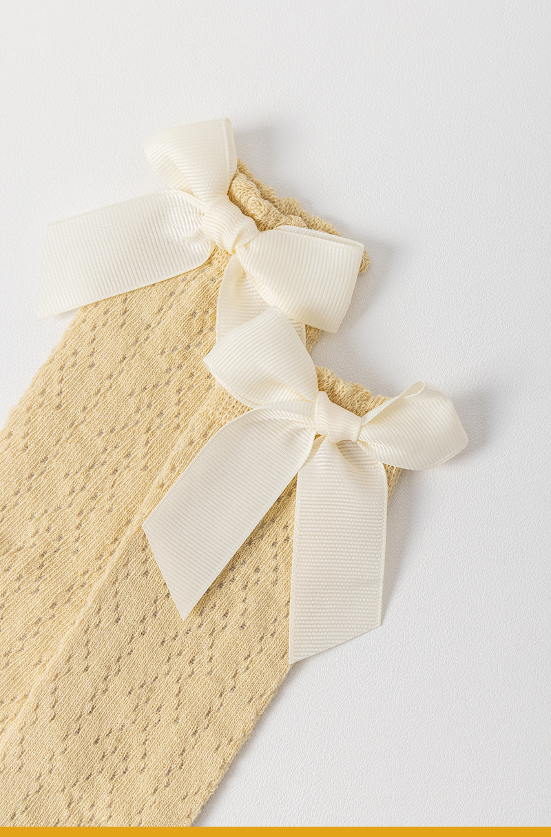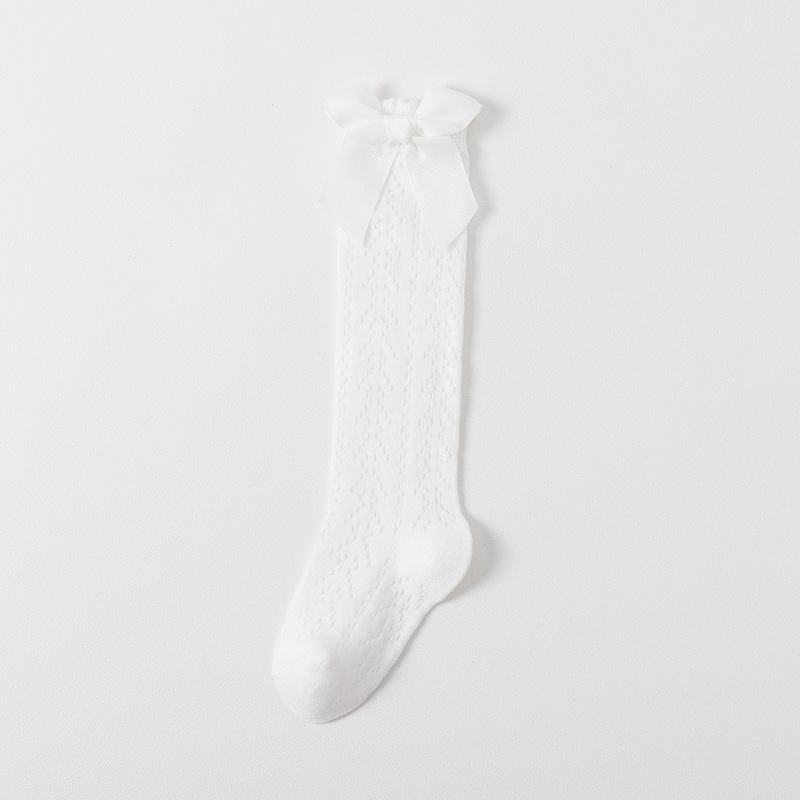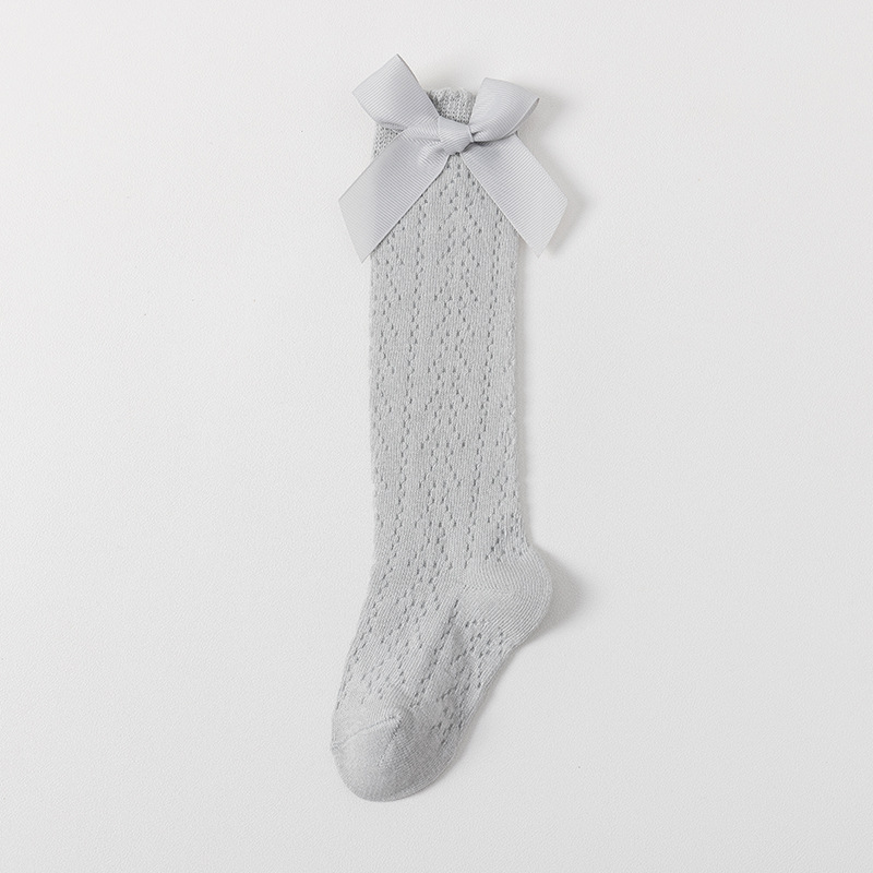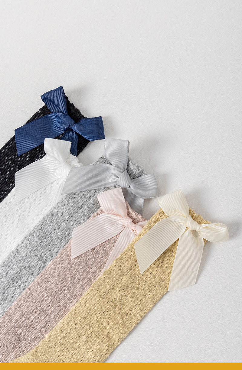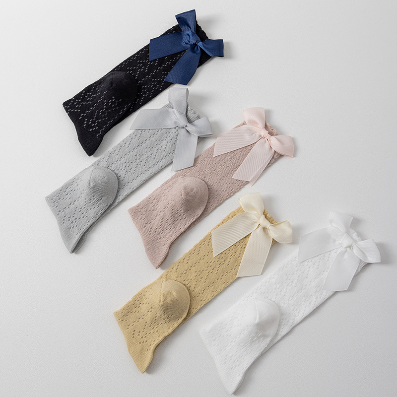 23 여름 스페인어 어린이 양말 얇은 메쉬 트랜스퍼 미드 튜브 양말 소녀 큰 활 공주 아기 양말