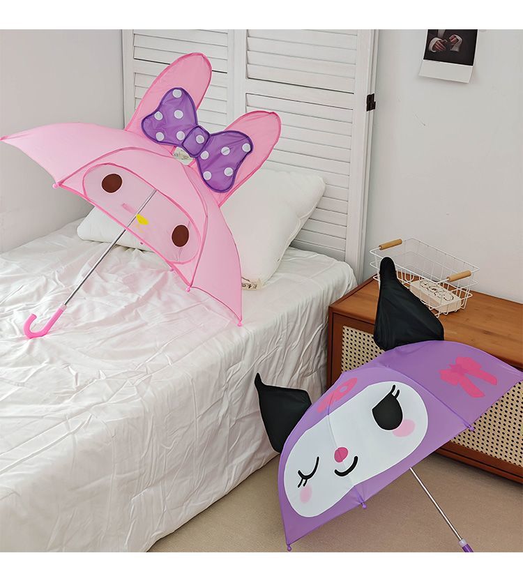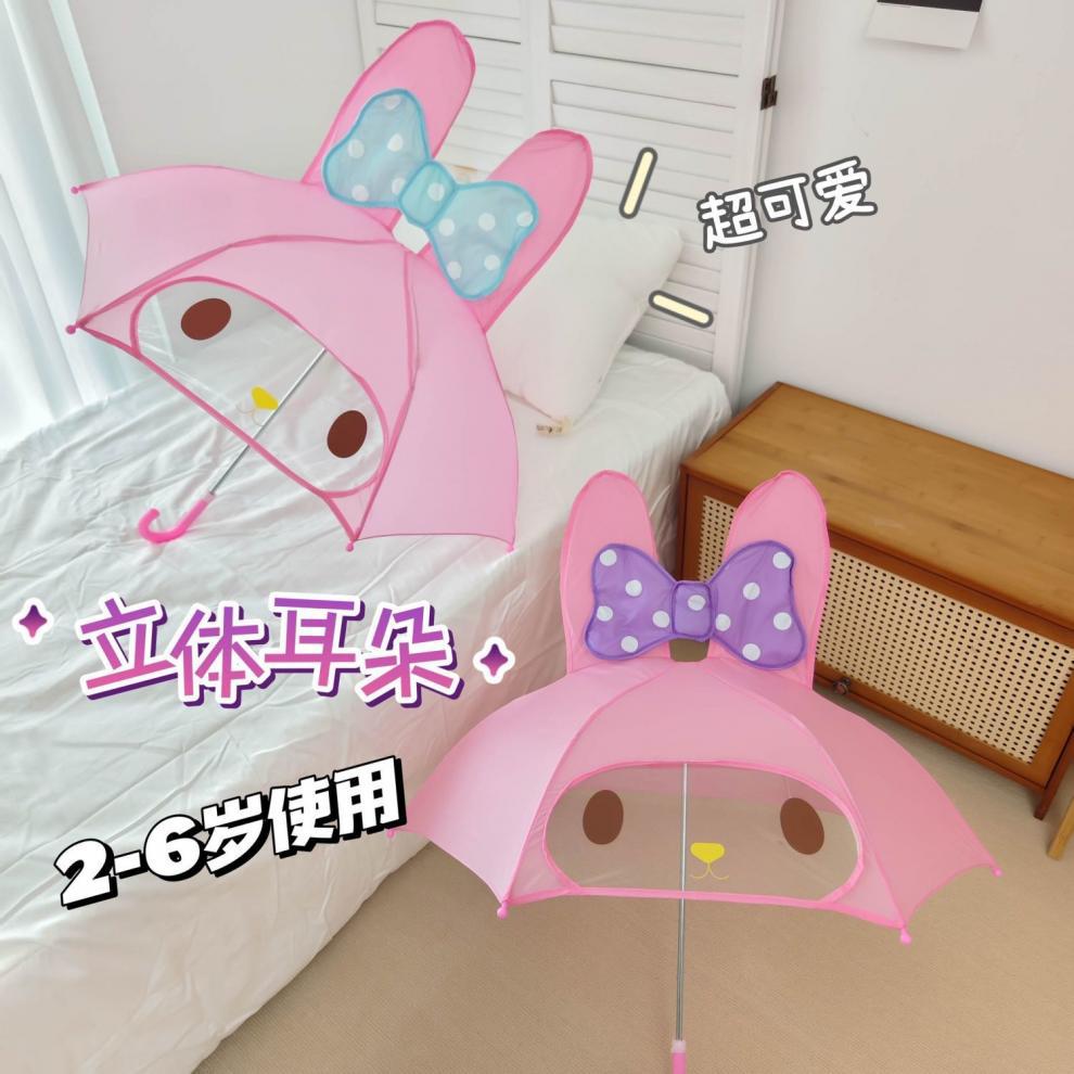 멜로디 어린이 우산 유치원 귀여운 아기 우산 쿠로미 입체 어린이 수동 긴 손잡이 우산 여성