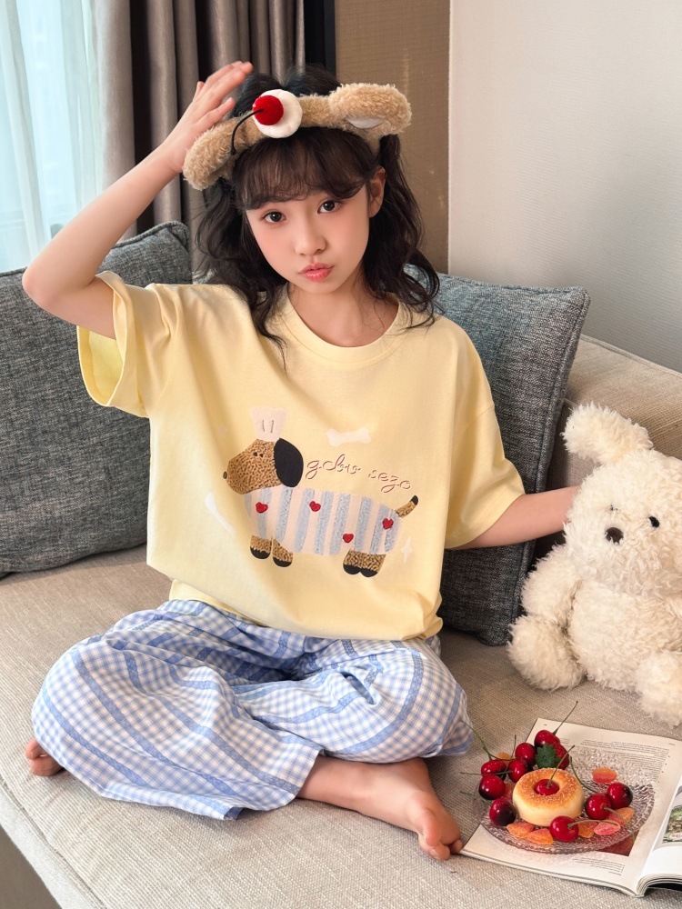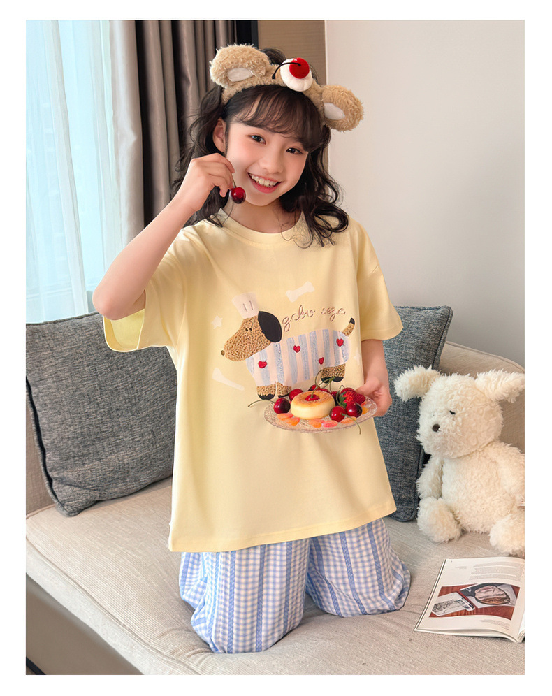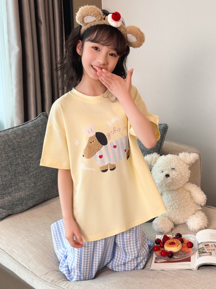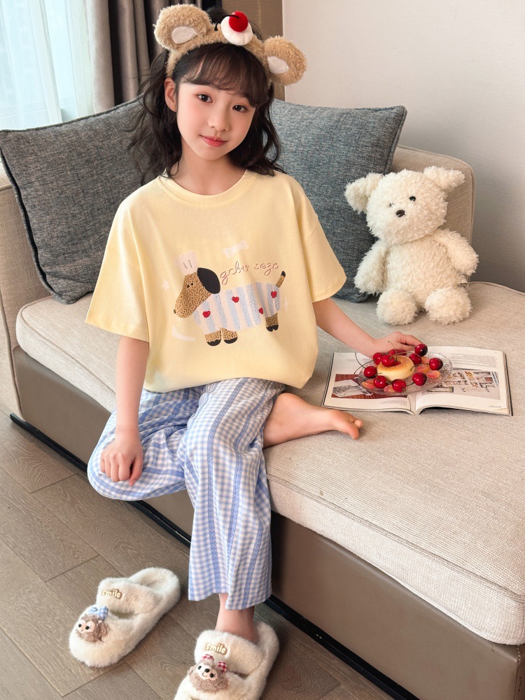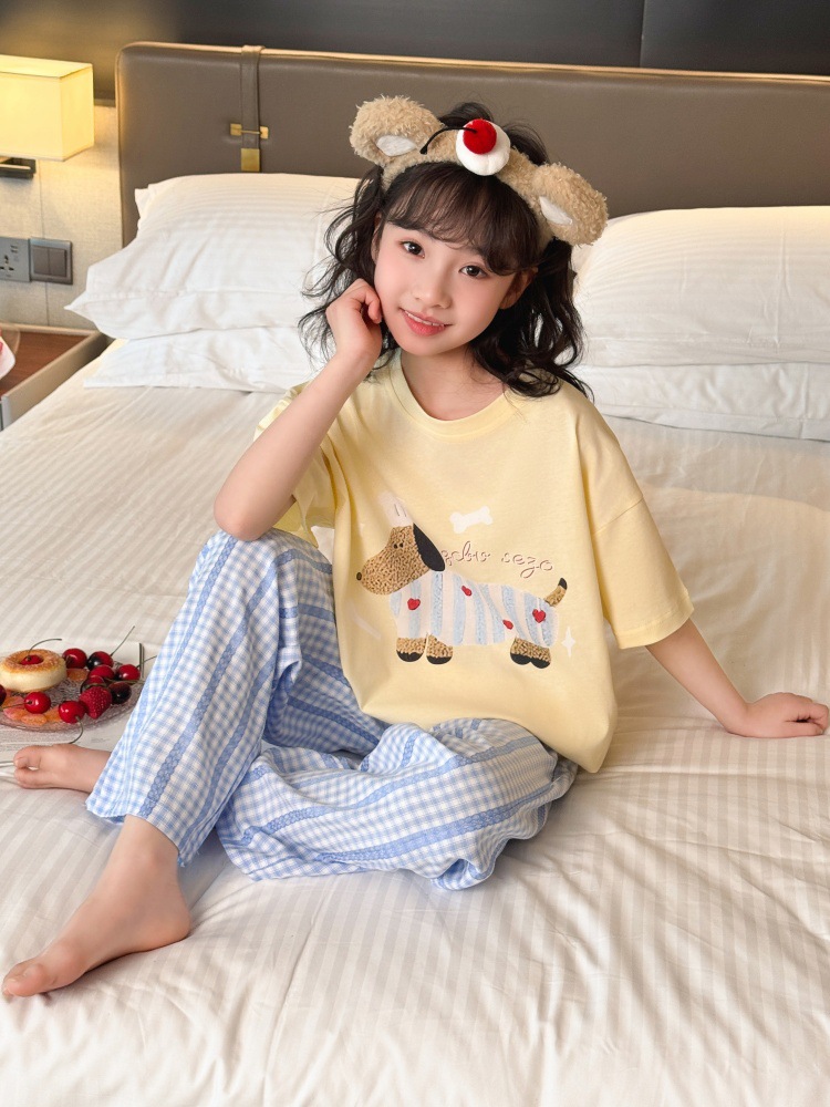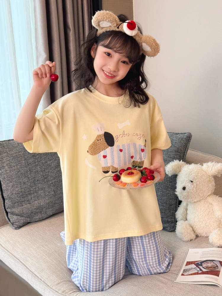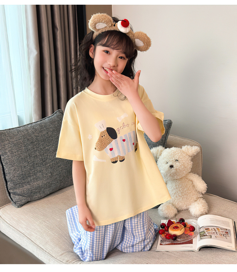 소녀 반팔 만화 잠옷 바지 세트 여름 큰 아이들 귀여운 겉옷 캐주얼 느슨한 집 옷 도매스토어 가기