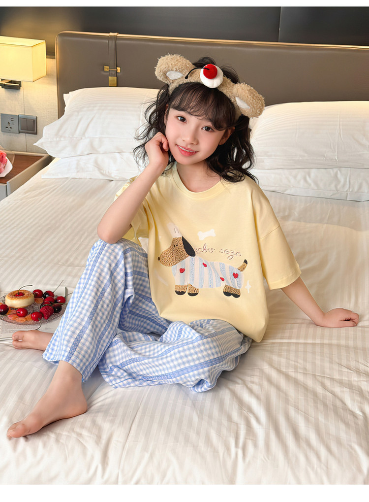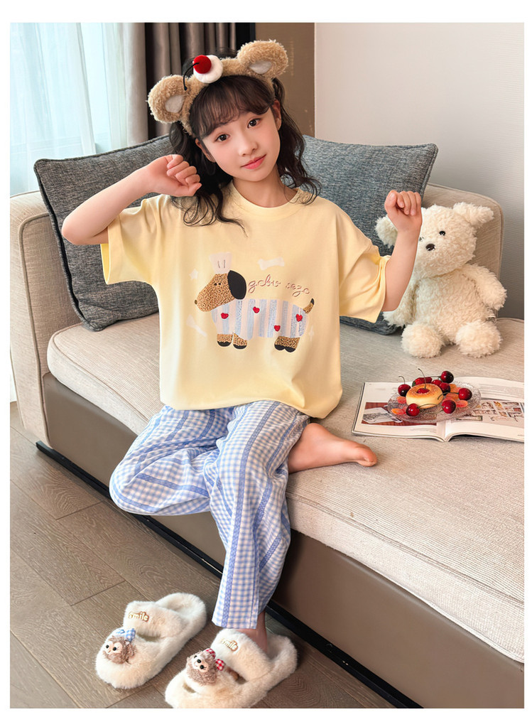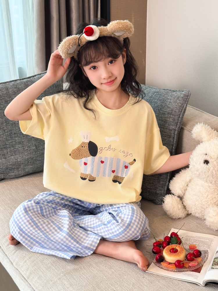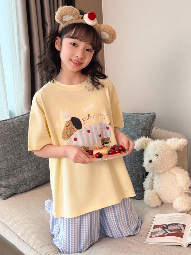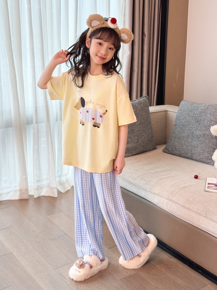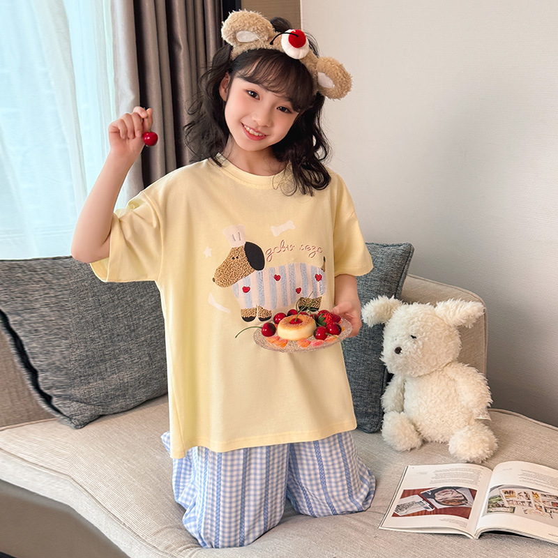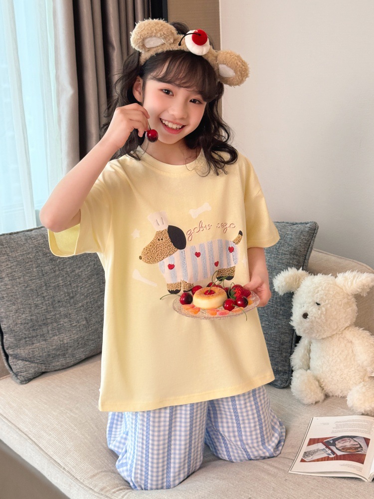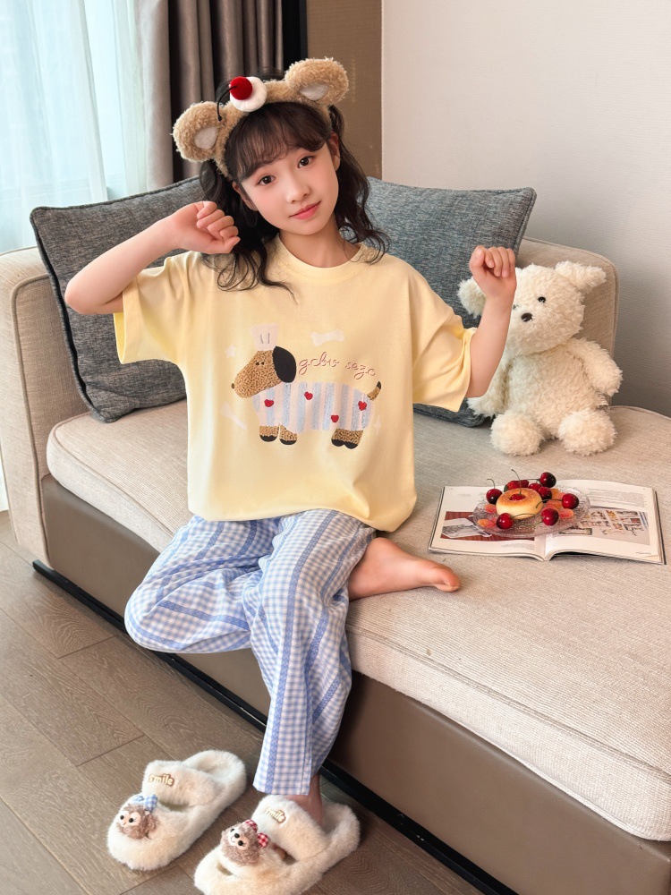 소녀 반팔 만화 잠옷 바지 세트 여름 큰 아이들 귀여운 겉옷 캐주얼 느슨한 집 옷 도매스토어 가기