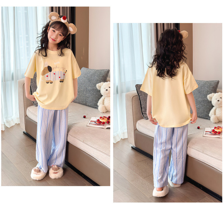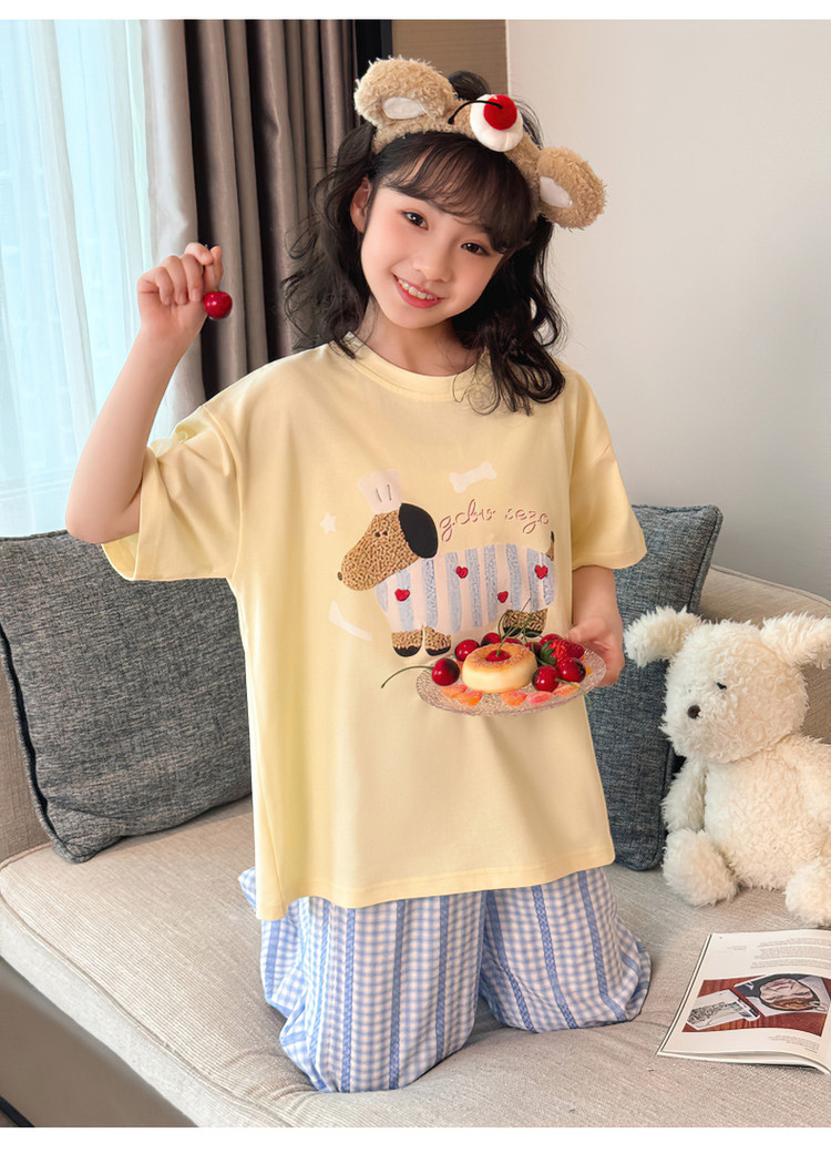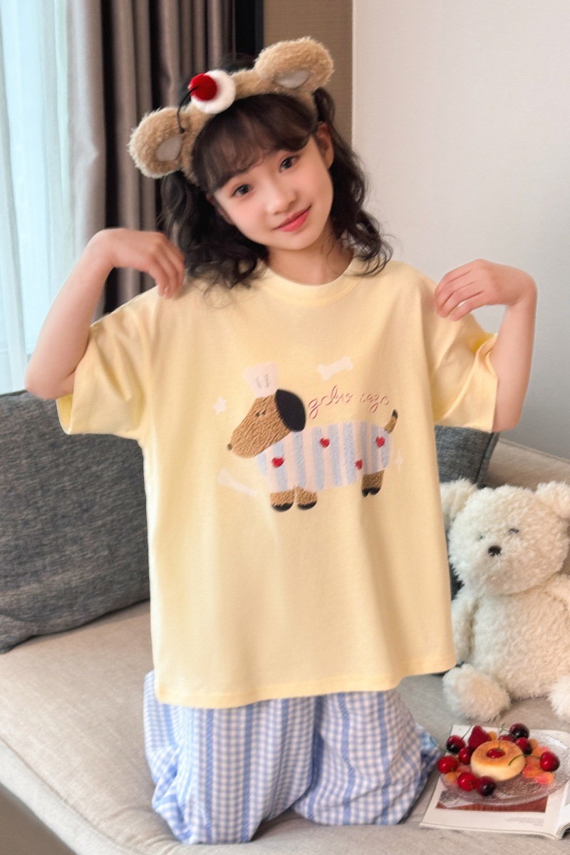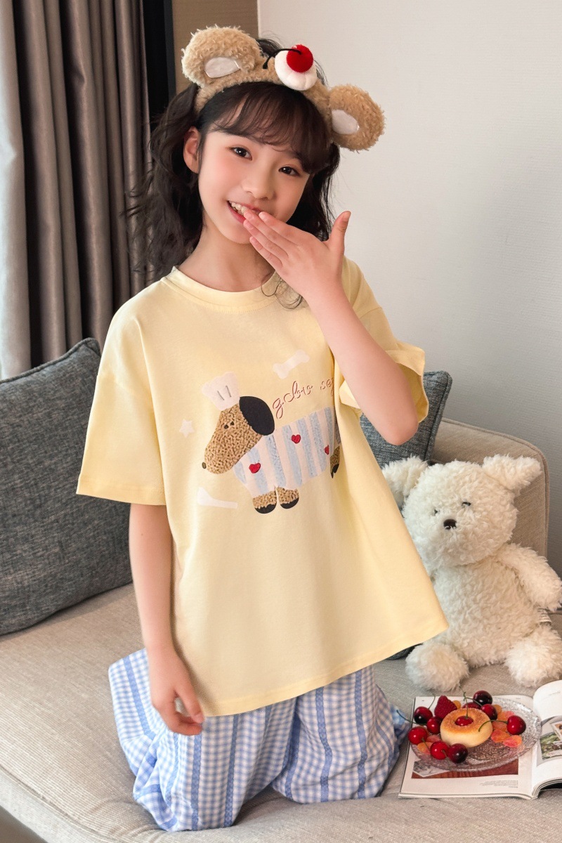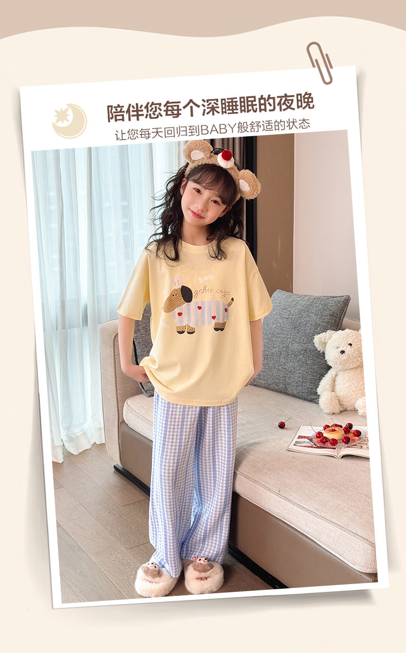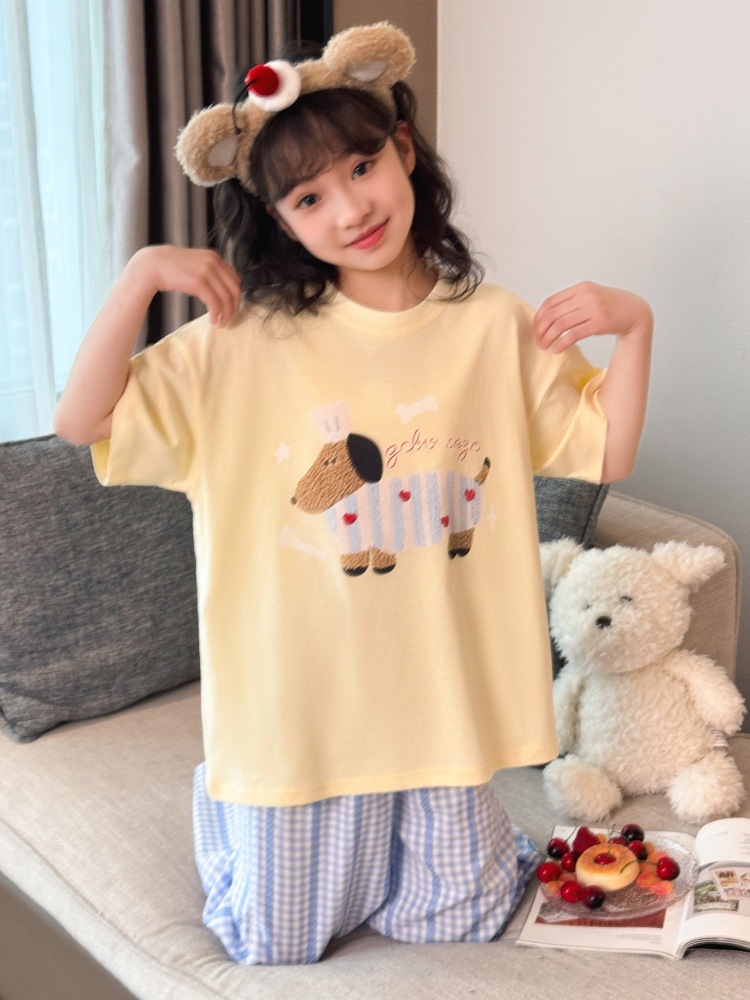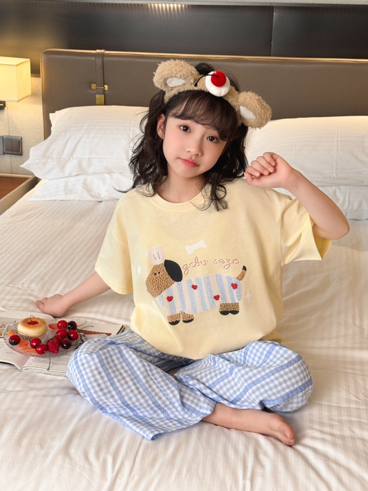 소녀 반팔 만화 잠옷 바지 세트 여름 큰 아이들 귀여운 겉옷 캐주얼 느슨한 집 옷 도매스토어 가기