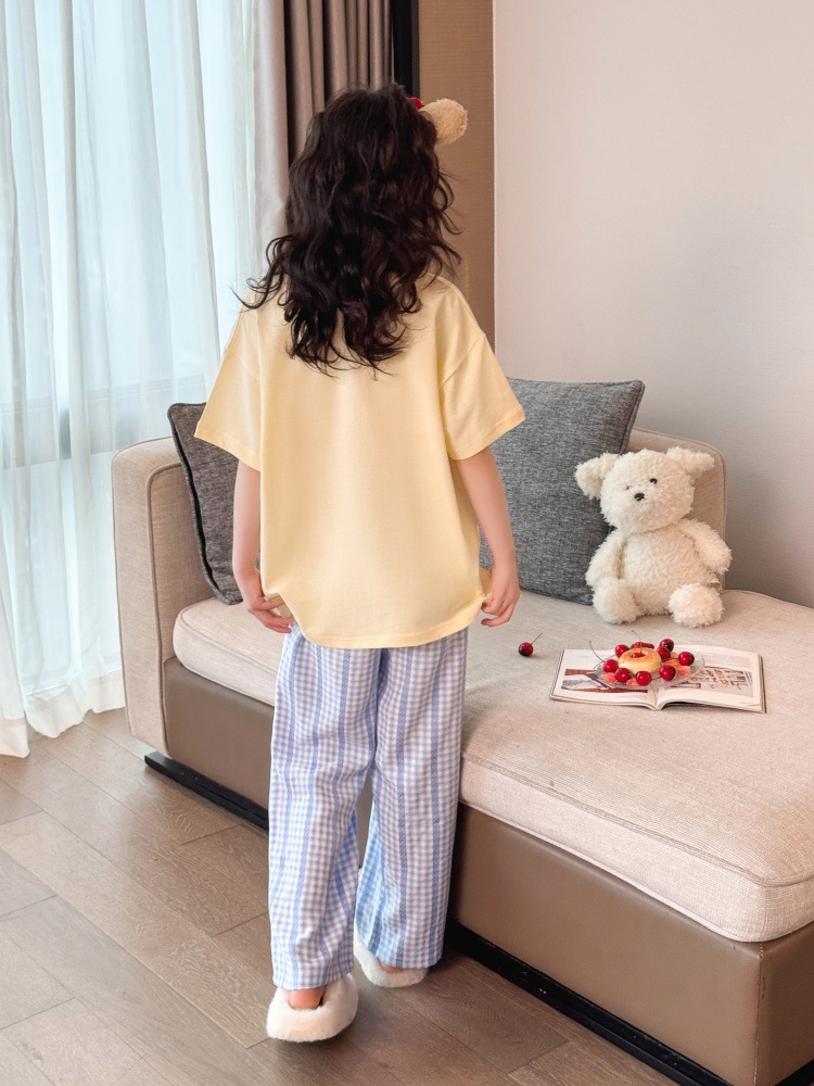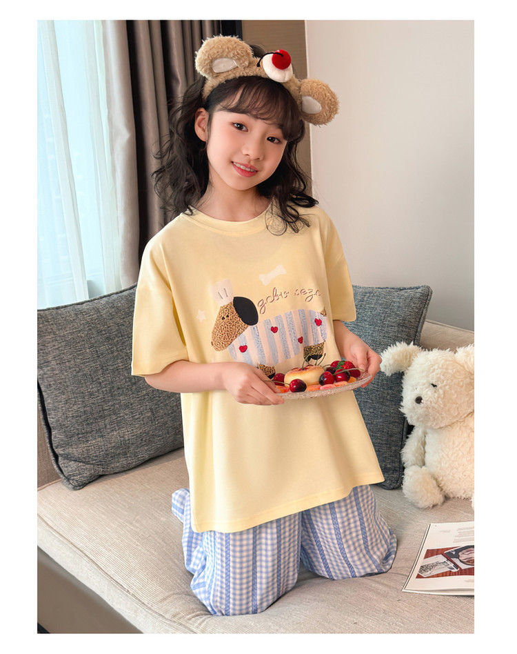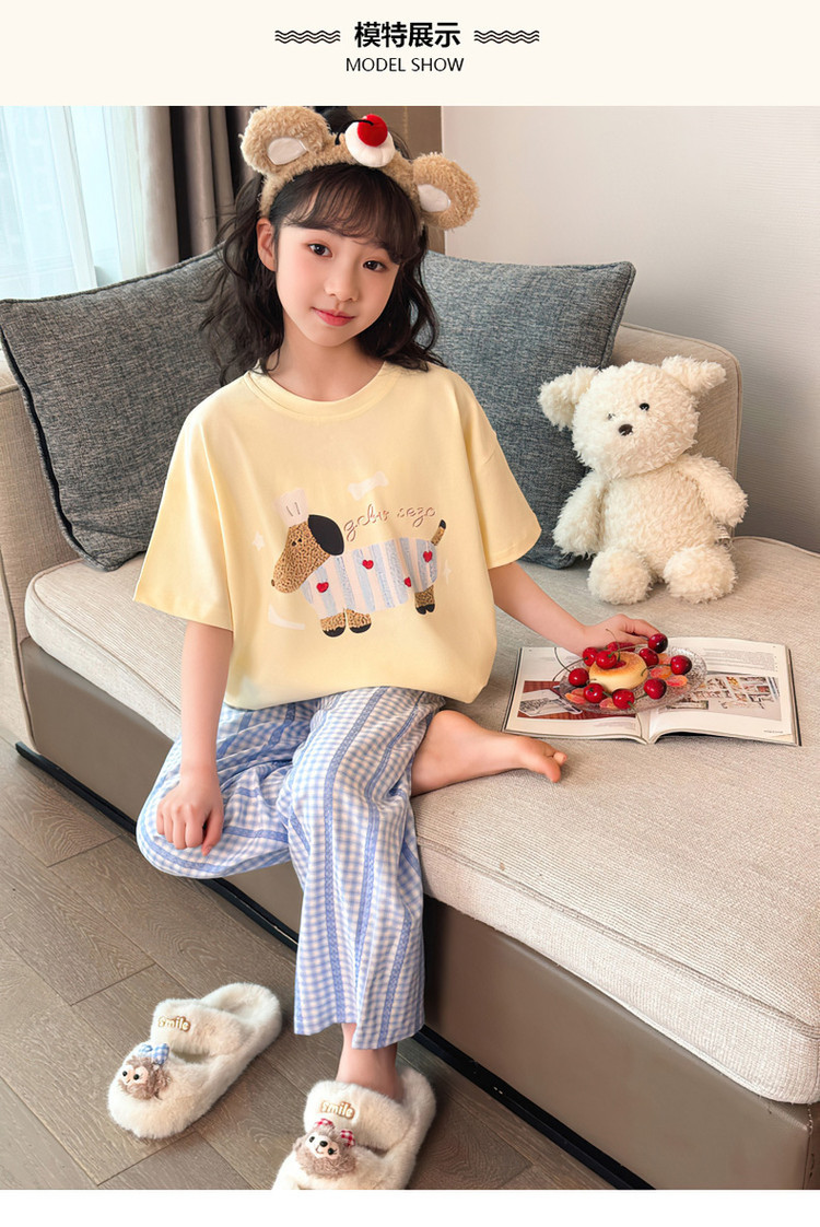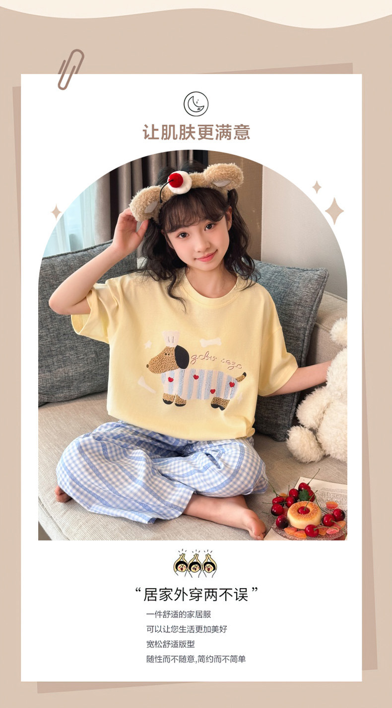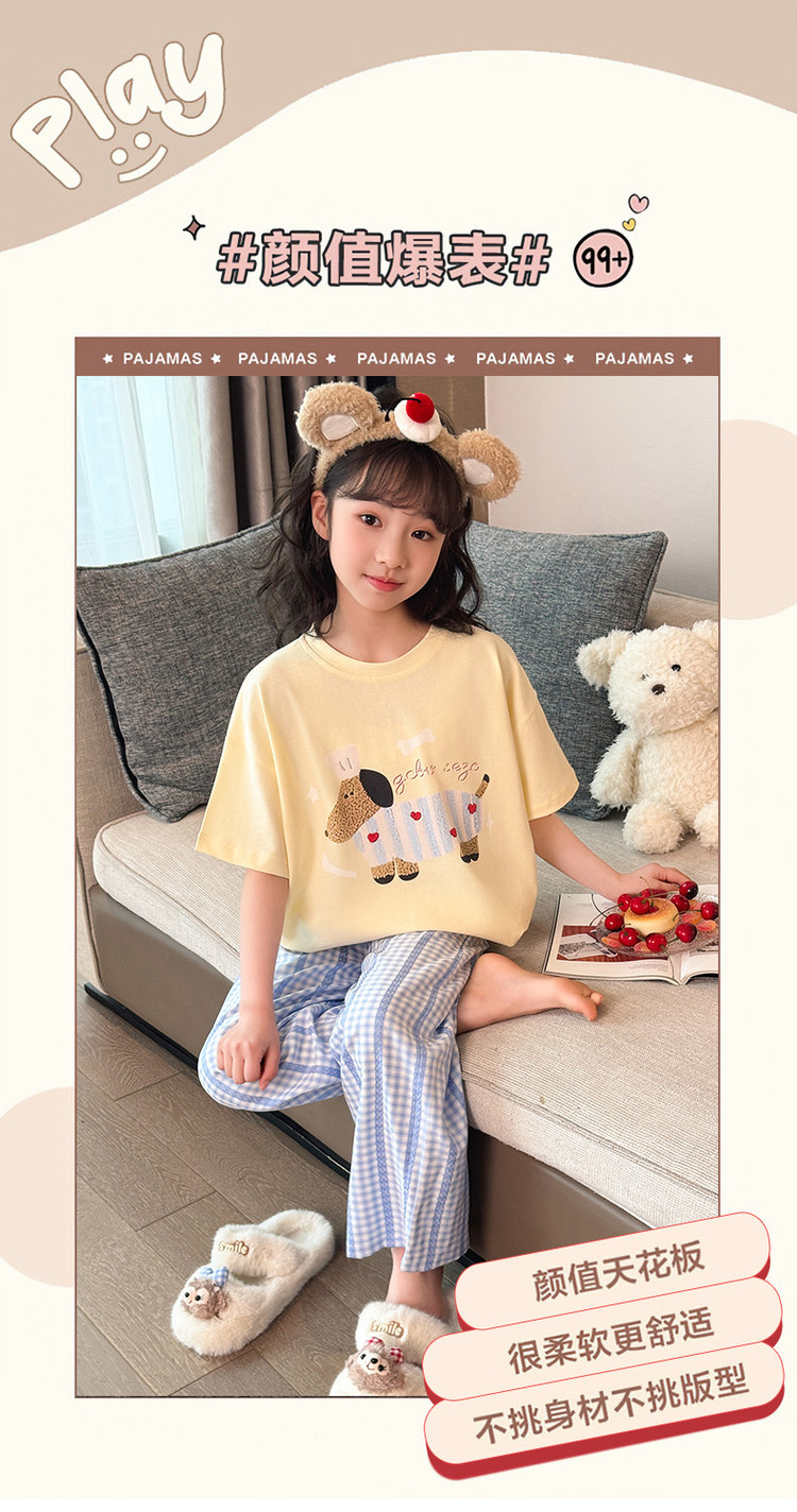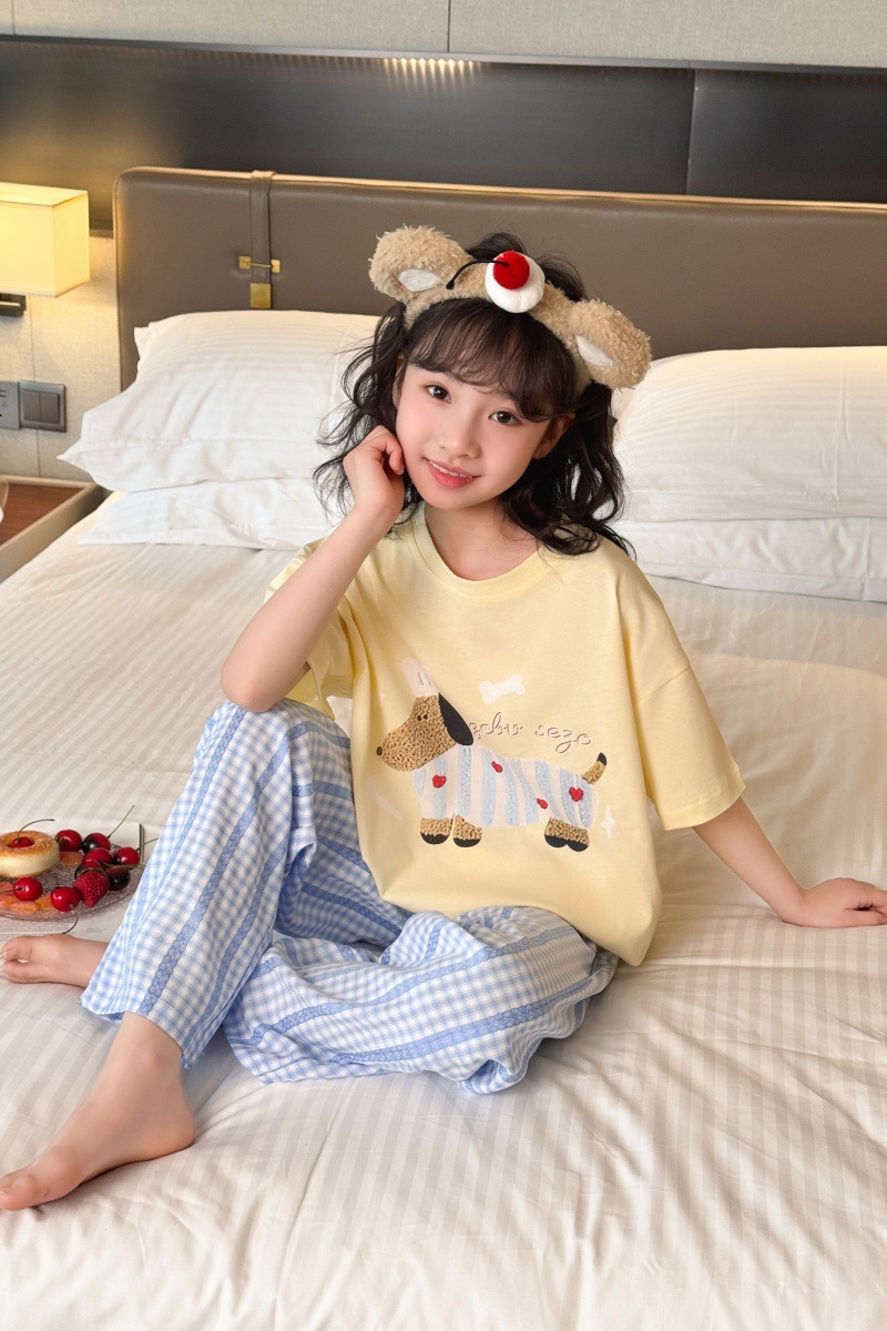 소녀 반팔 만화 잠옷 바지 세트 여름 큰 아이들 귀여운 겉옷 캐주얼 느슨한 집 옷 도매스토어 가기