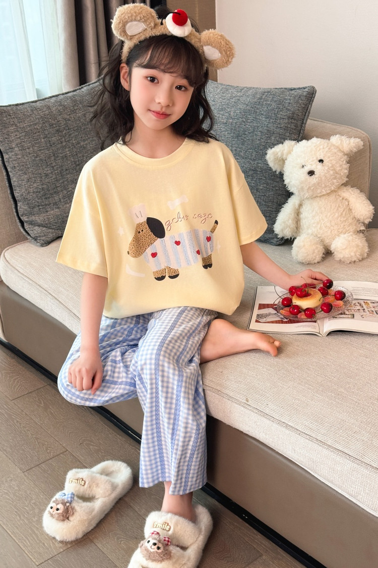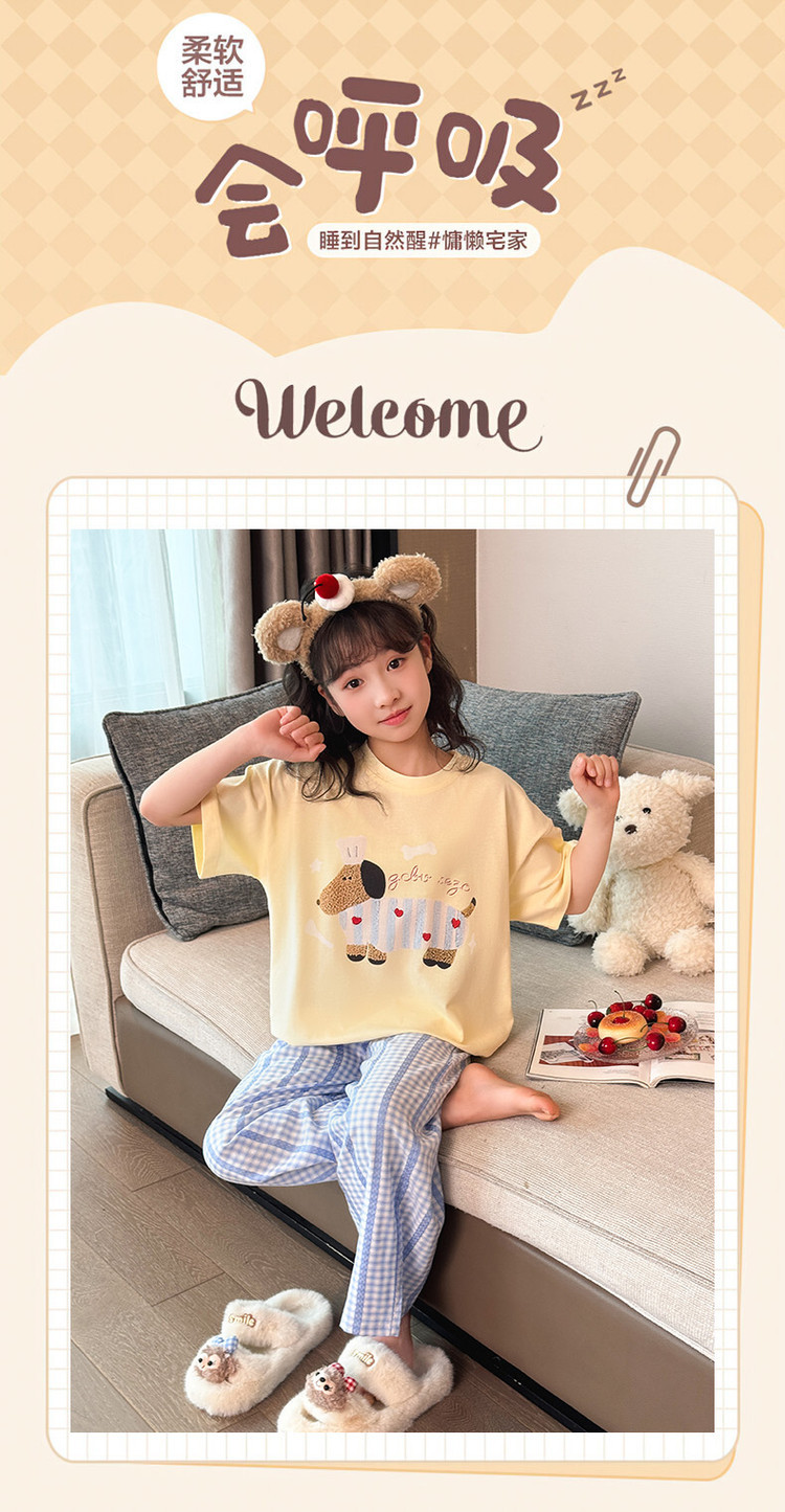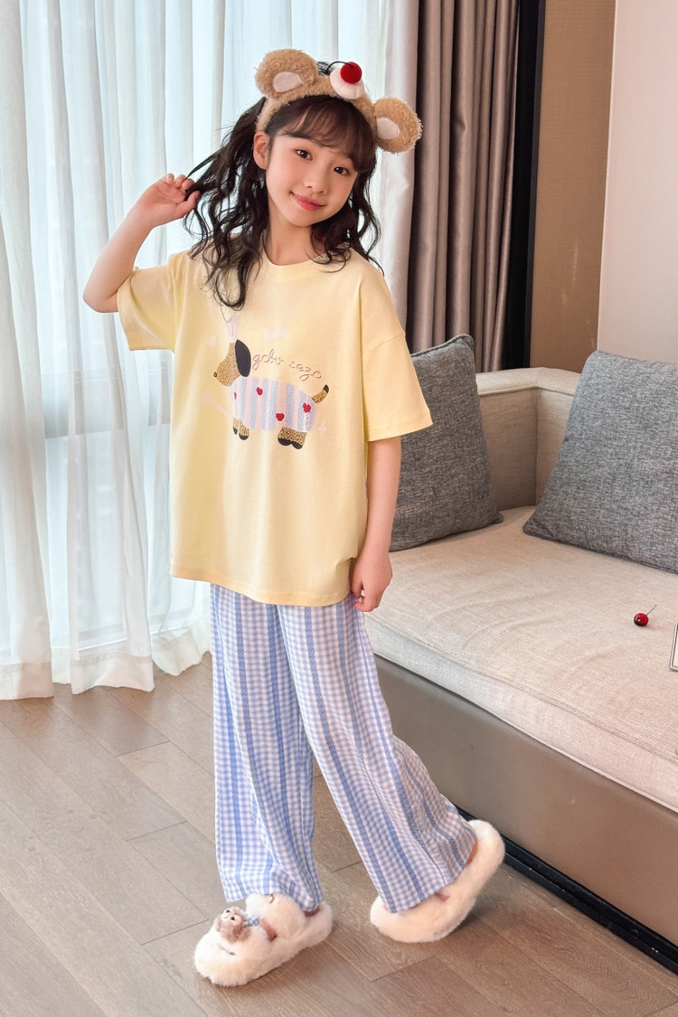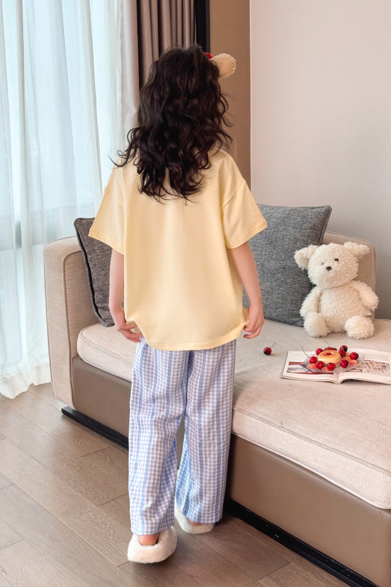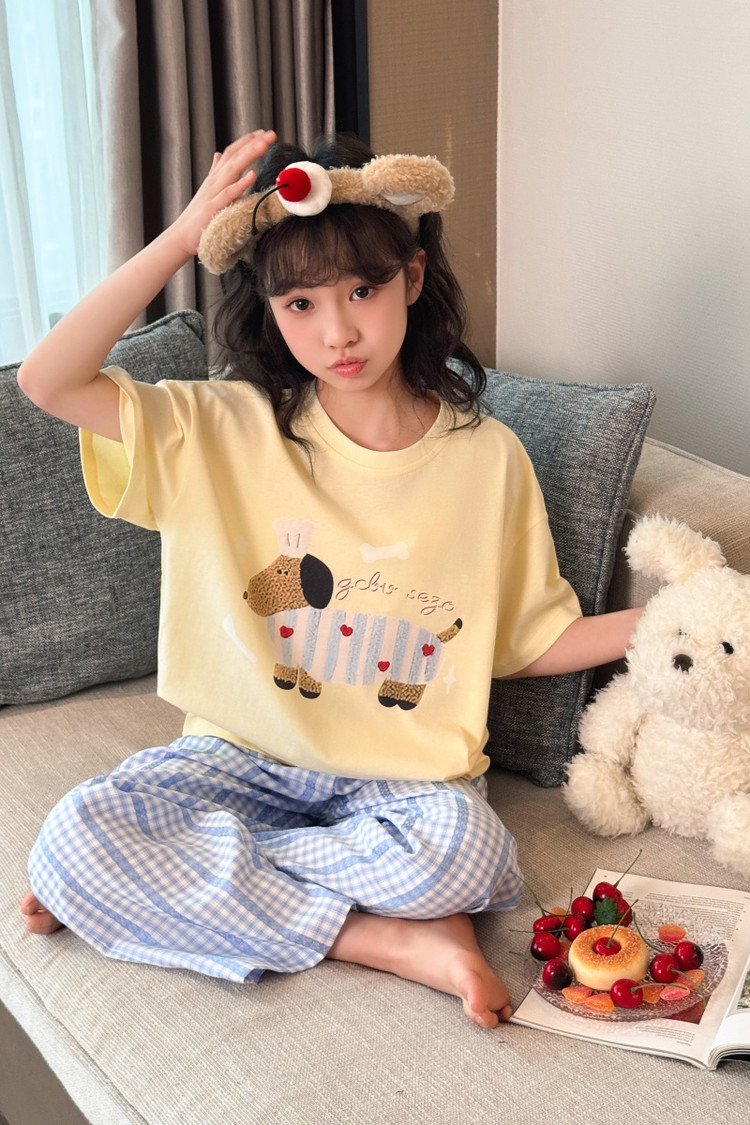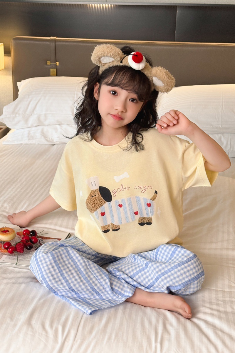 소녀 반팔 만화 잠옷 바지 세트 여름 큰 아이들 귀여운 겉옷 캐주얼 느슨한 집 옷 도매스토어 가기