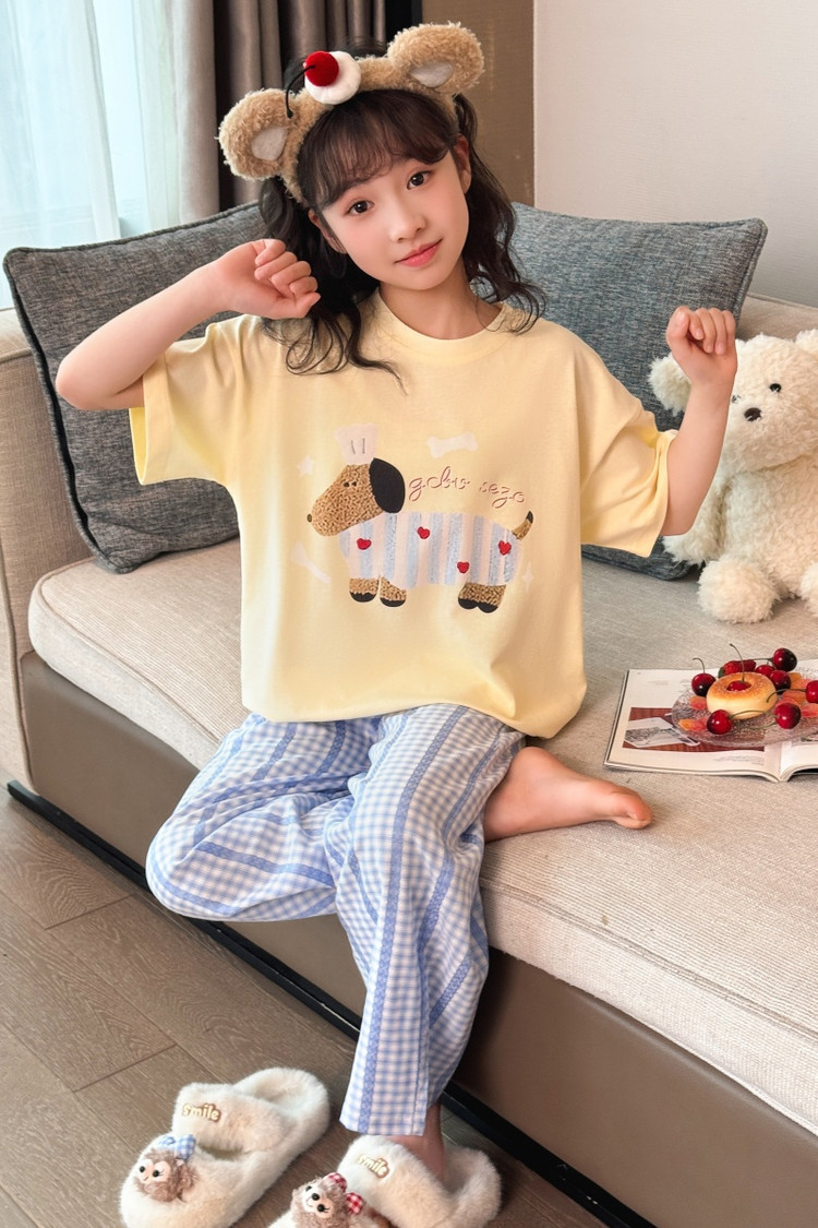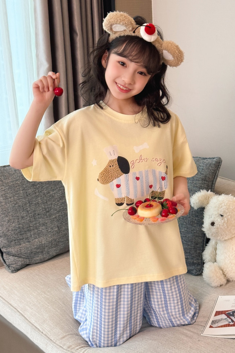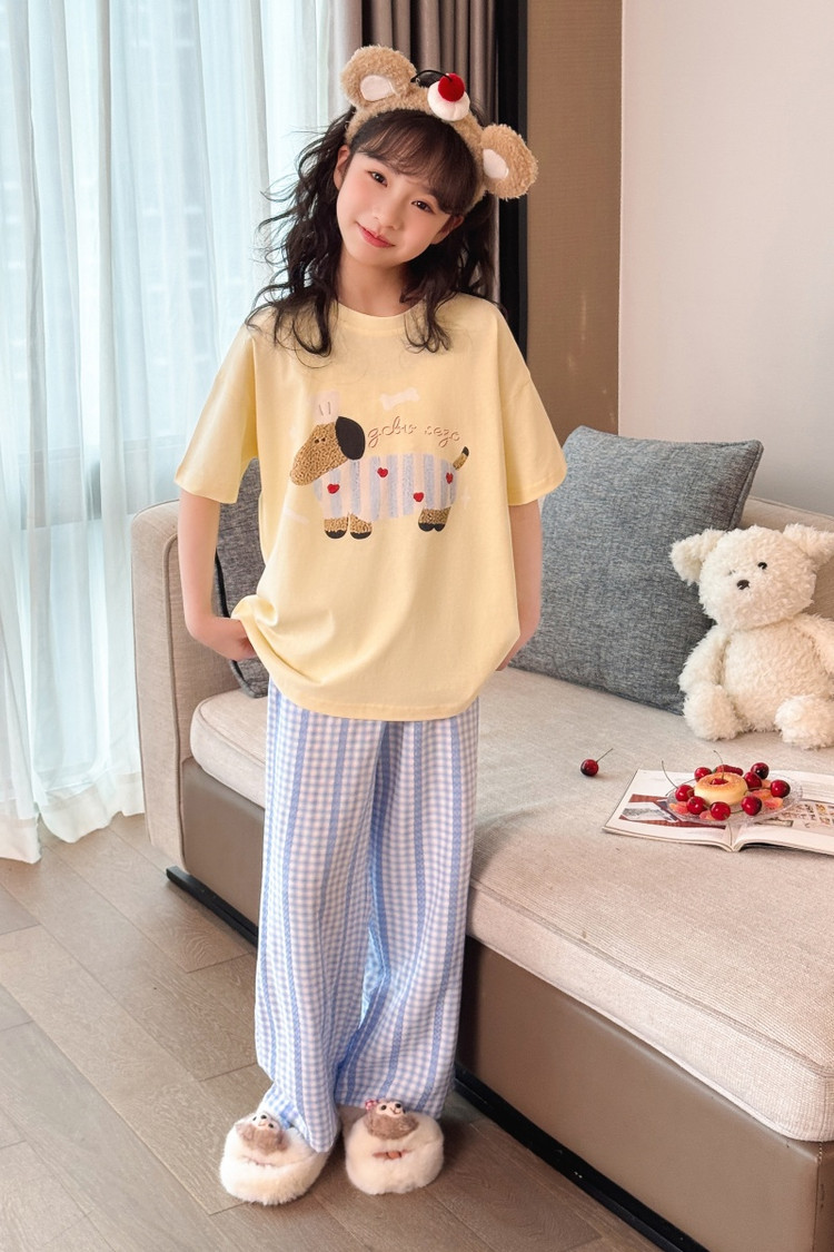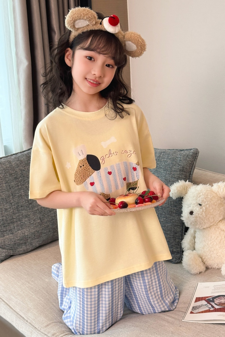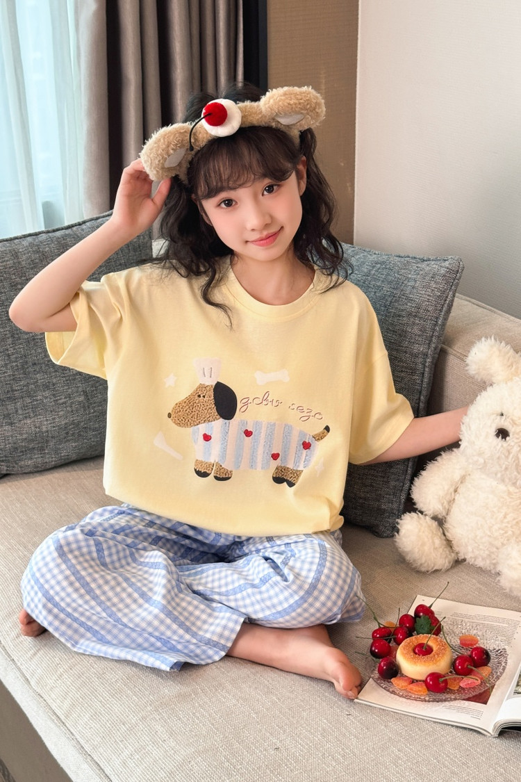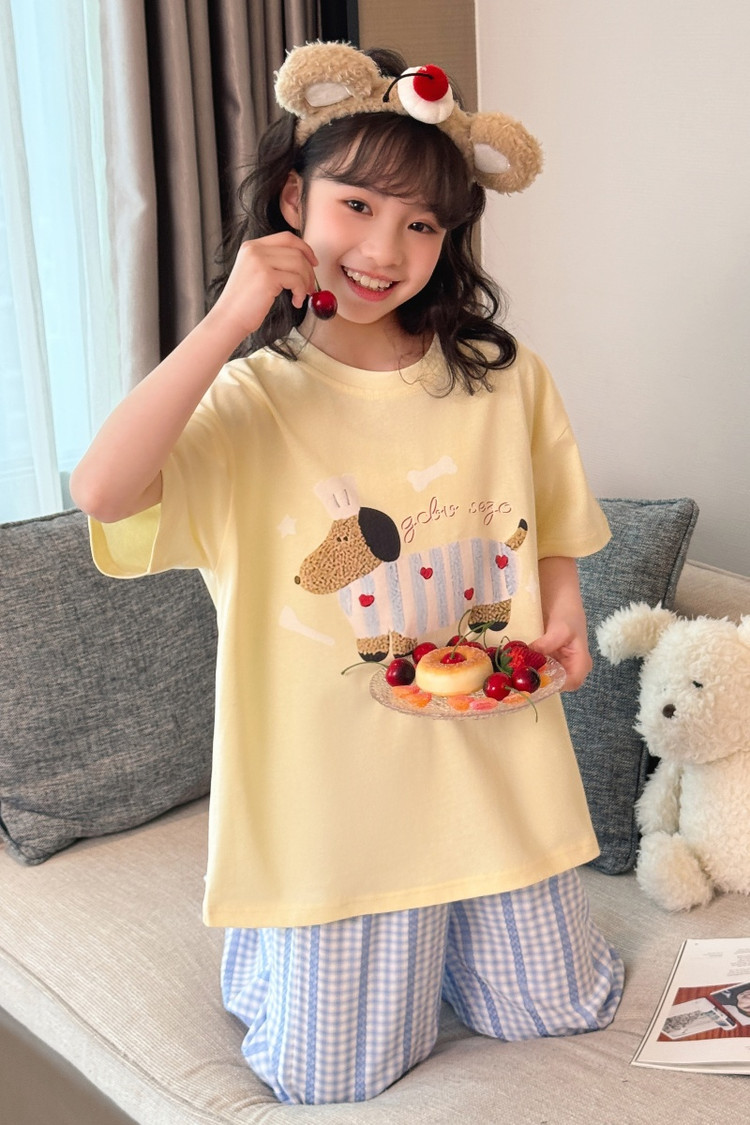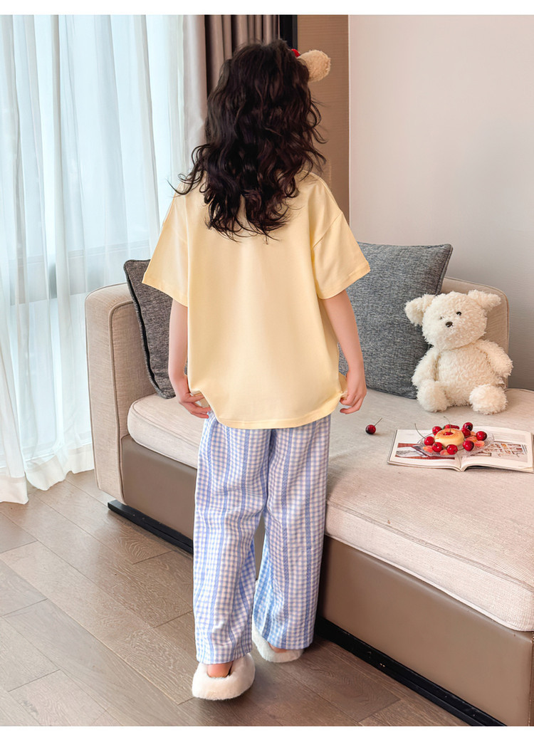 소녀 반팔 만화 잠옷 바지 세트 여름 큰 아이들 귀여운 겉옷 캐주얼 느슨한 집 옷 도매스토어 가기