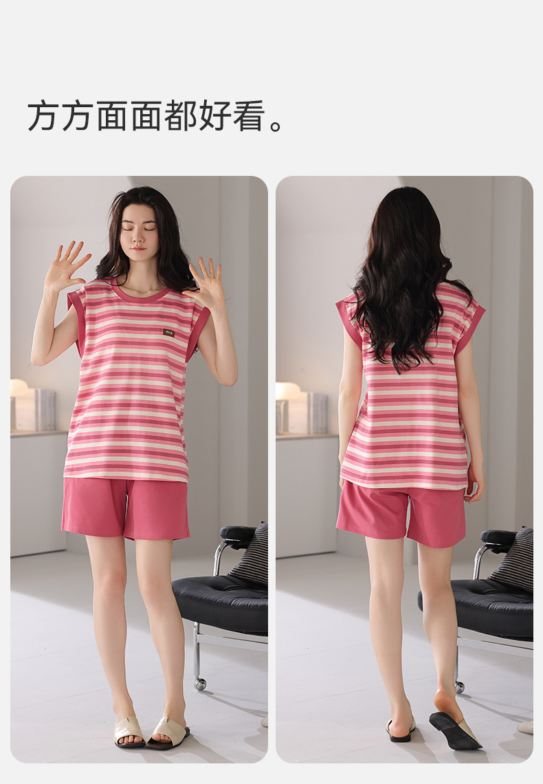 가슴 패드가 있는 조절 가능한 민소매 반바지 한국식 여성용 여름 순면 잠옷, 귀엽고 큰 사이즈, 집 밖에서 입을 수 있는 옷스토어 가기