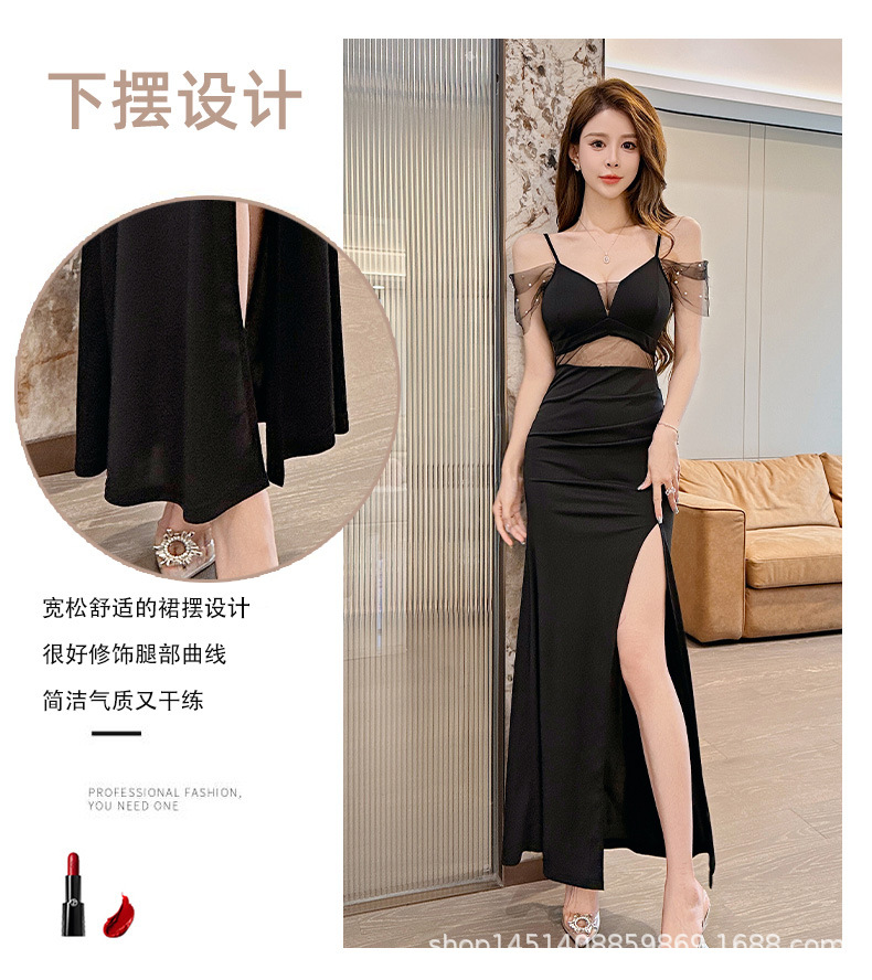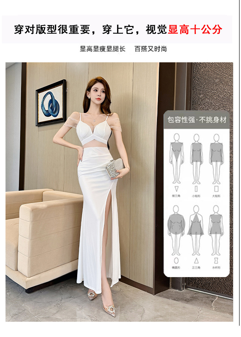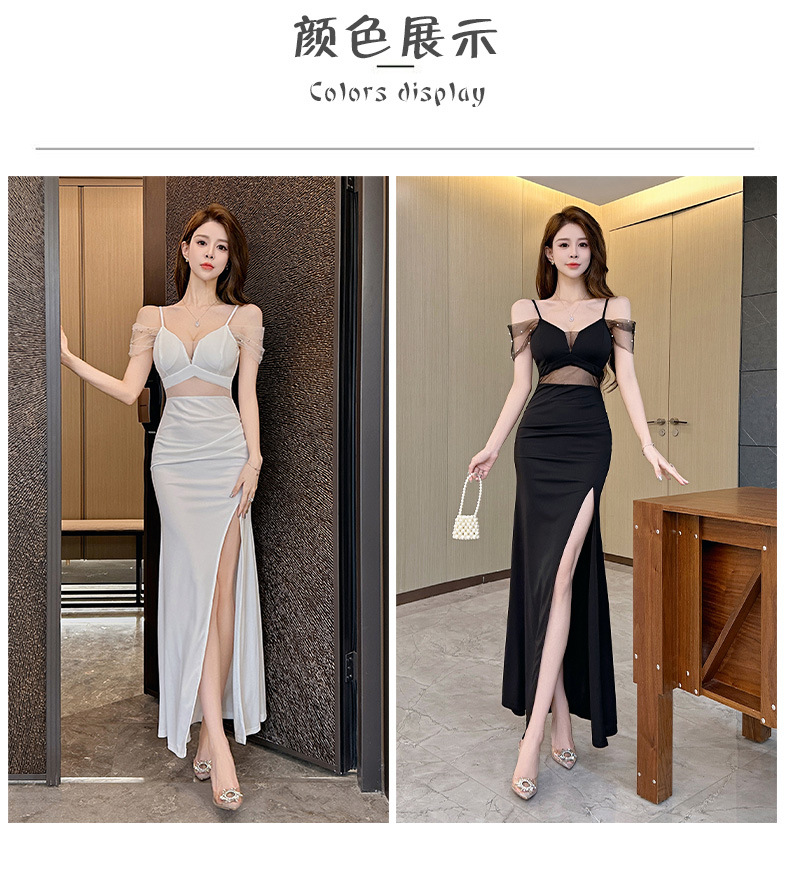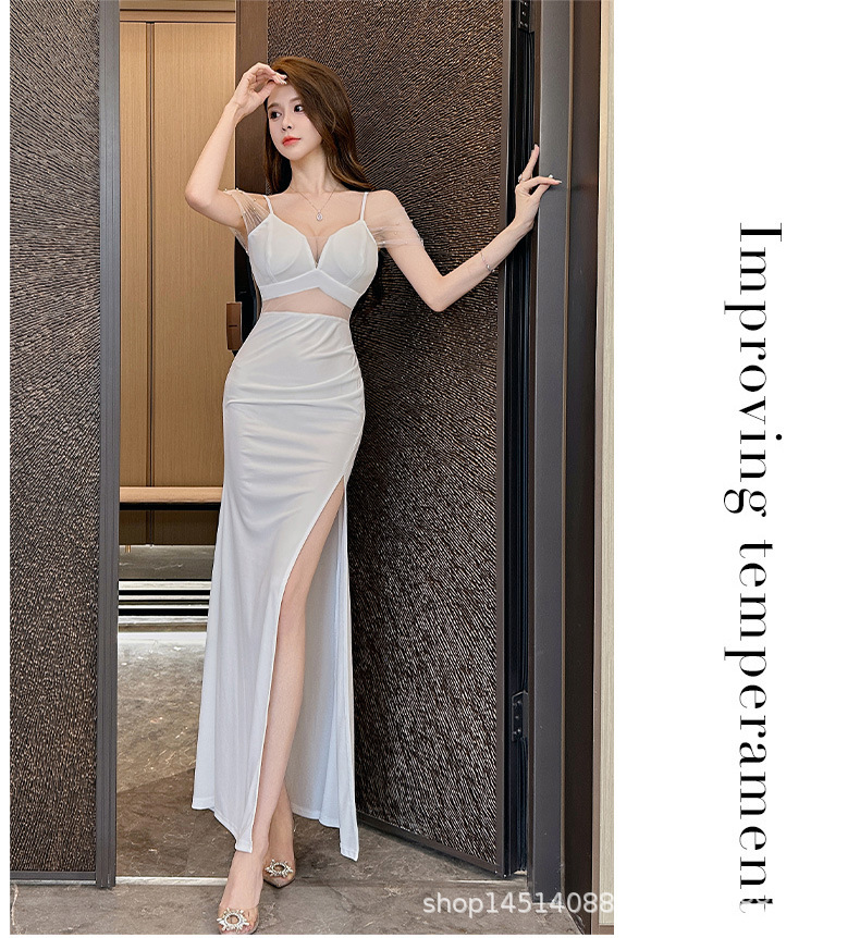 우아하고 슬림한 나이트클럽 여성복, 여성스러운 로우컷 힙커버 딥V 슬리밍 서스펜더 드레스
