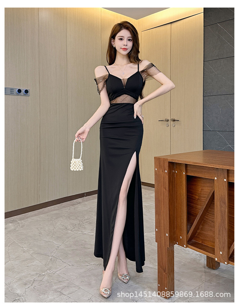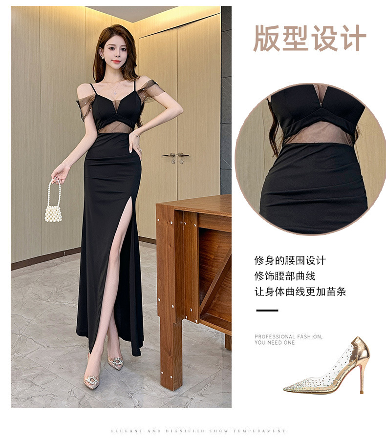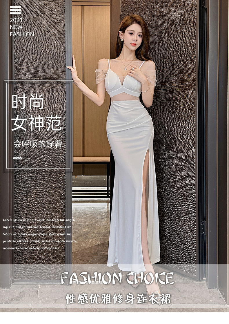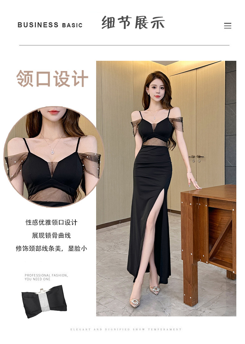 우아하고 슬림한 나이트클럽 여성복, 여성스러운 로우컷 힙커버 딥V 슬리밍 서스펜더 드레스