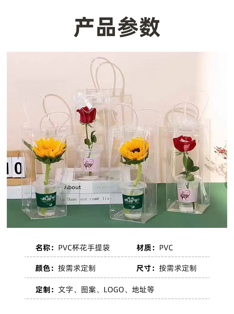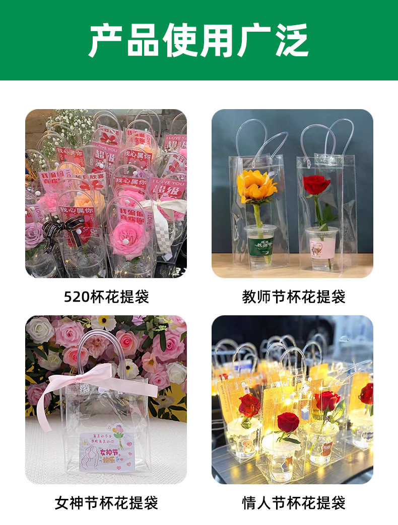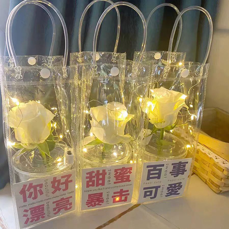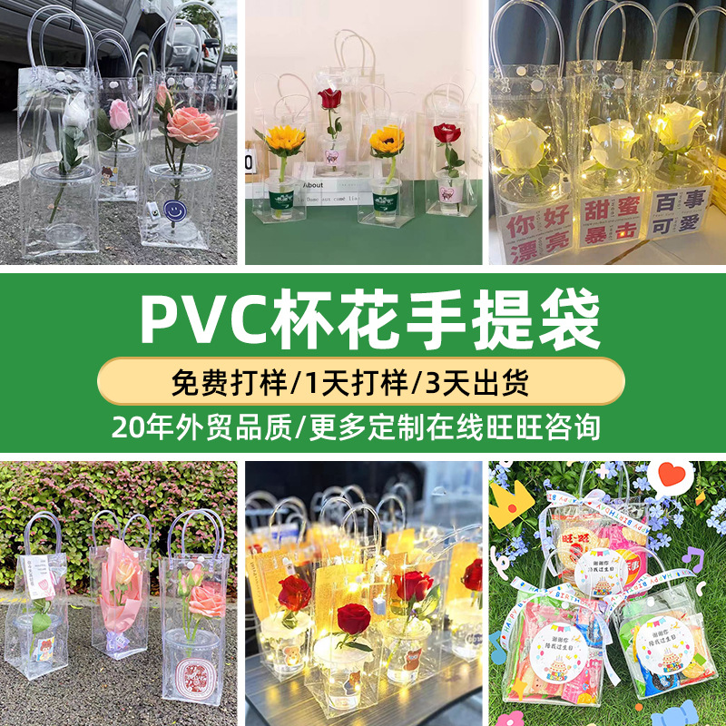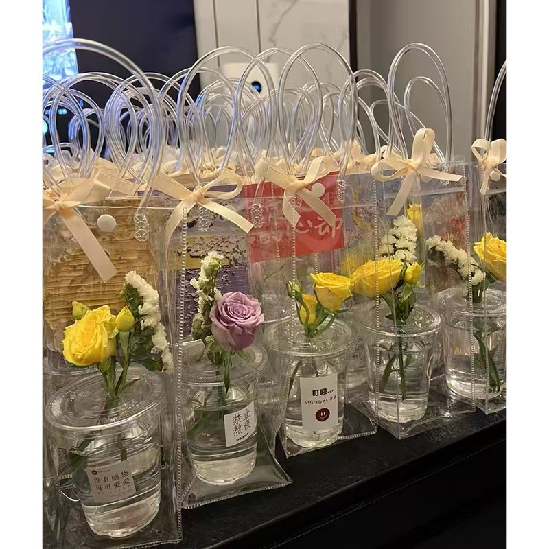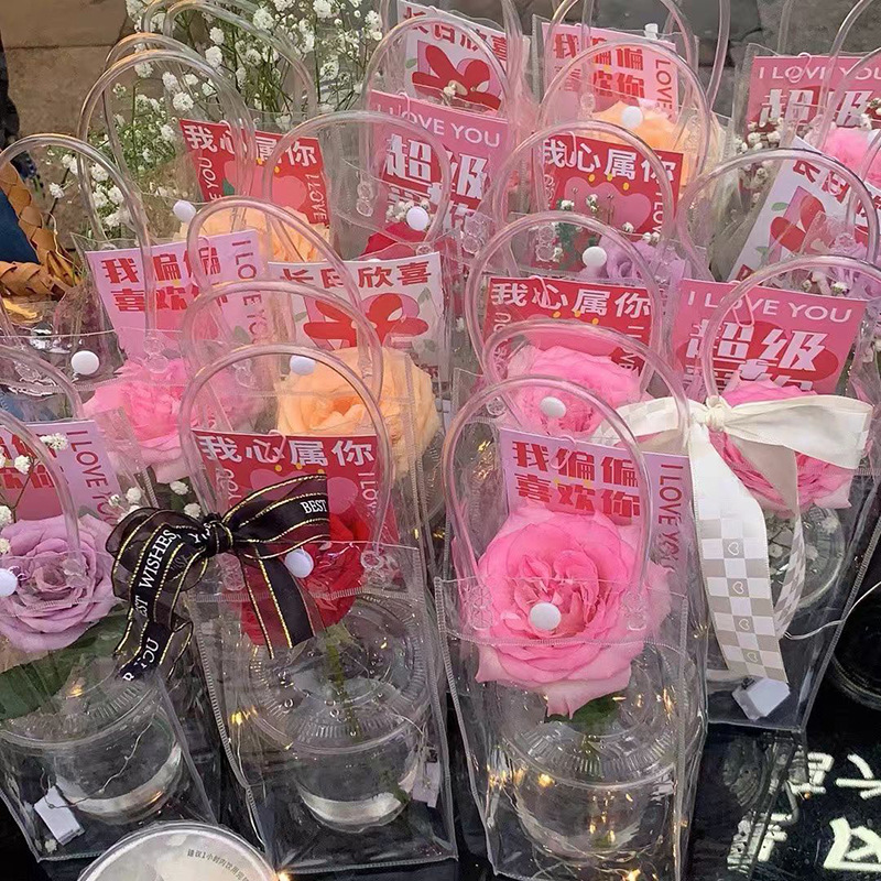 높은 투명한 PVC 핸드백 인터넷 유명한 Ins 스타일 꽃 가방 발렌타인 데이 Tanabata 520 Stall Flowers DIY