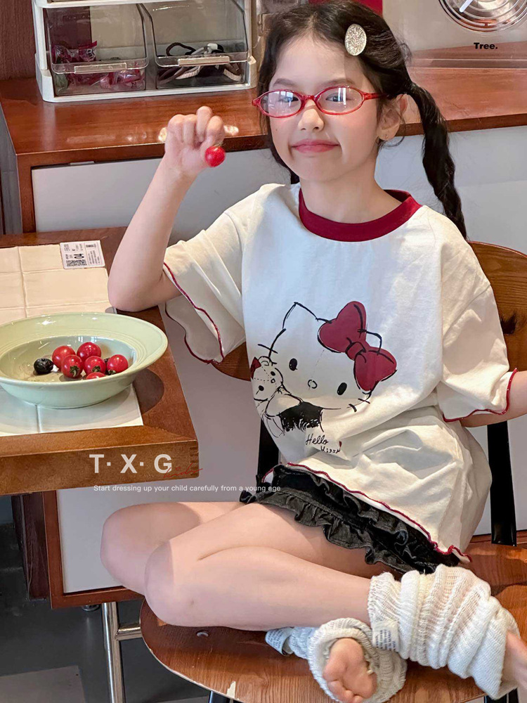 Tian Xiguo Girls 긴팔 티셔츠 어린이 최고 여름 2025 새로운 스타일 큰 어린이 얇은 유행 소녀 옷스토어 가기