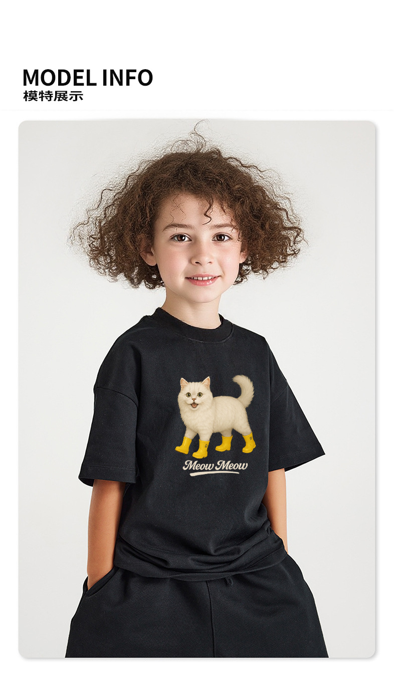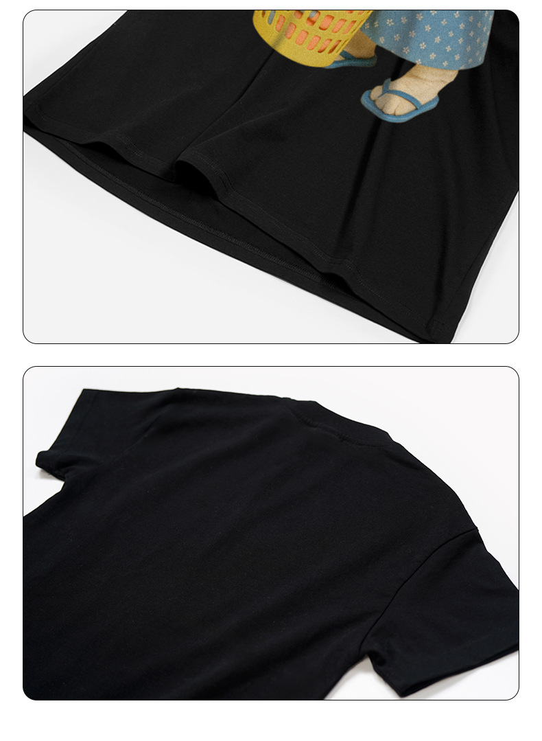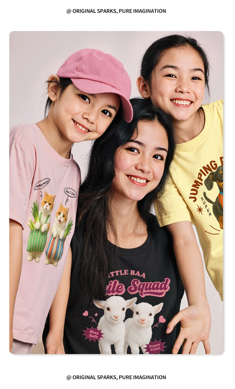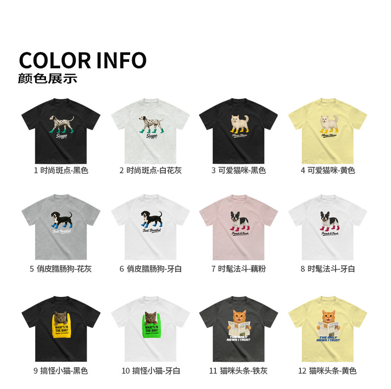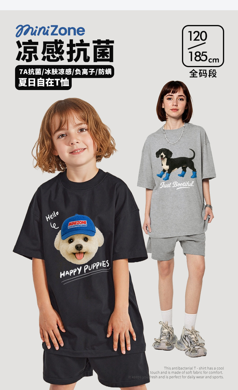 Minizone 여름 큰 어린이 반팔 무거운 면화 재미있는 탑 소년과 소녀 느슨한 만화 티셔츠 부모-자식 착용스토어 가기