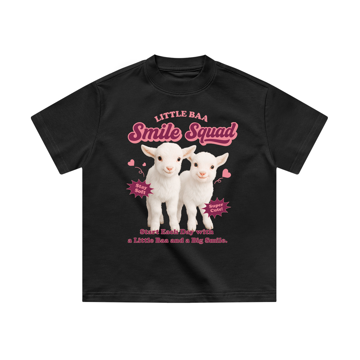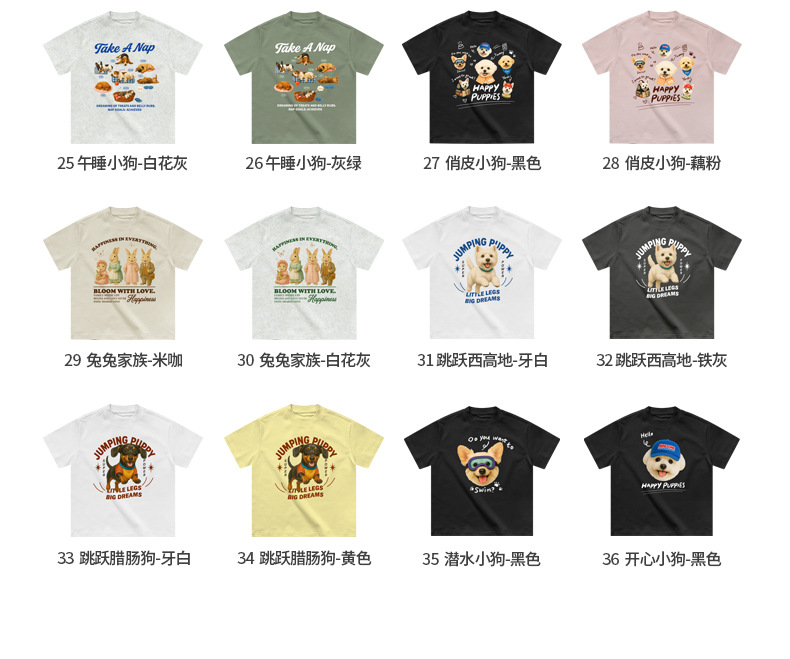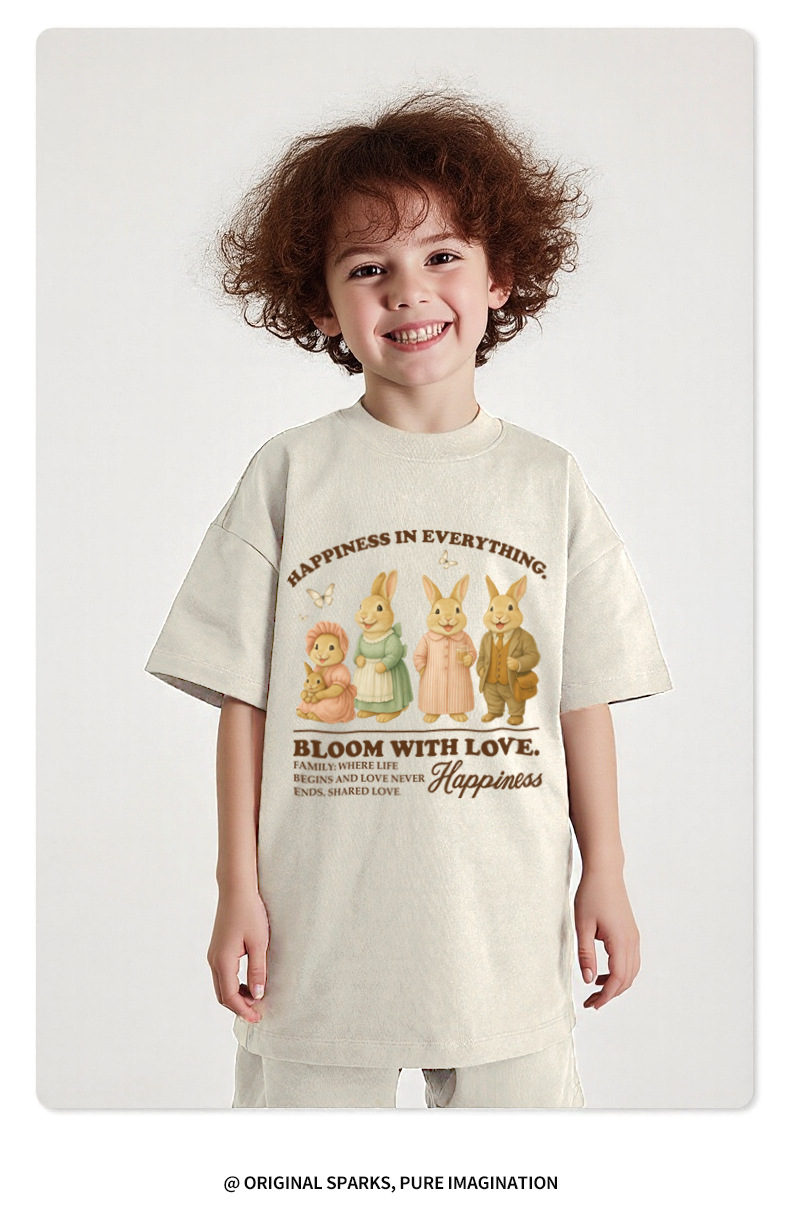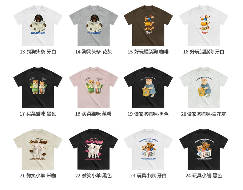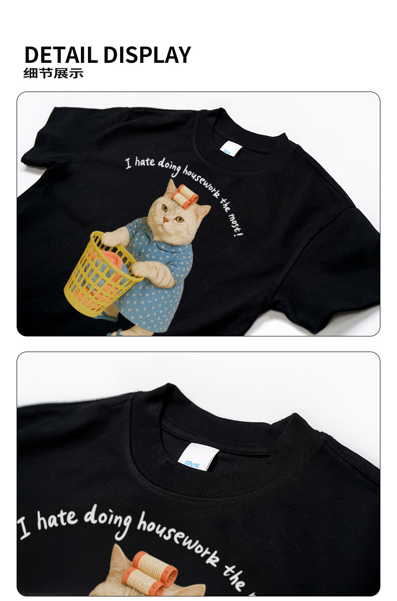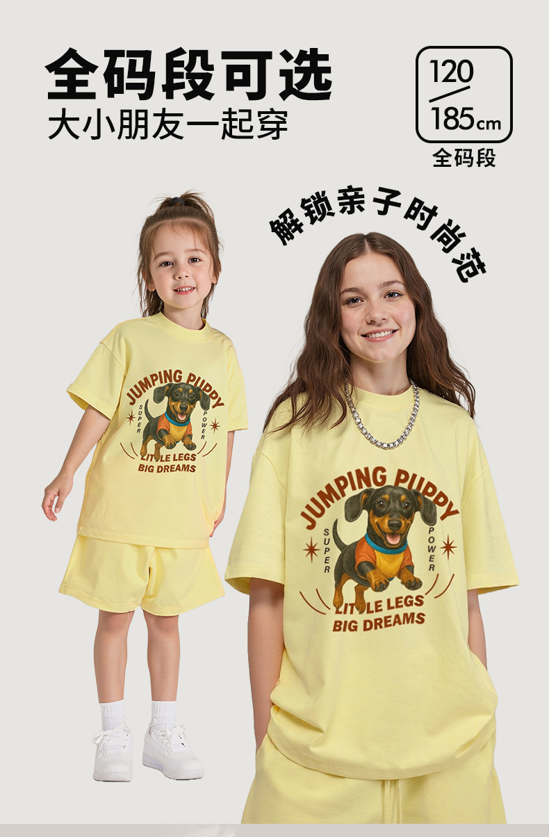Minizone 여름 큰 어린이 반팔 무거운 면화 재미있는 탑 소년과 소녀 느슨한 만화 티셔츠 부모-자식 착용스토어 가기