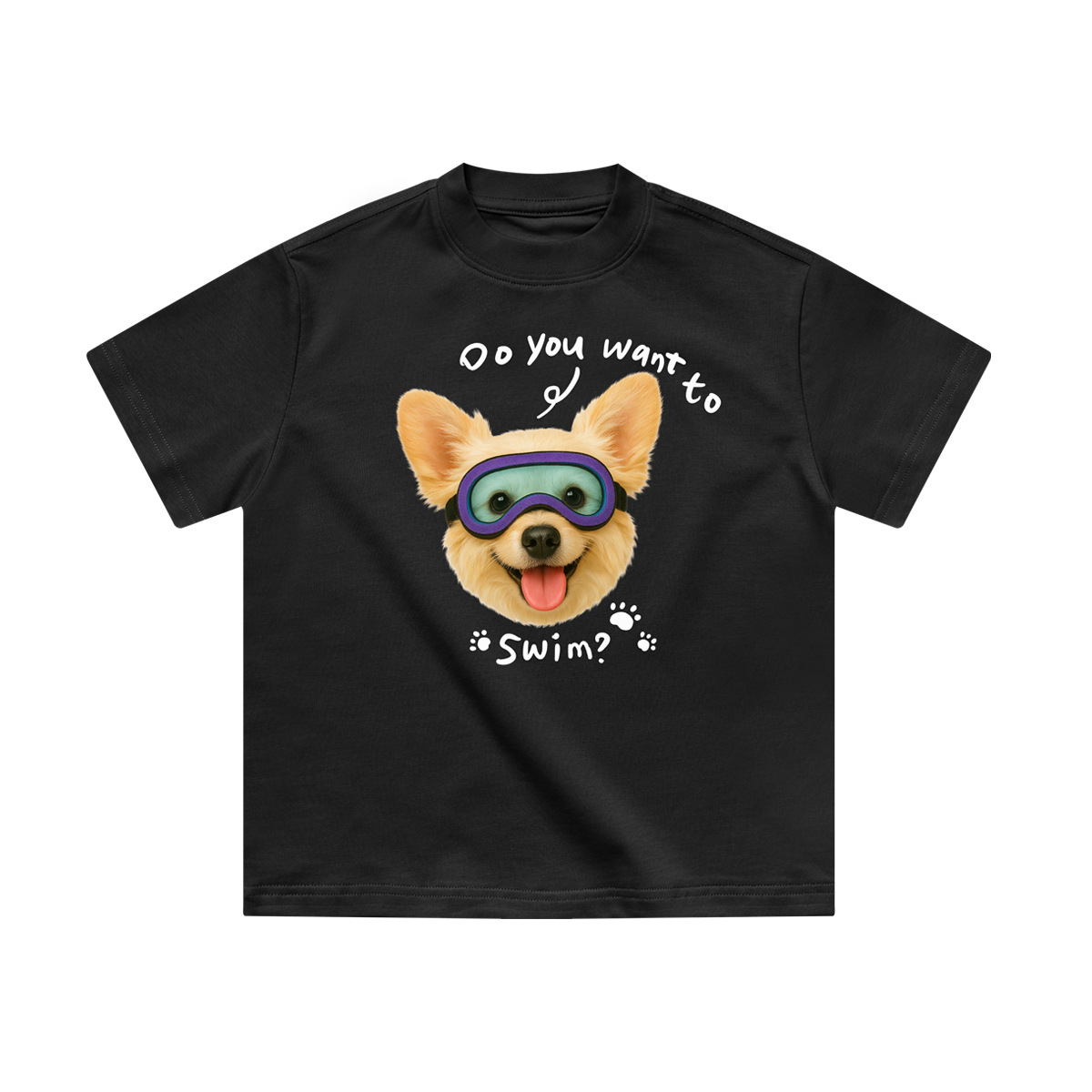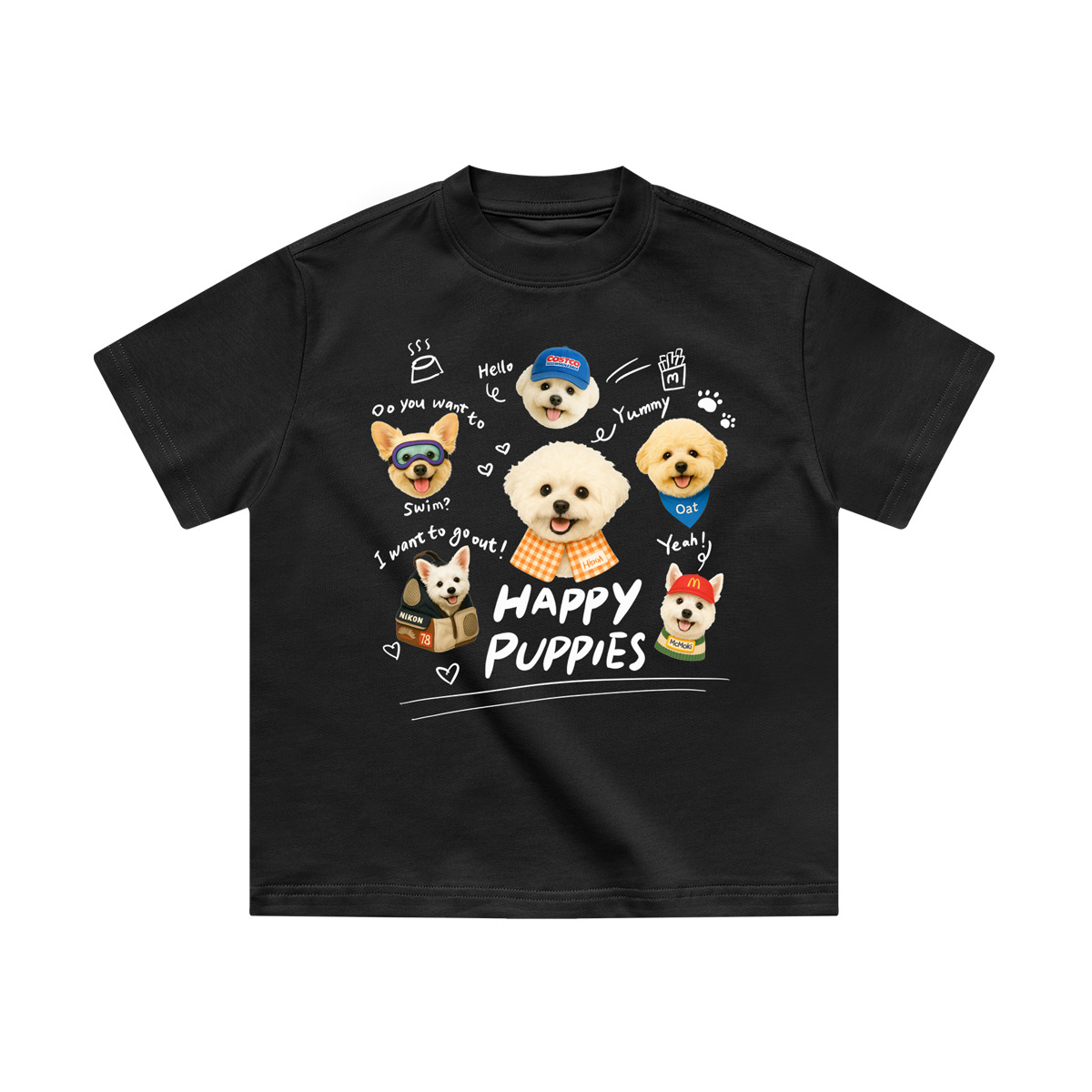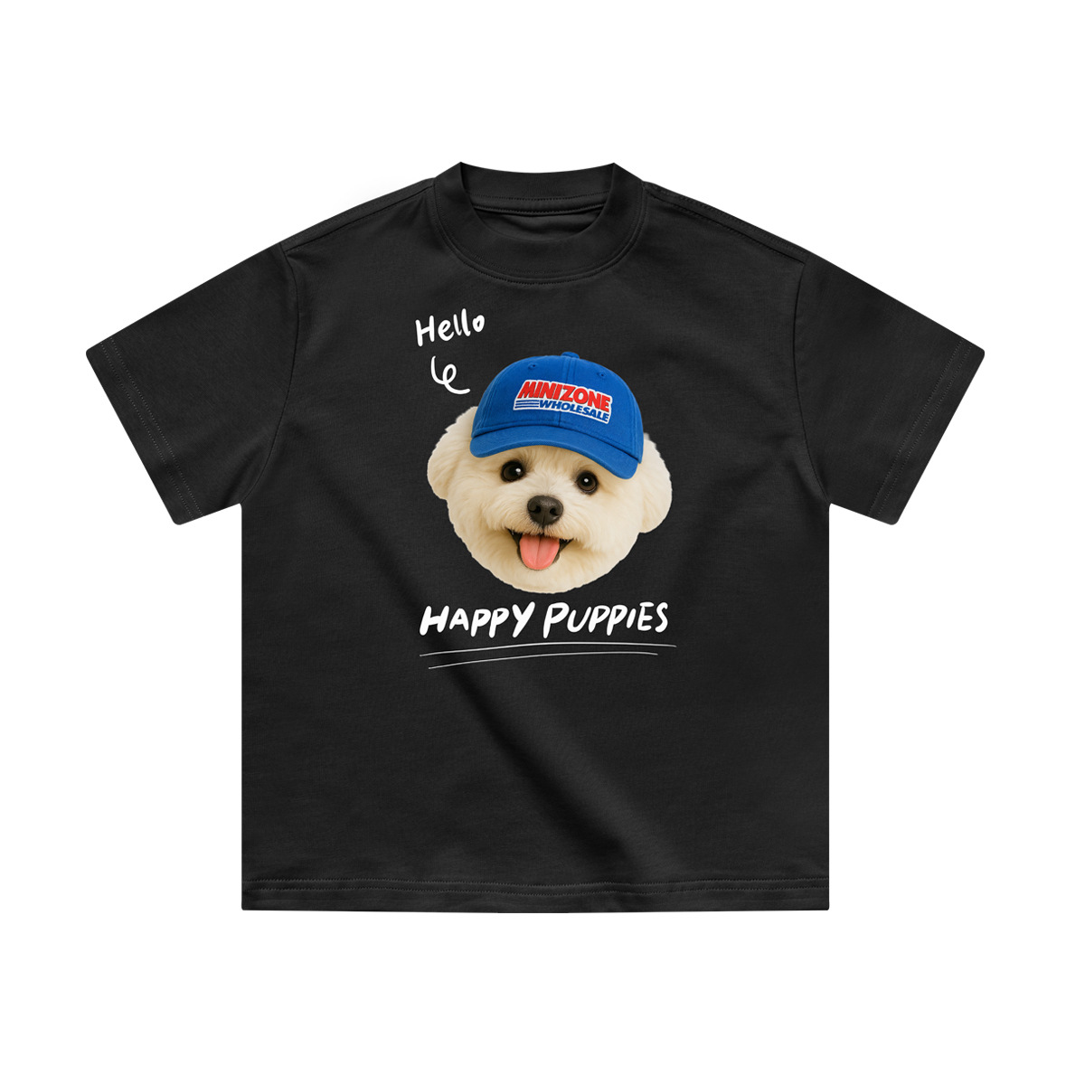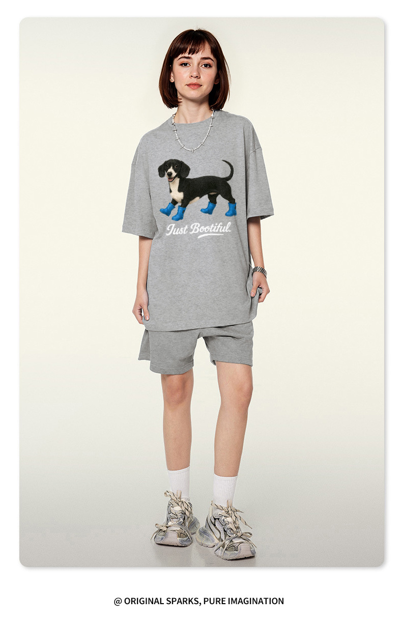 Minizone 여름 큰 어린이 반팔 무거운 면화 재미있는 탑 소년과 소녀 느슨한 만화 티셔츠 부모-자식 착용스토어 가기