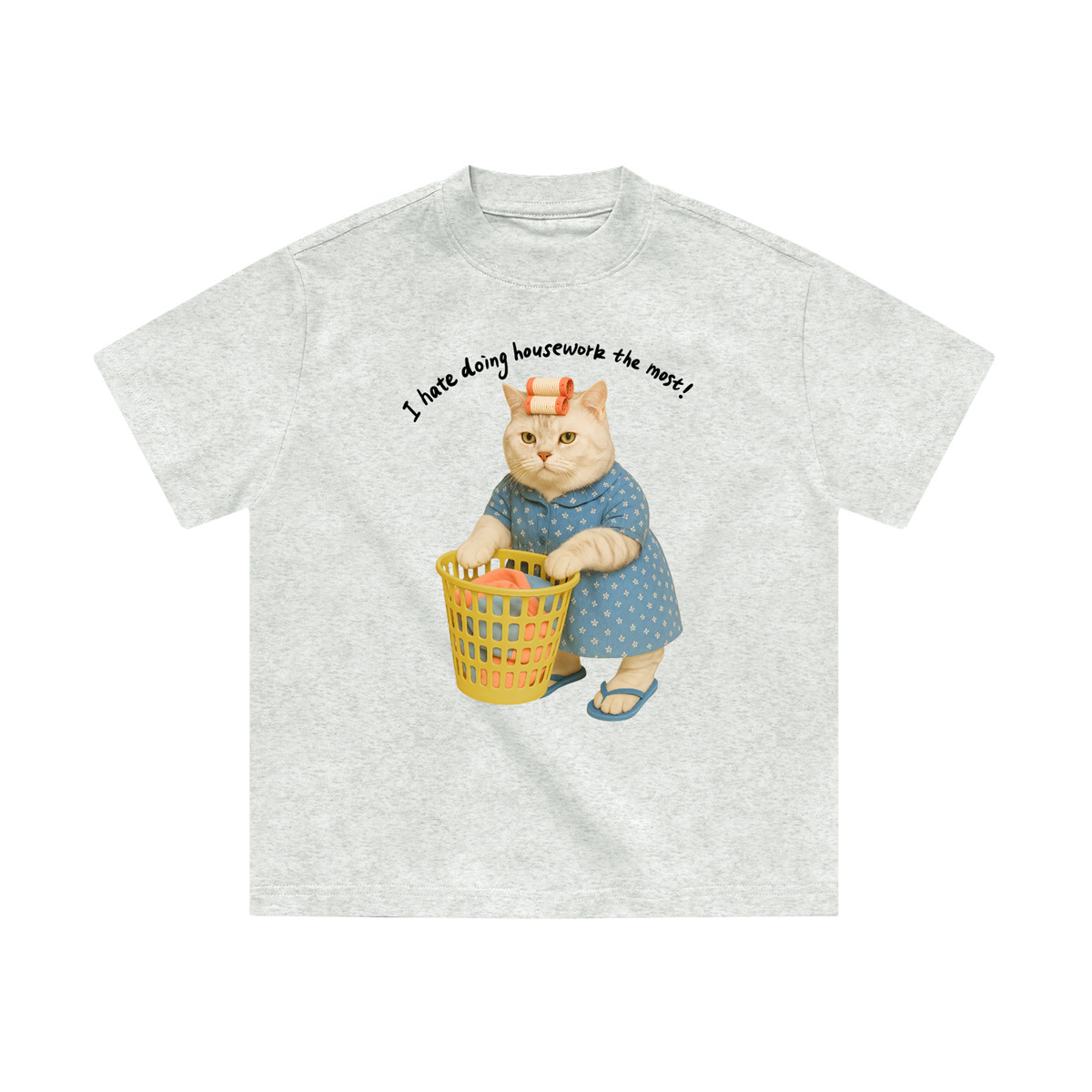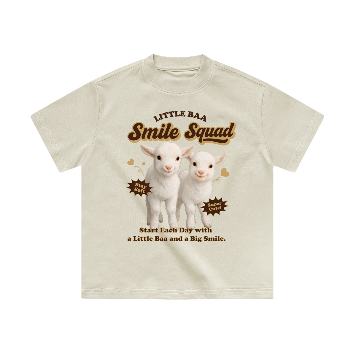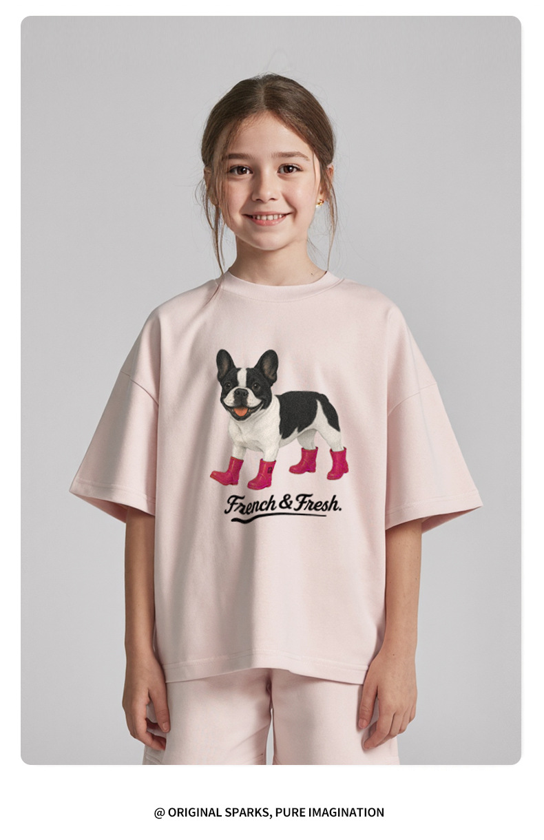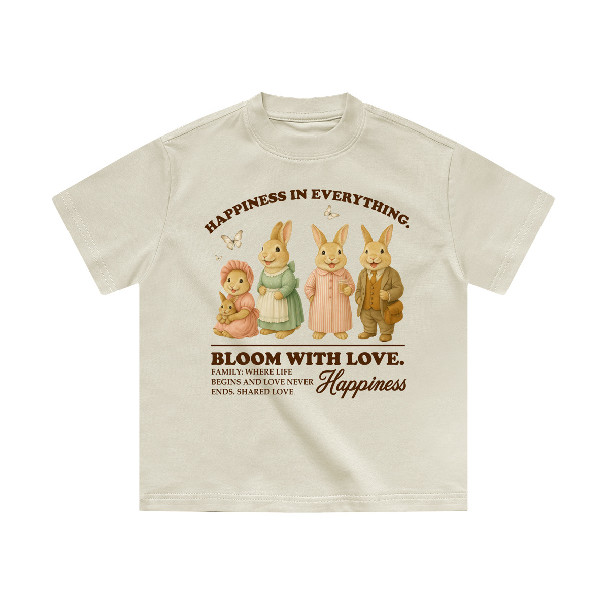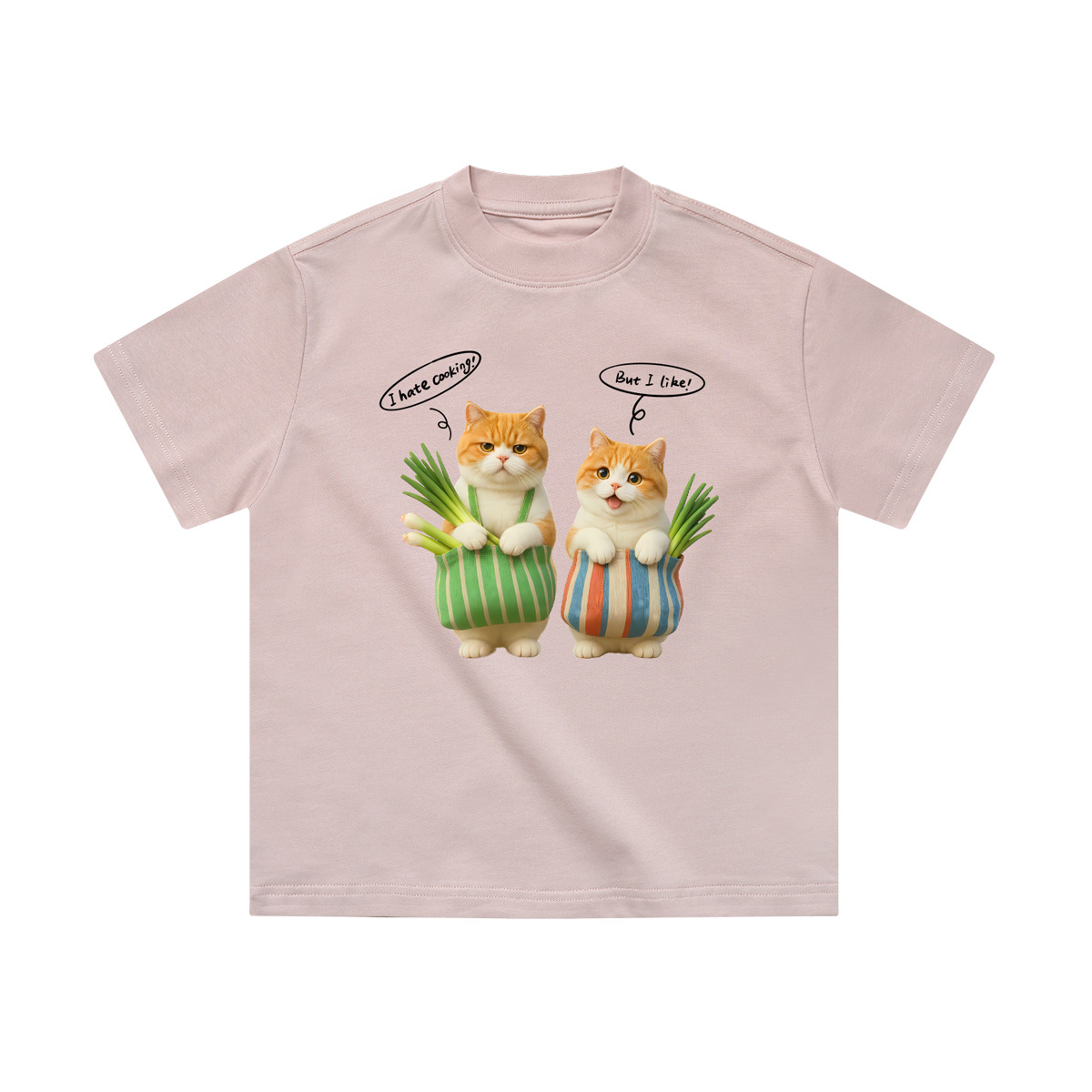 Minizone 여름 큰 어린이 반팔 무거운 면화 재미있는 탑 소년과 소녀 느슨한 만화 티셔츠 부모-자식 착용