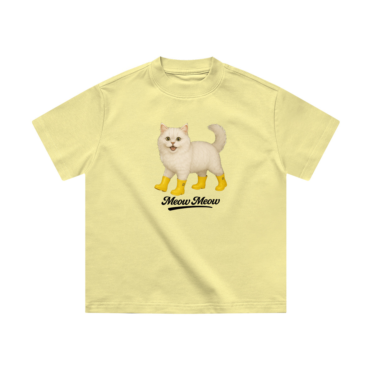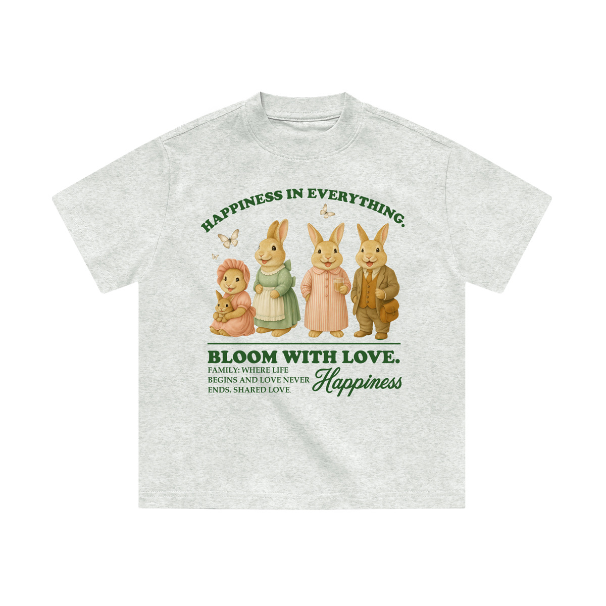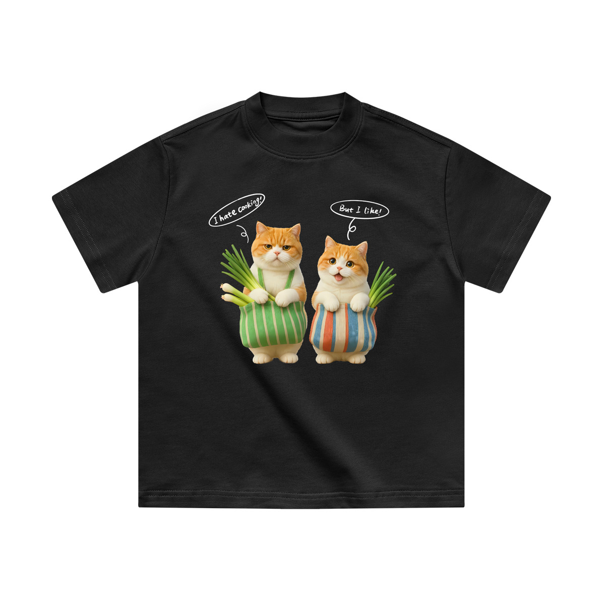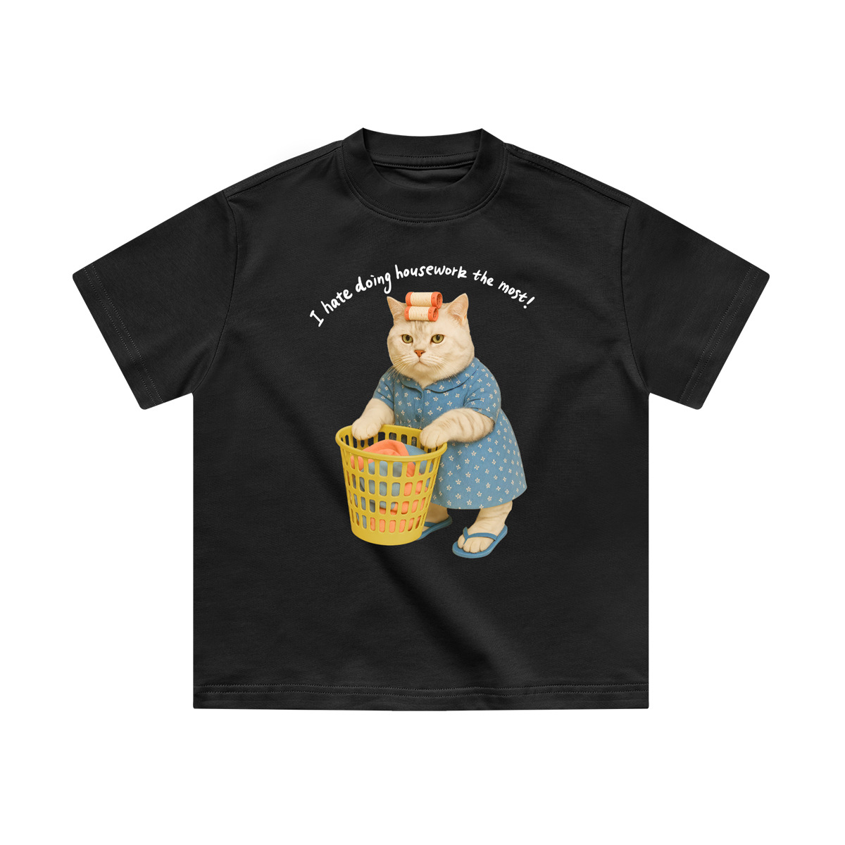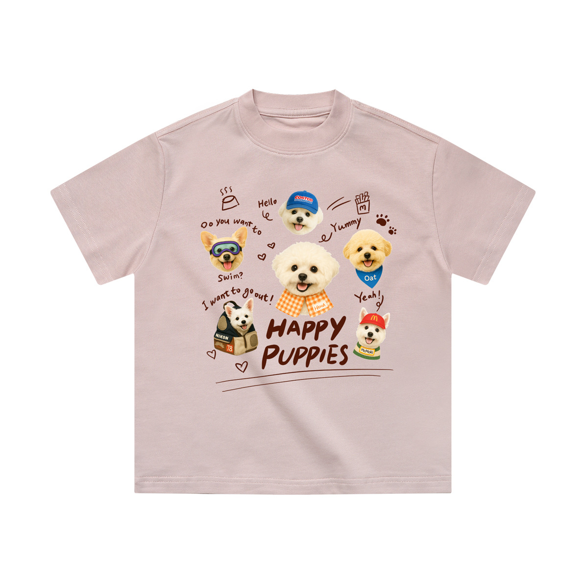 Minizone 여름 큰 어린이 반팔 무거운 면화 재미있는 탑 소년과 소녀 느슨한 만화 티셔츠 부모-자식 착용