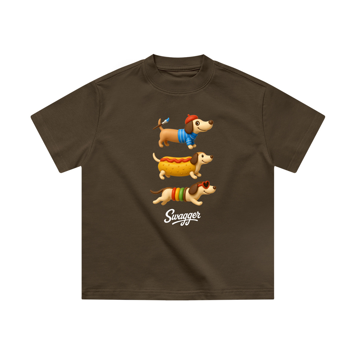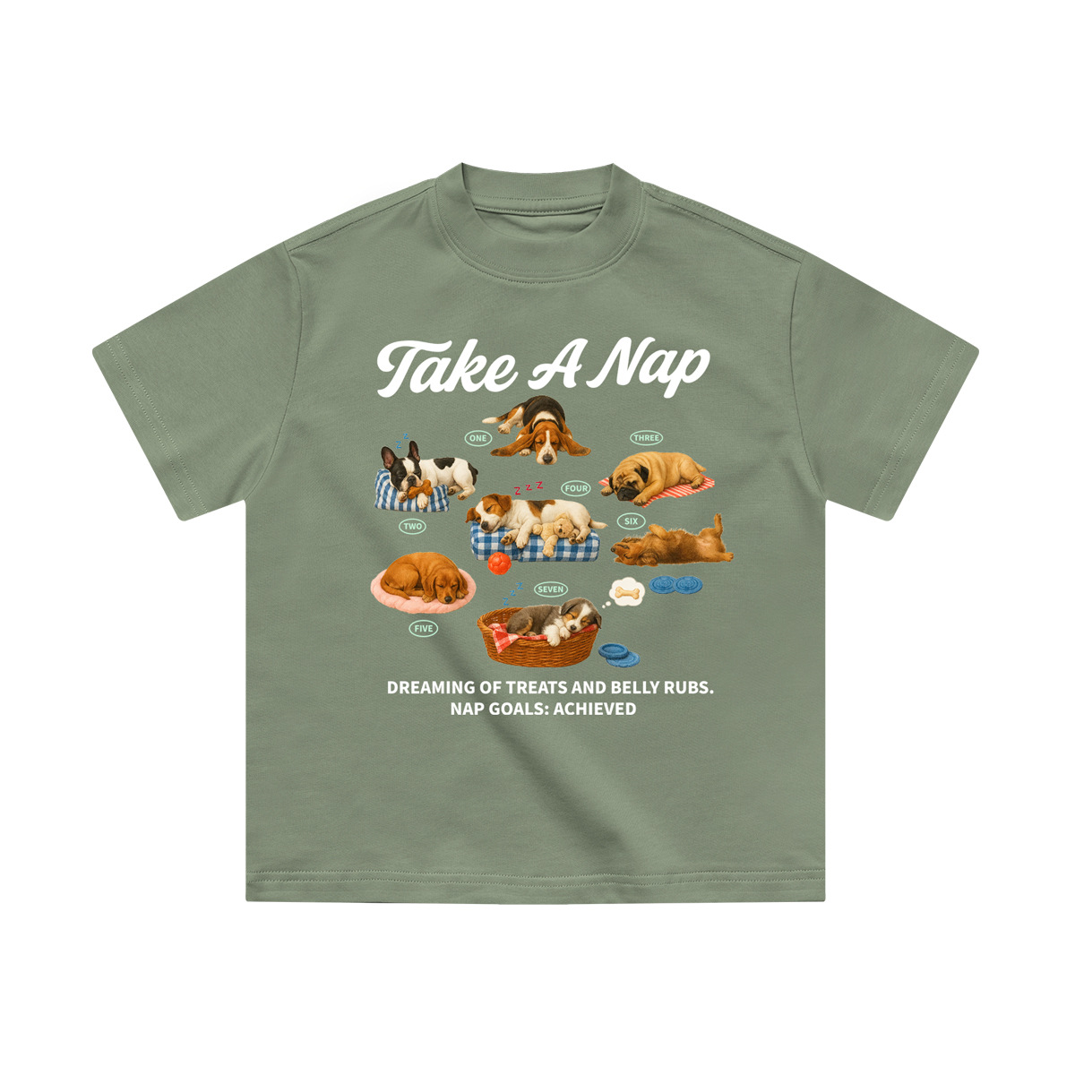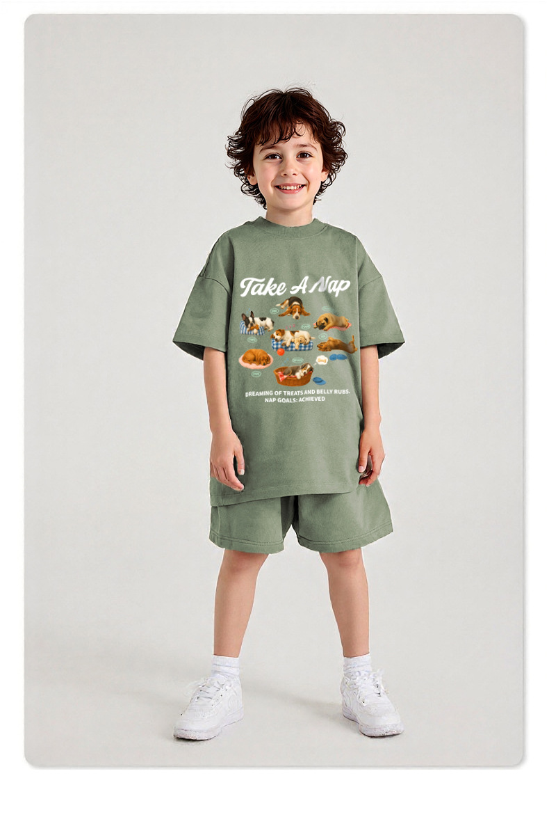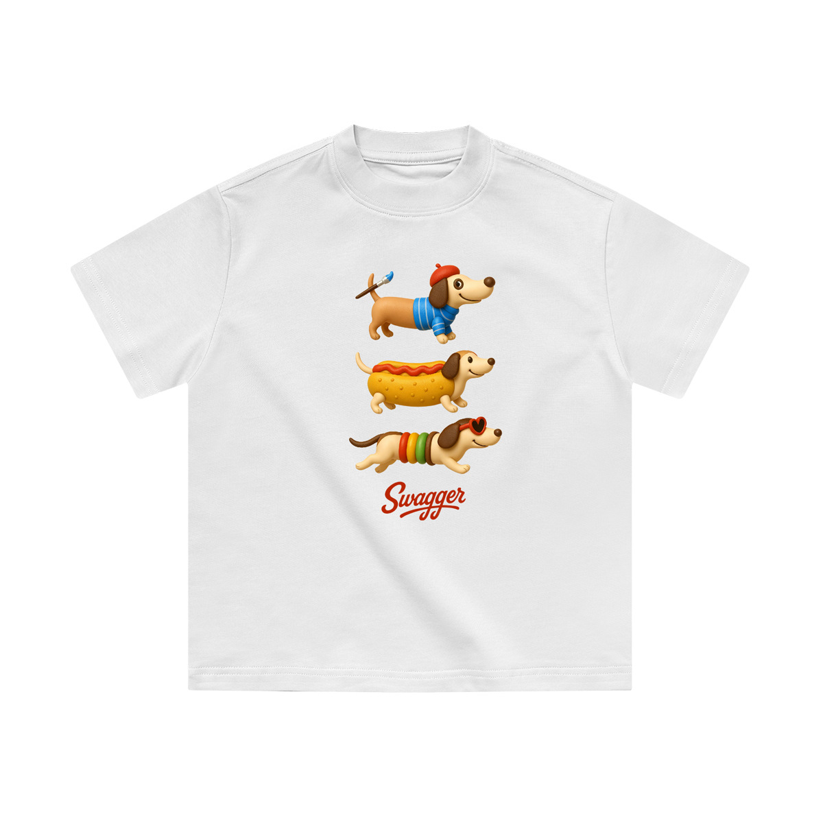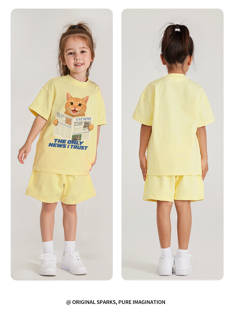 Minizone 여름 큰 어린이 반팔 무거운 면화 재미있는 탑 소년과 소녀 느슨한 만화 티셔츠 부모-자식 착용