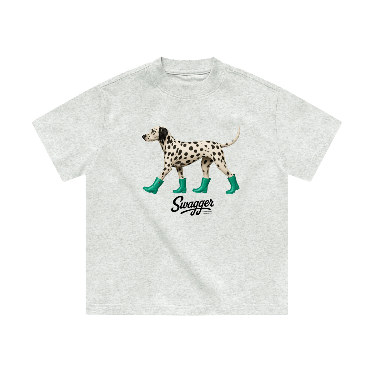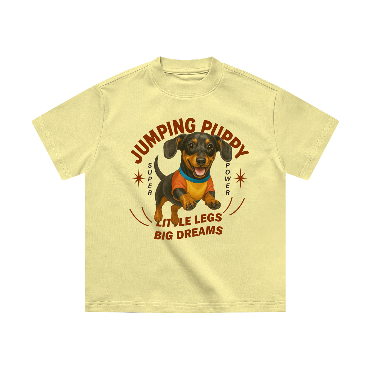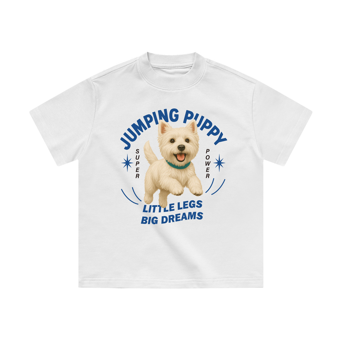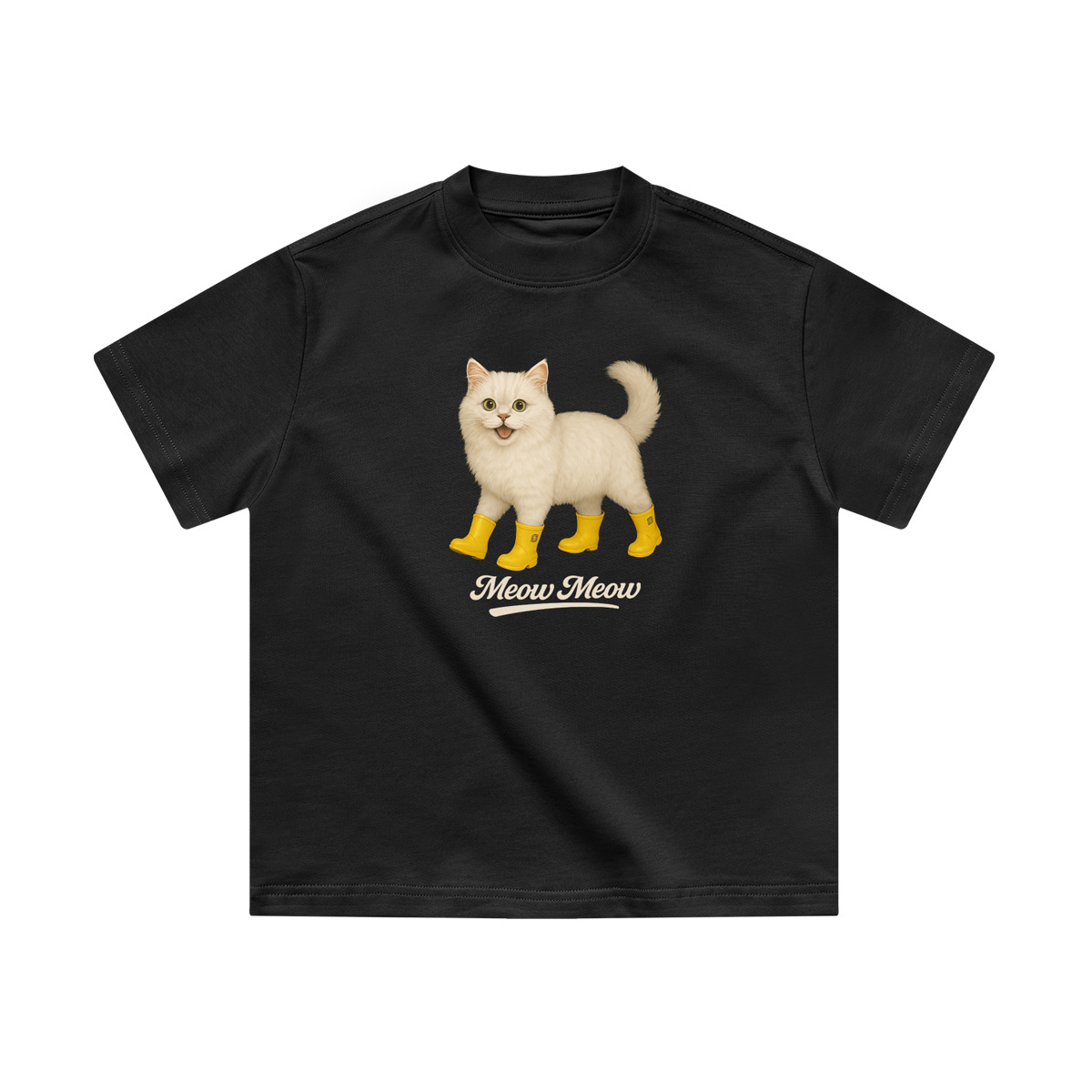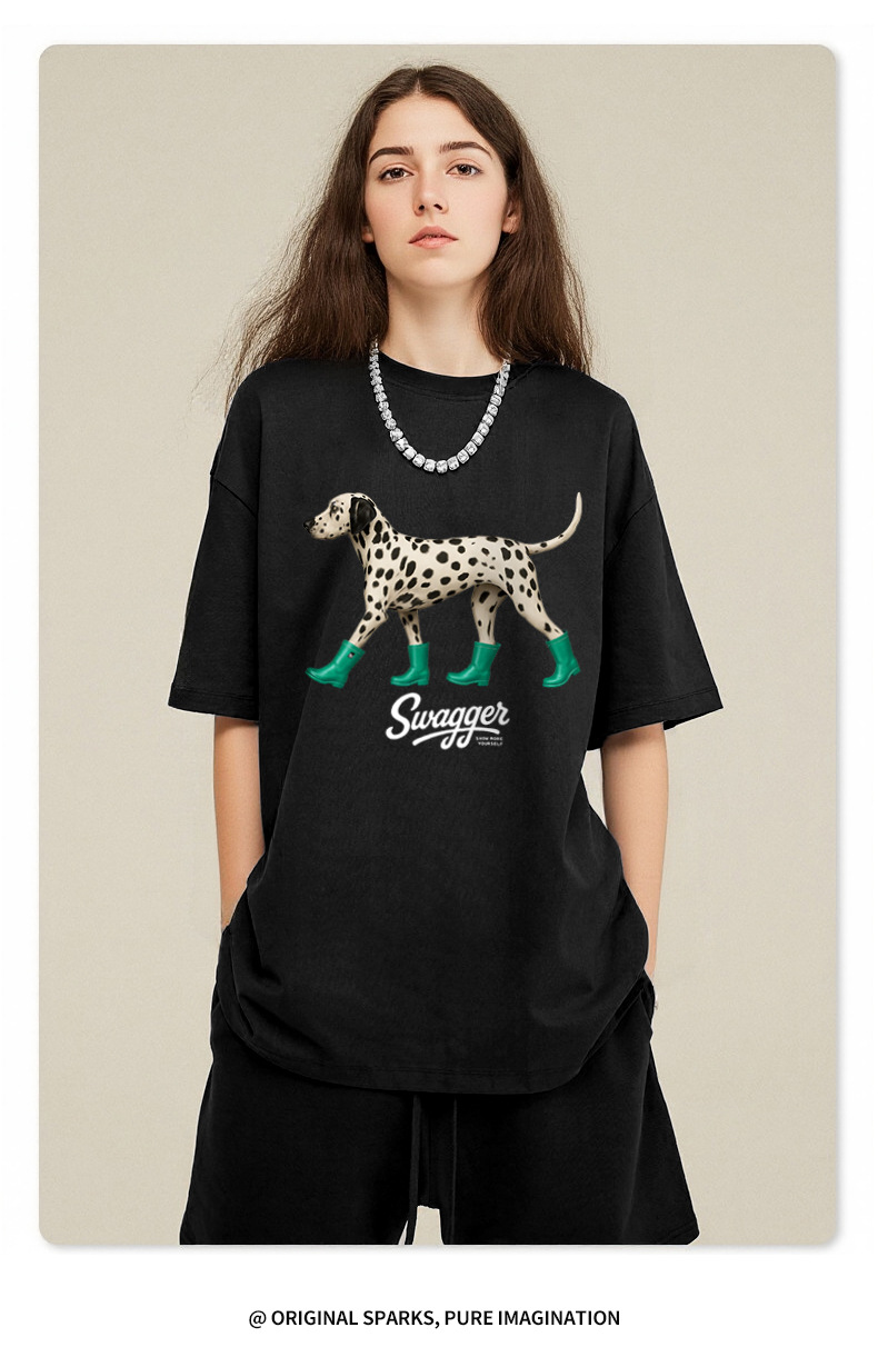 Minizone 여름 큰 어린이 반팔 무거운 면화 재미있는 탑 소년과 소녀 느슨한 만화 티셔츠 부모-자식 착용