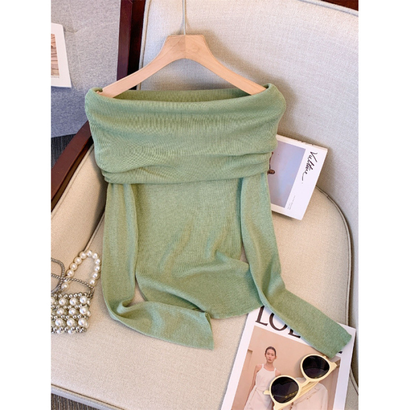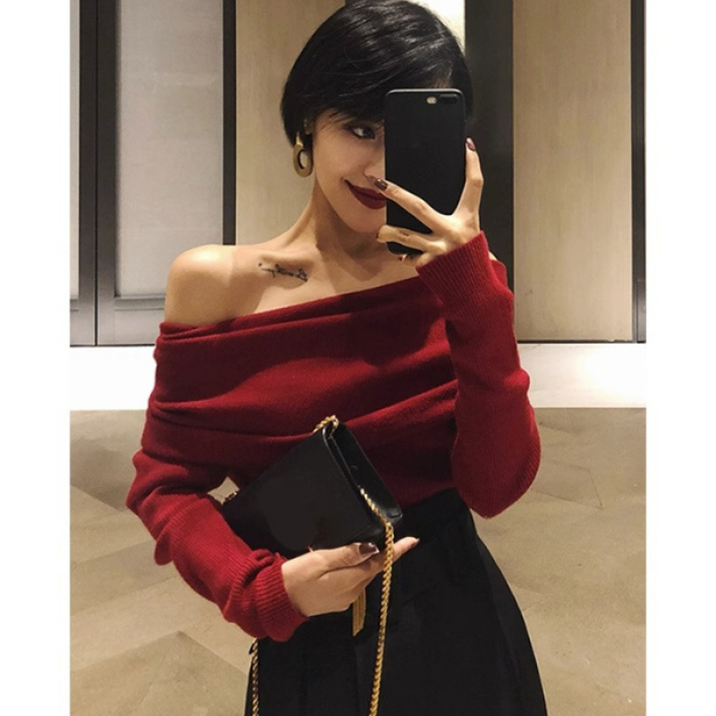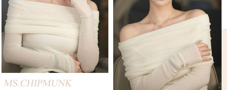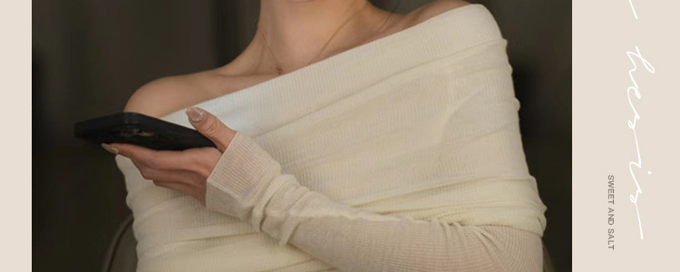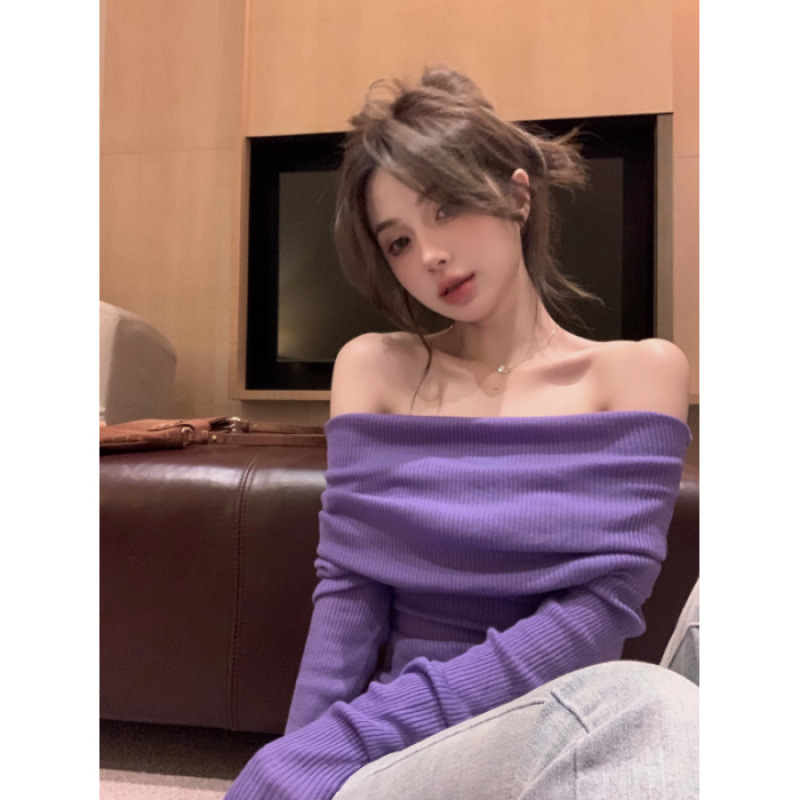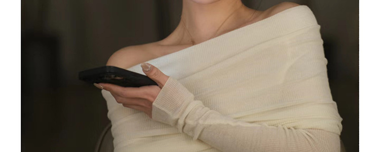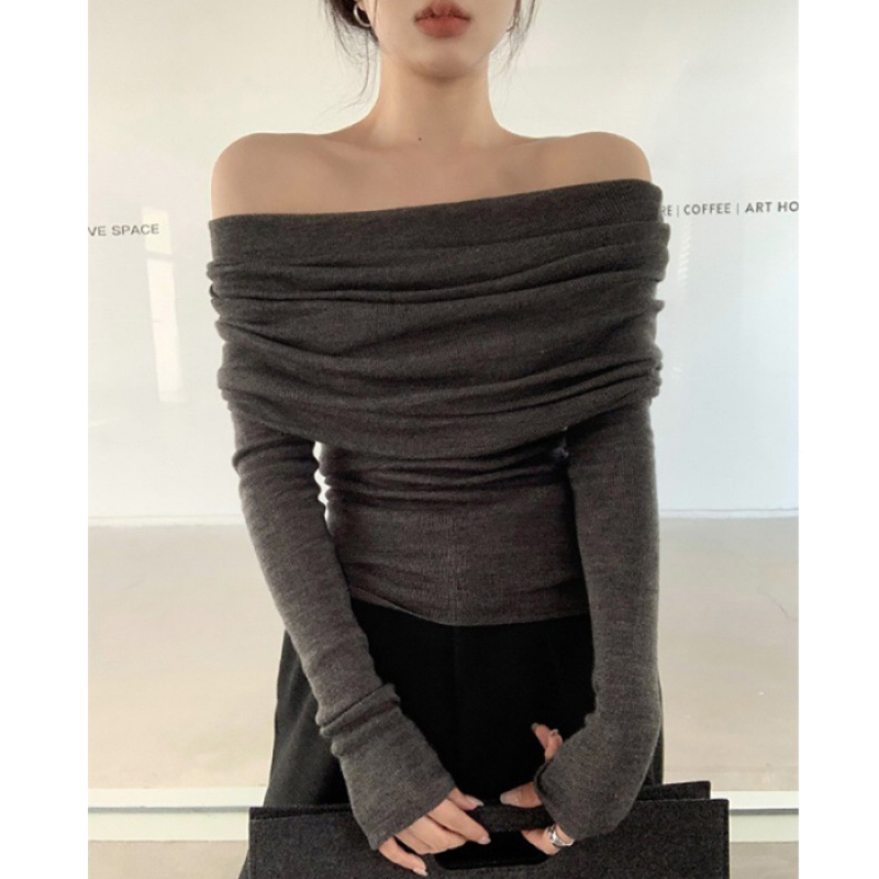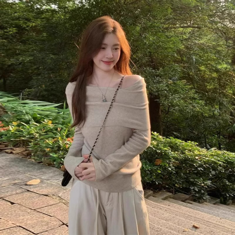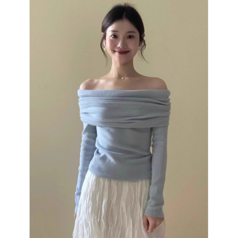 여성용 화이트 원숄더 탑, 봄, 가을 오프숄더 스웨터, 아름다운 이너 레이어드 스웨터, 긴팔, 고급스러운 착용감스토어 가기