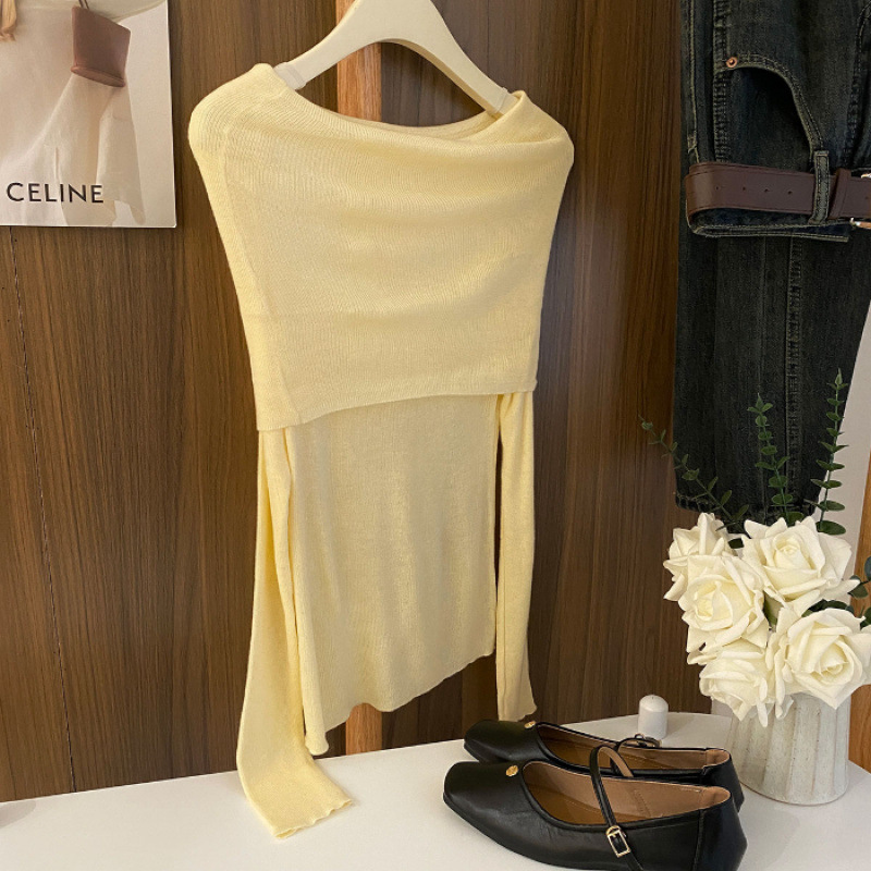 여성용 화이트 원숄더 탑, 봄, 가을 오프숄더 스웨터, 아름다운 이너 레이어드 스웨터, 긴팔, 고급스러운 착용감